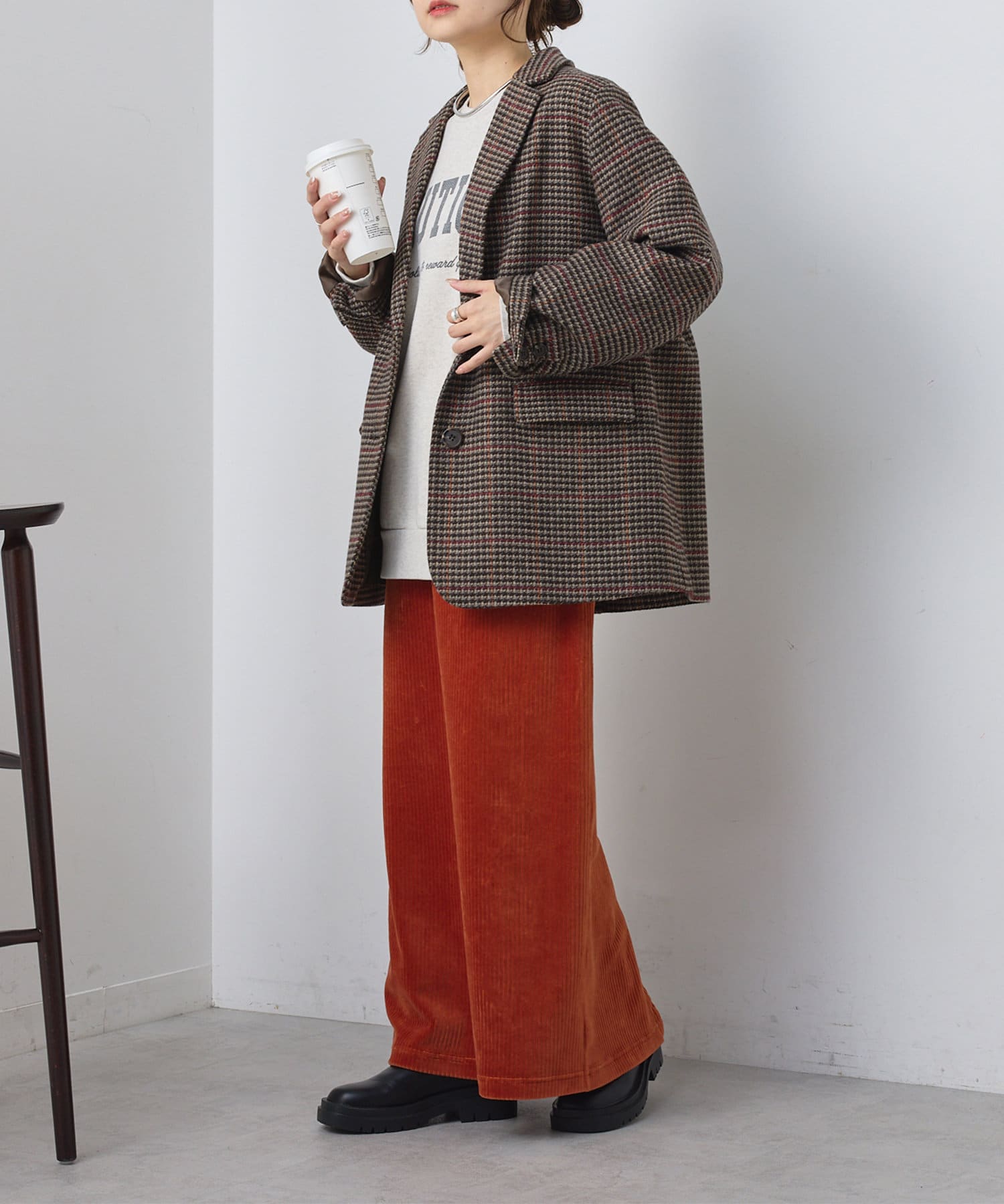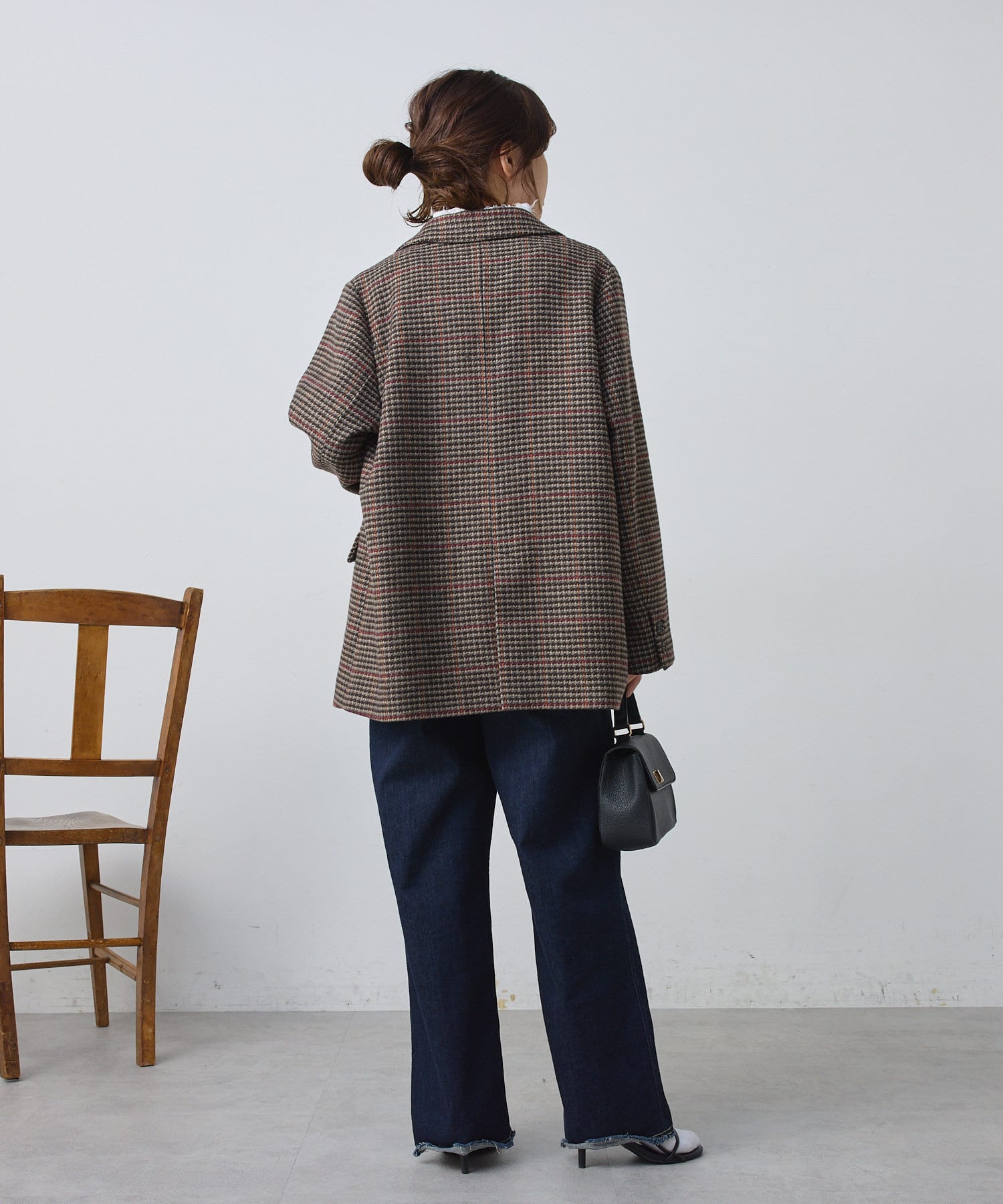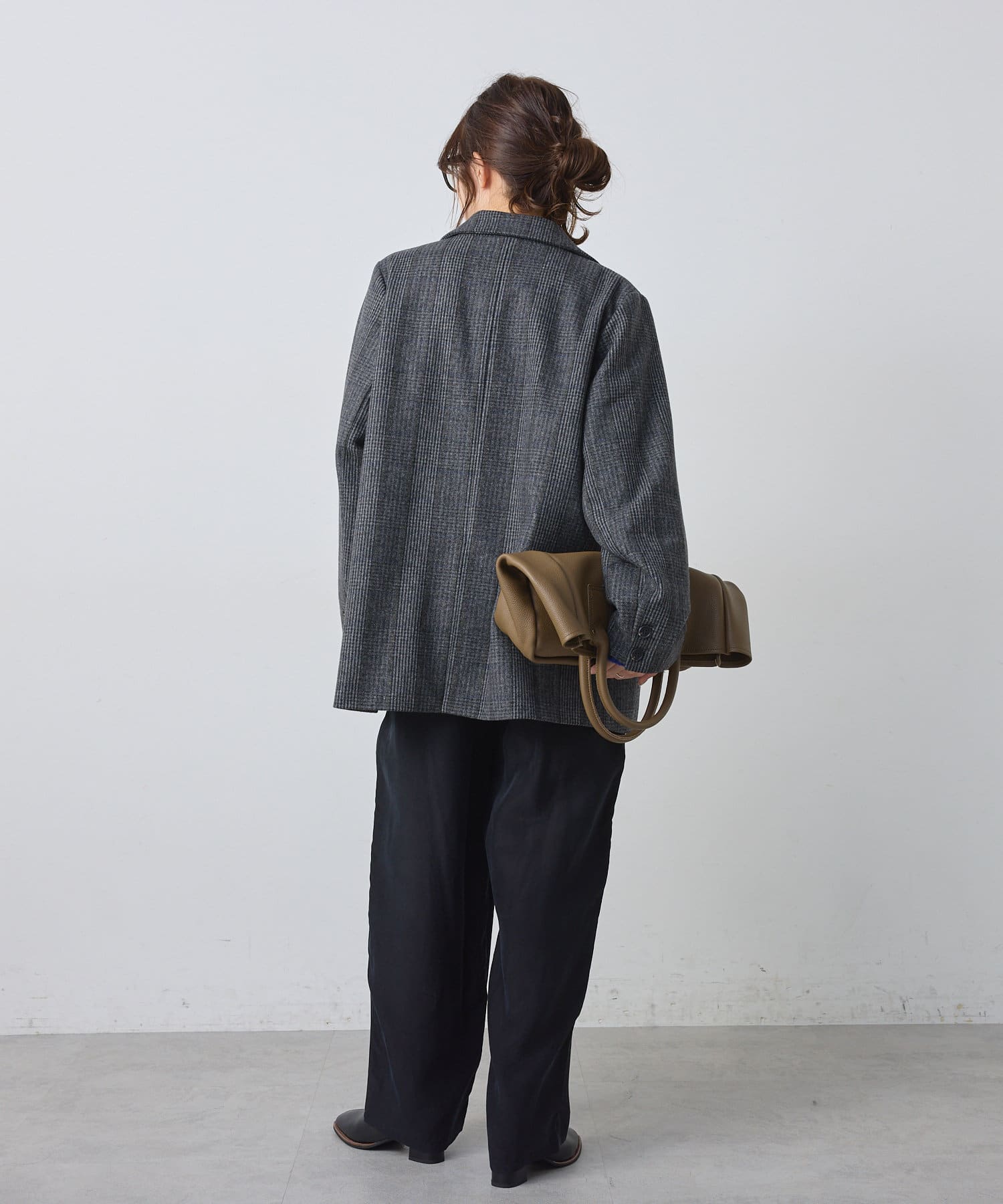 バックスタイルにはベンツを入れ、動きやすさと抜け感をプラス。