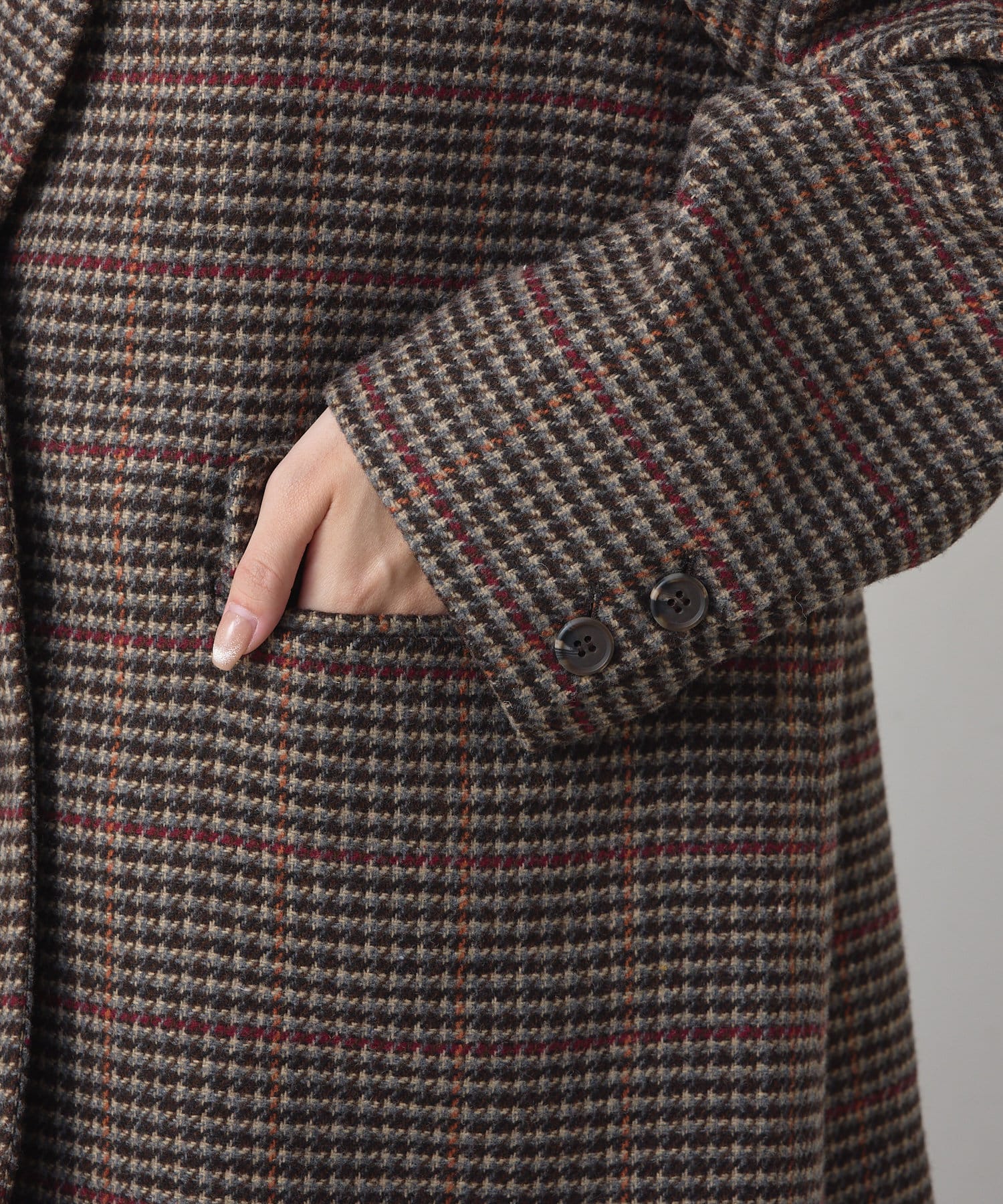 ブラウンの千鳥チェック柄/グレーのグレンチェックの2色展開。