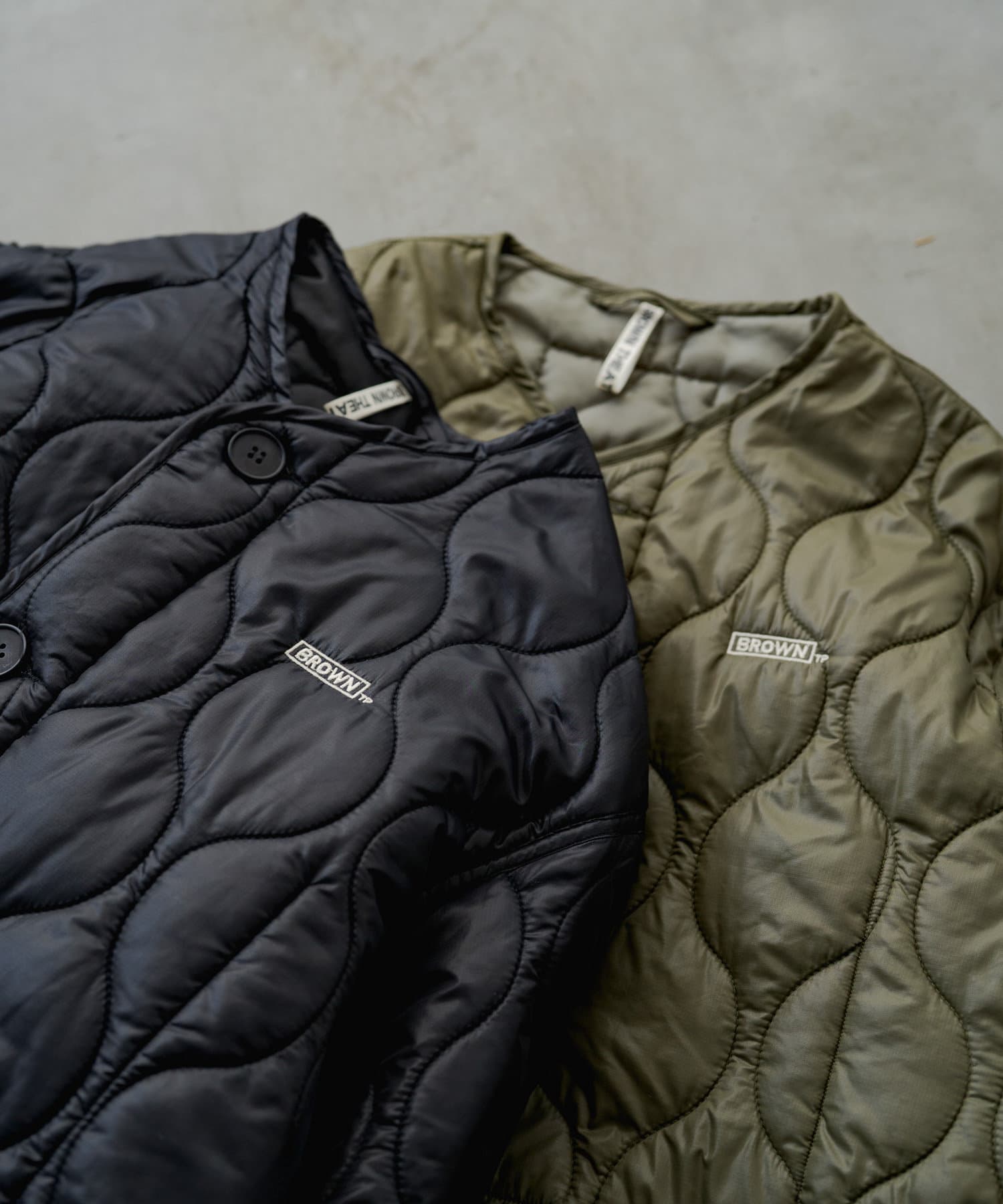 PUAL CE CIN別注のBROWN THEATRE PRODUCTS キルティングコート。