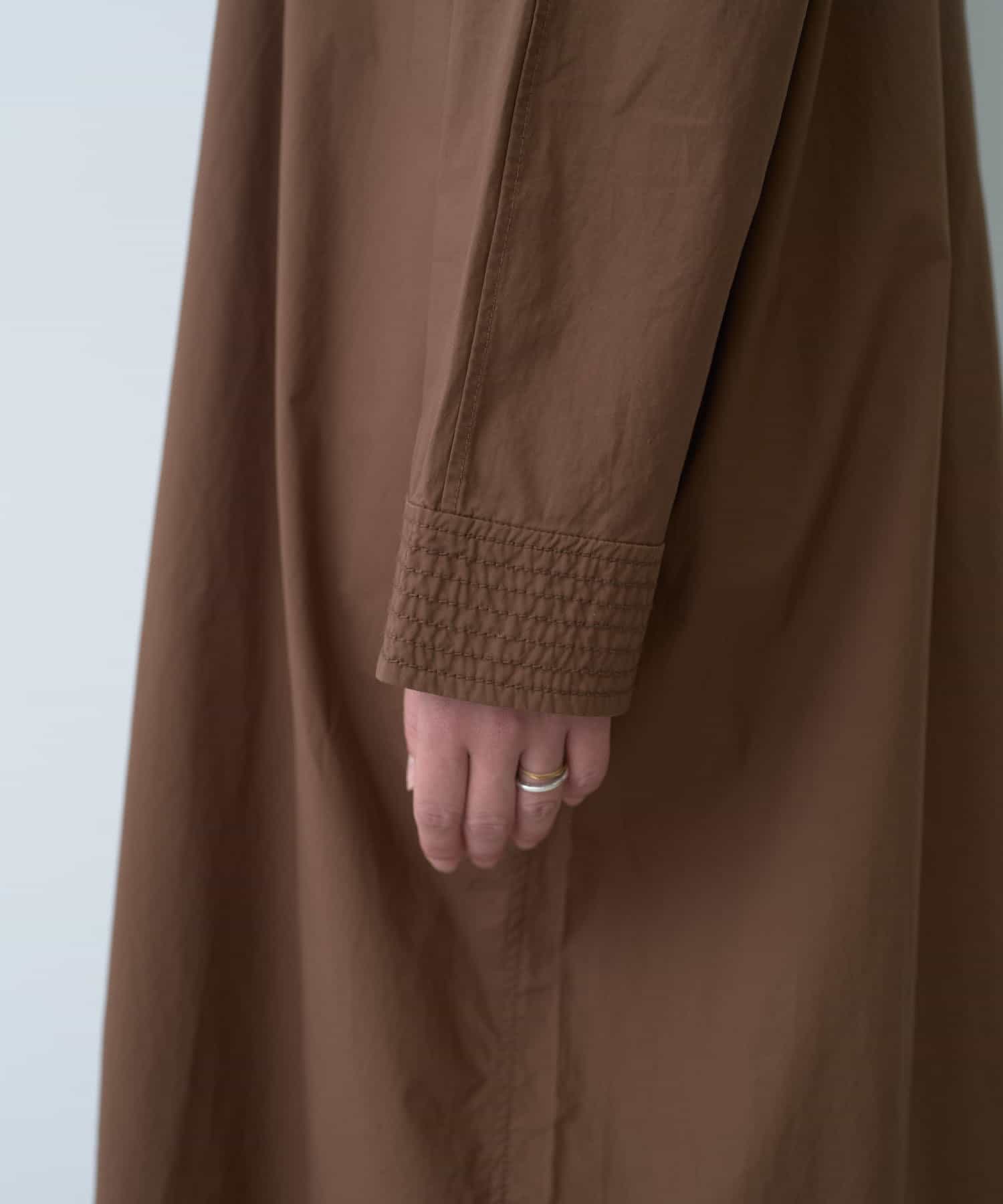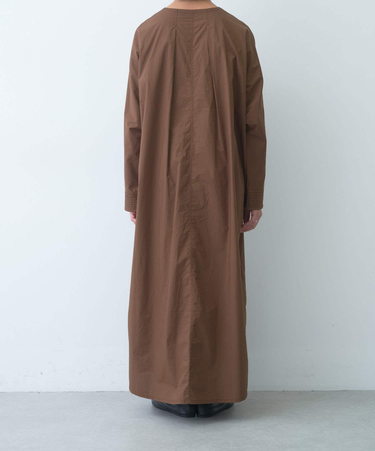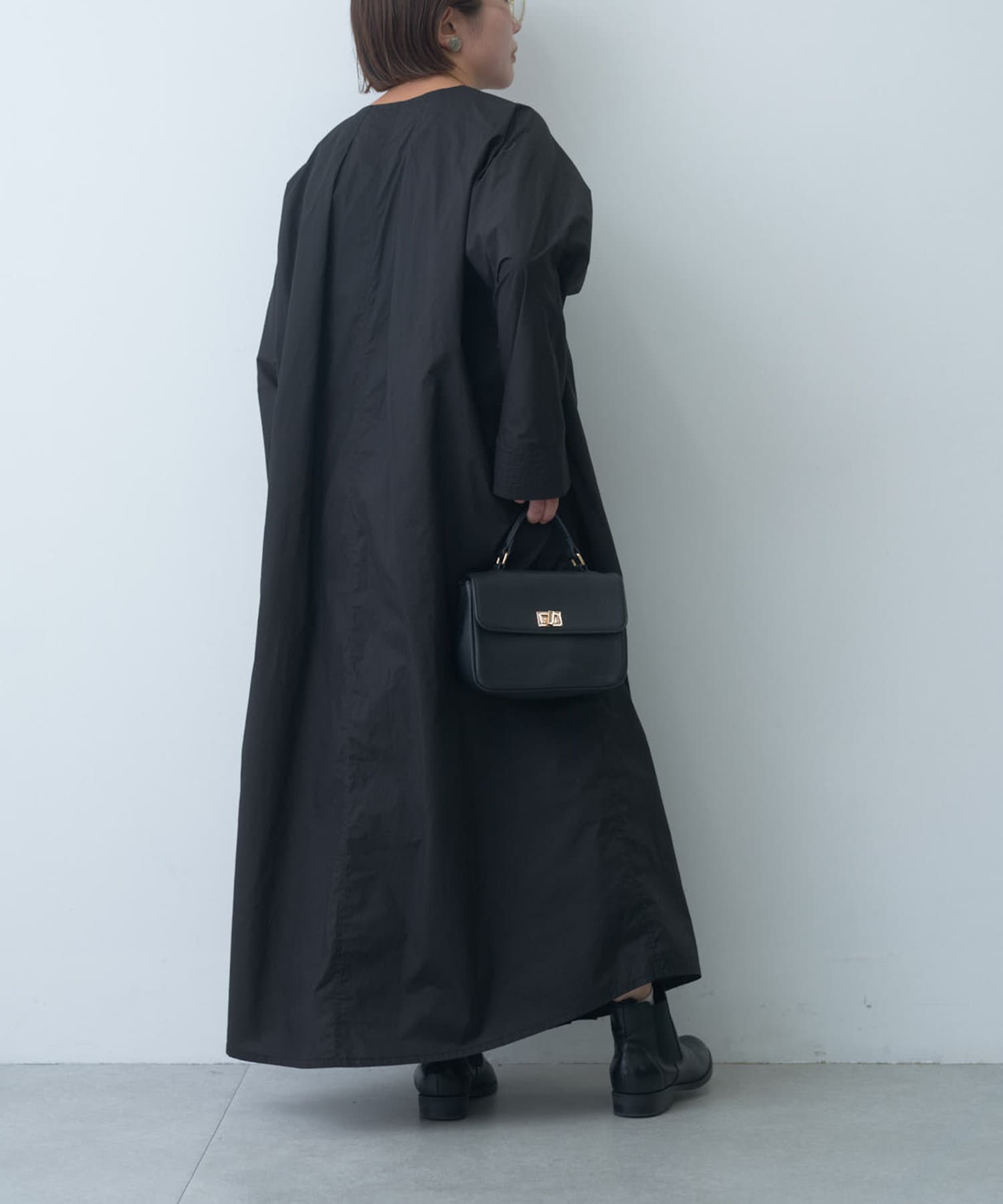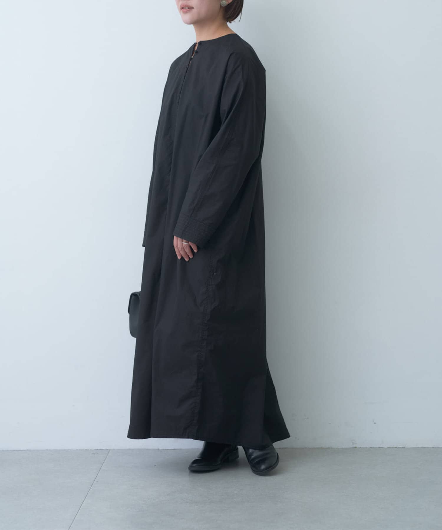やや張り感のあるタイプライター生地で仕上げたロングワンピース。