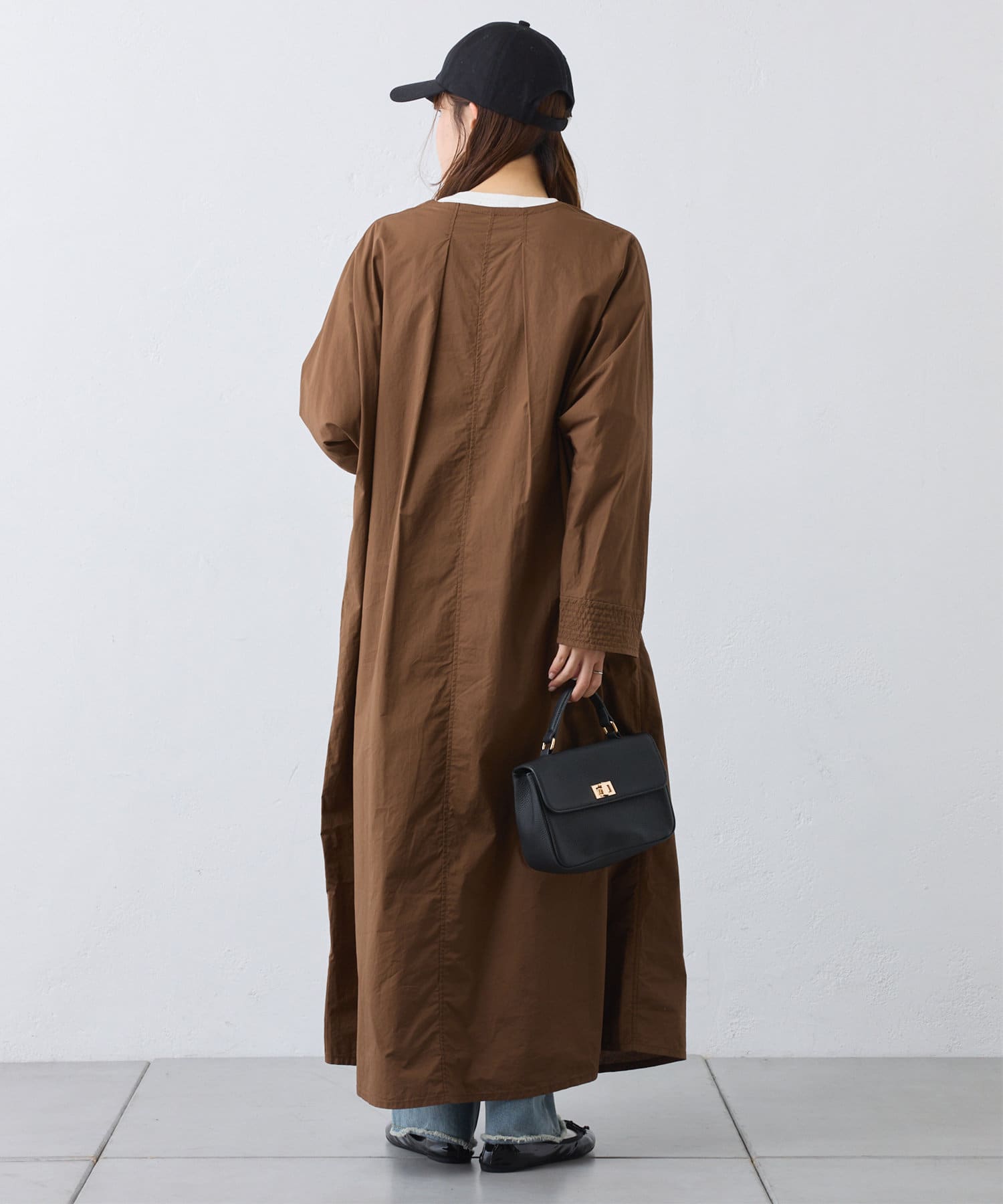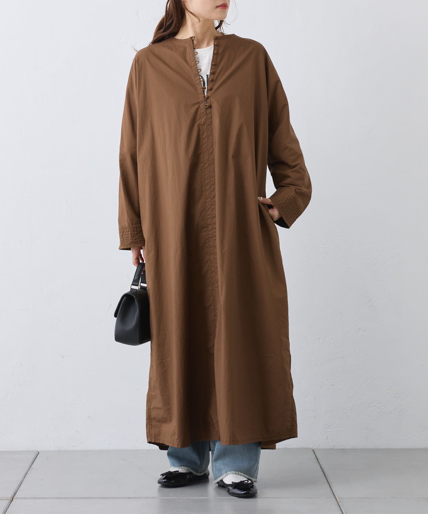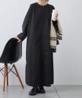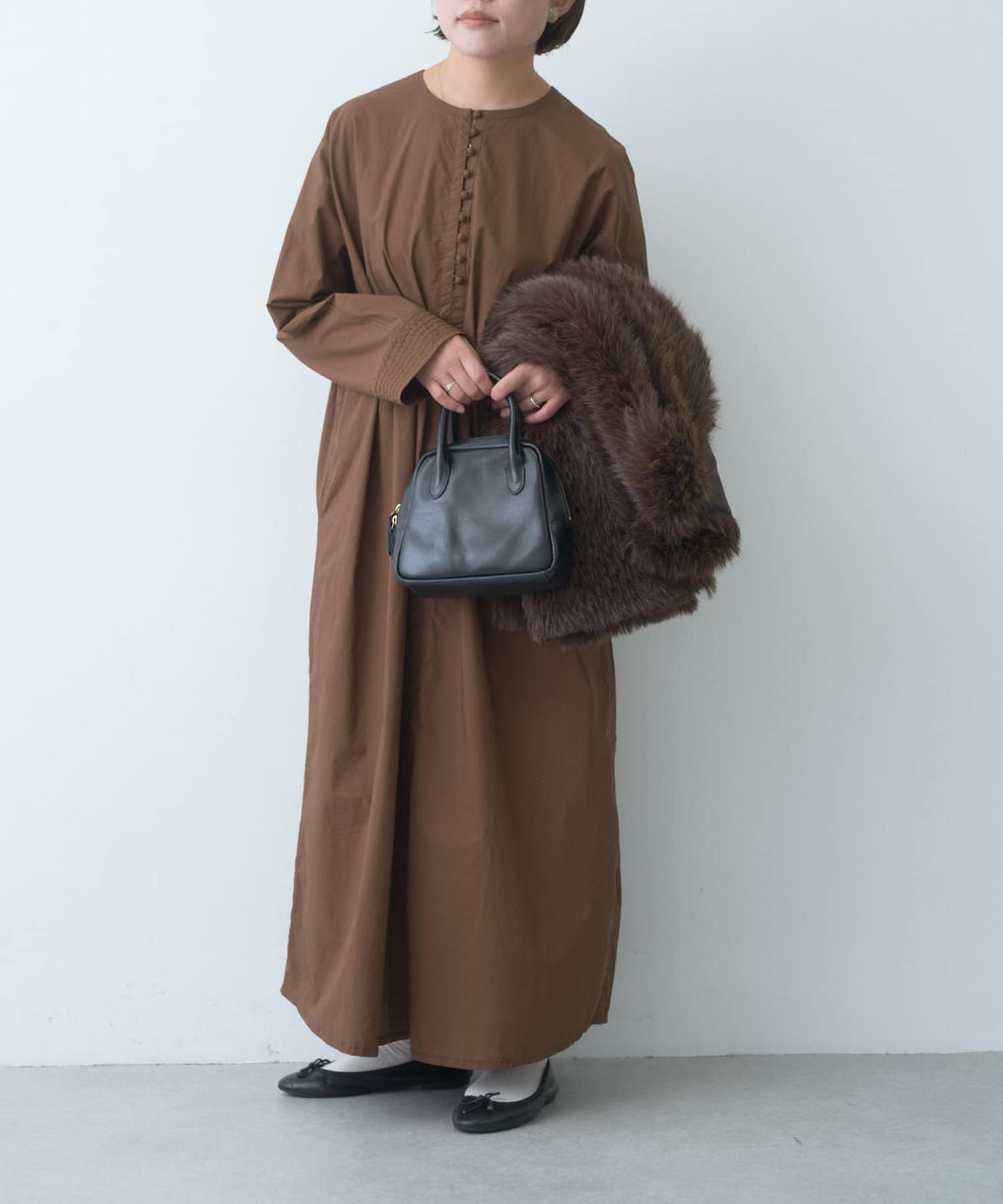 やや張り感のあるタイプライター生地で仕上げたロングワンピース。