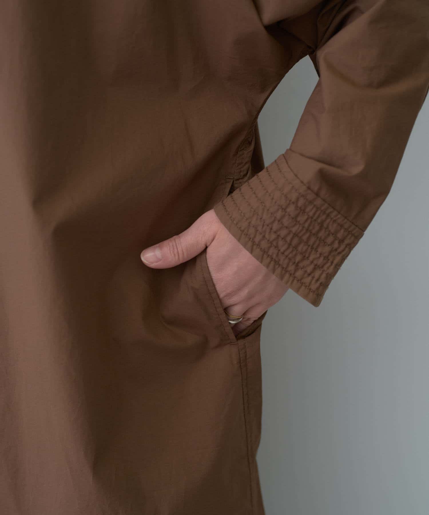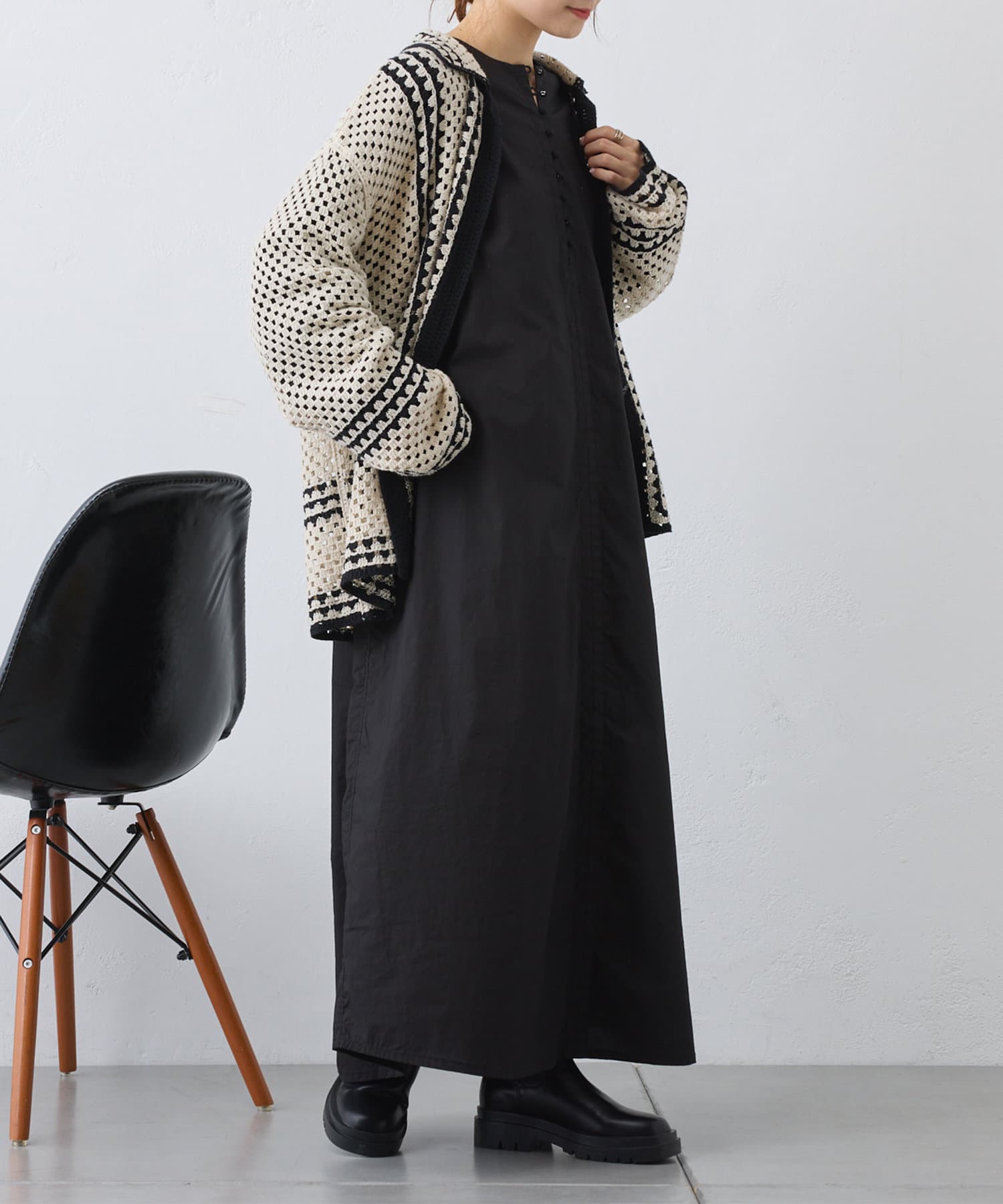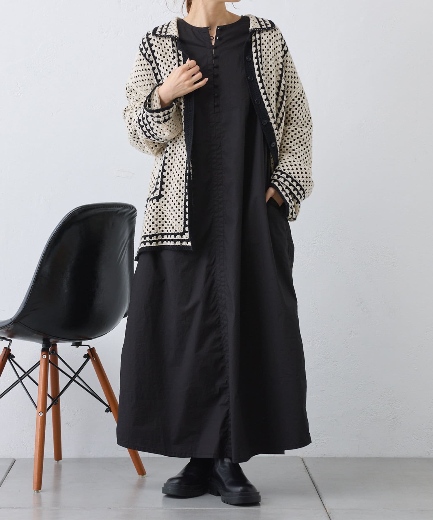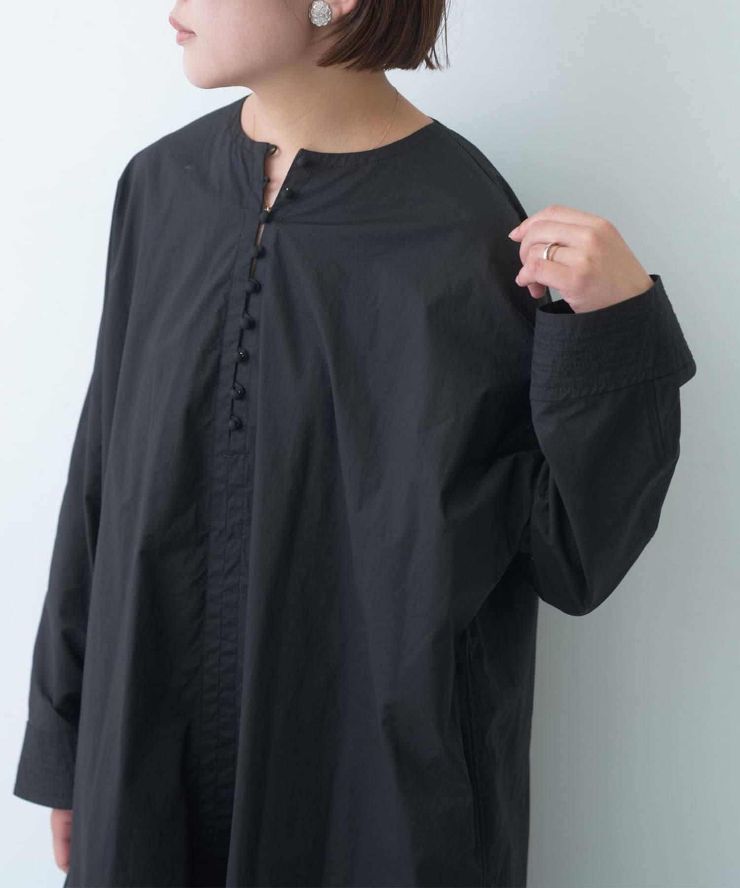 やや張り感のあるタイプライター生地で仕上げたロングワンピース。