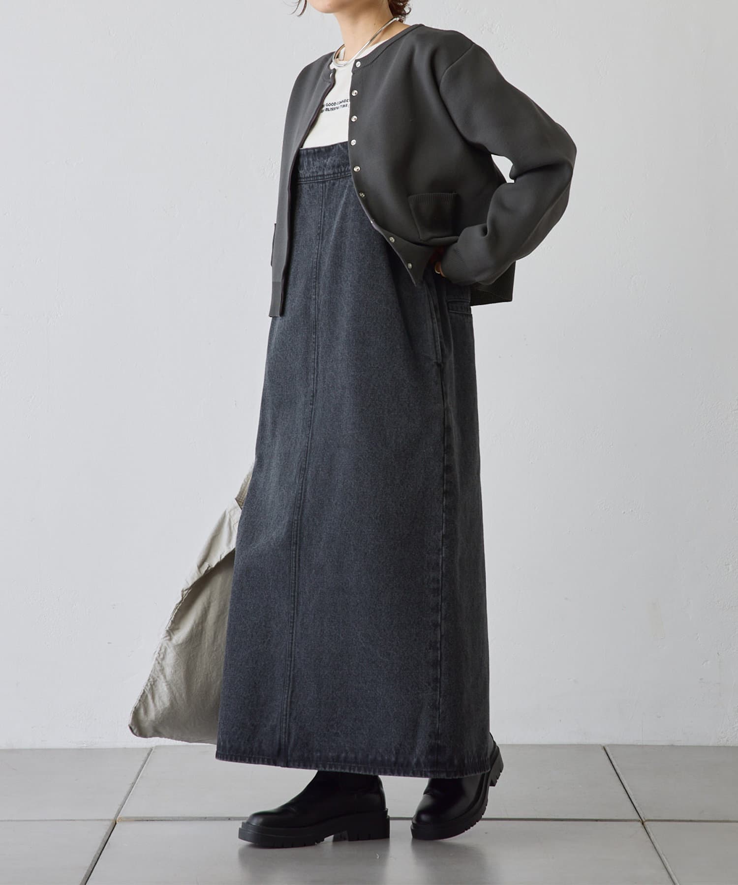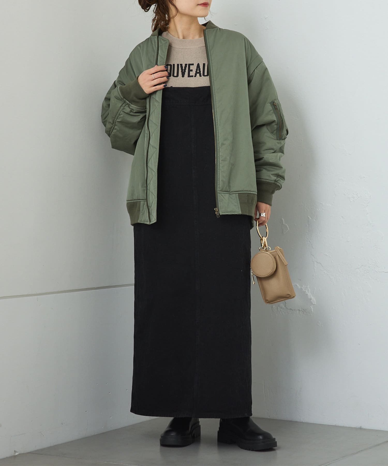 ワイドな身幅なのでどんなアイテムともレイヤードがしやすいので、気候の変化に関わらず着回していただけます。