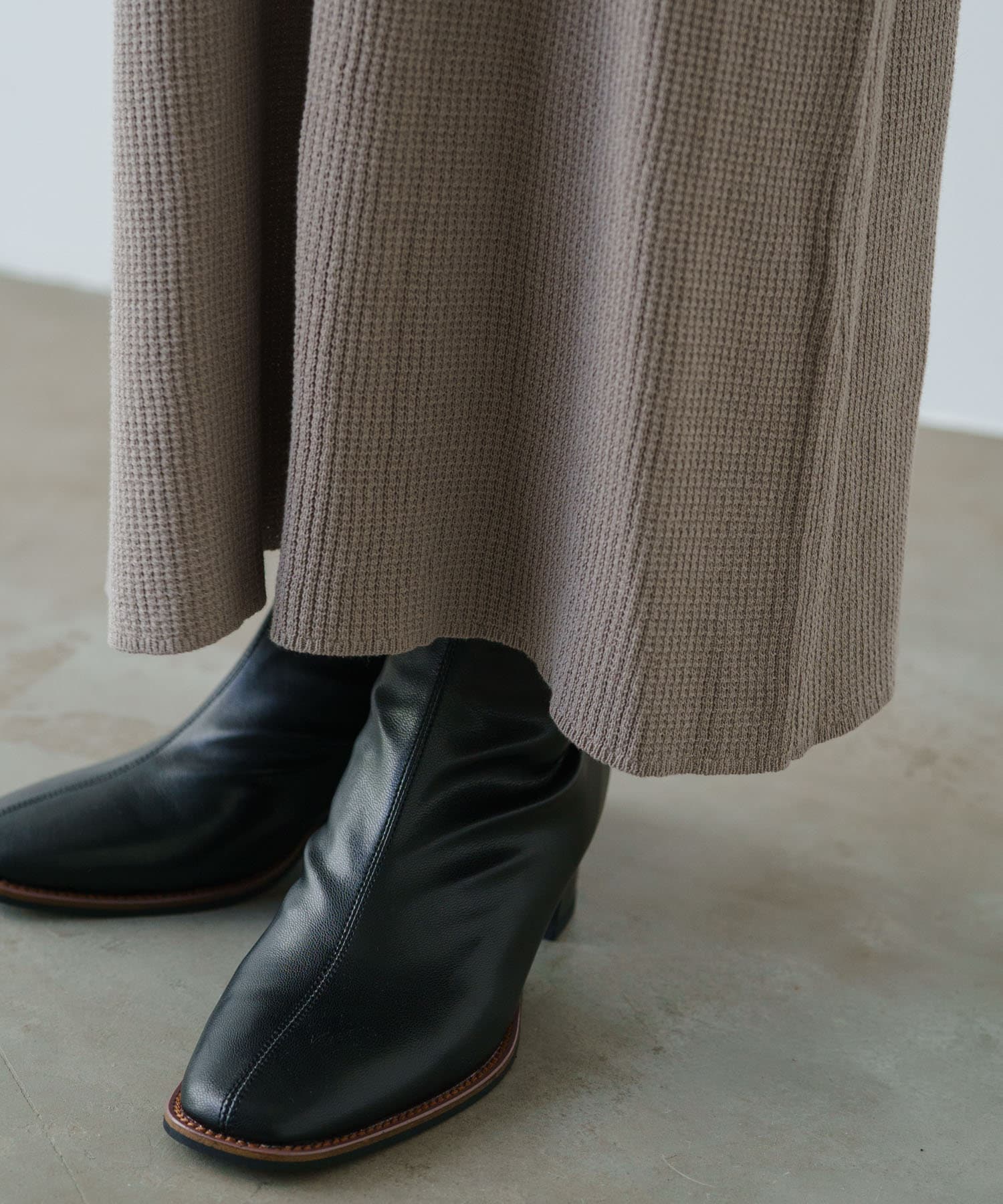 足元はバレエシューズやショートブーツを合わせてフェミニンに、ボリュームのあるサイドゴアブーツで秋らしいスタイリングも楽しめます。