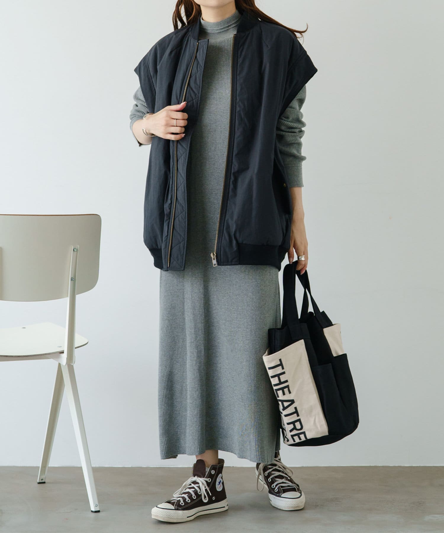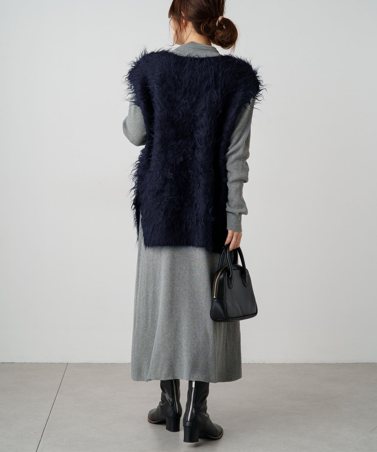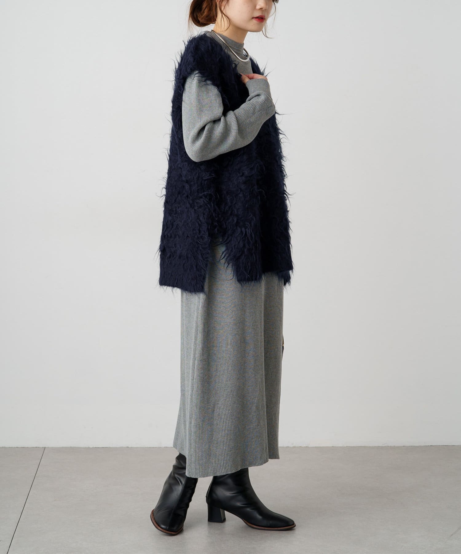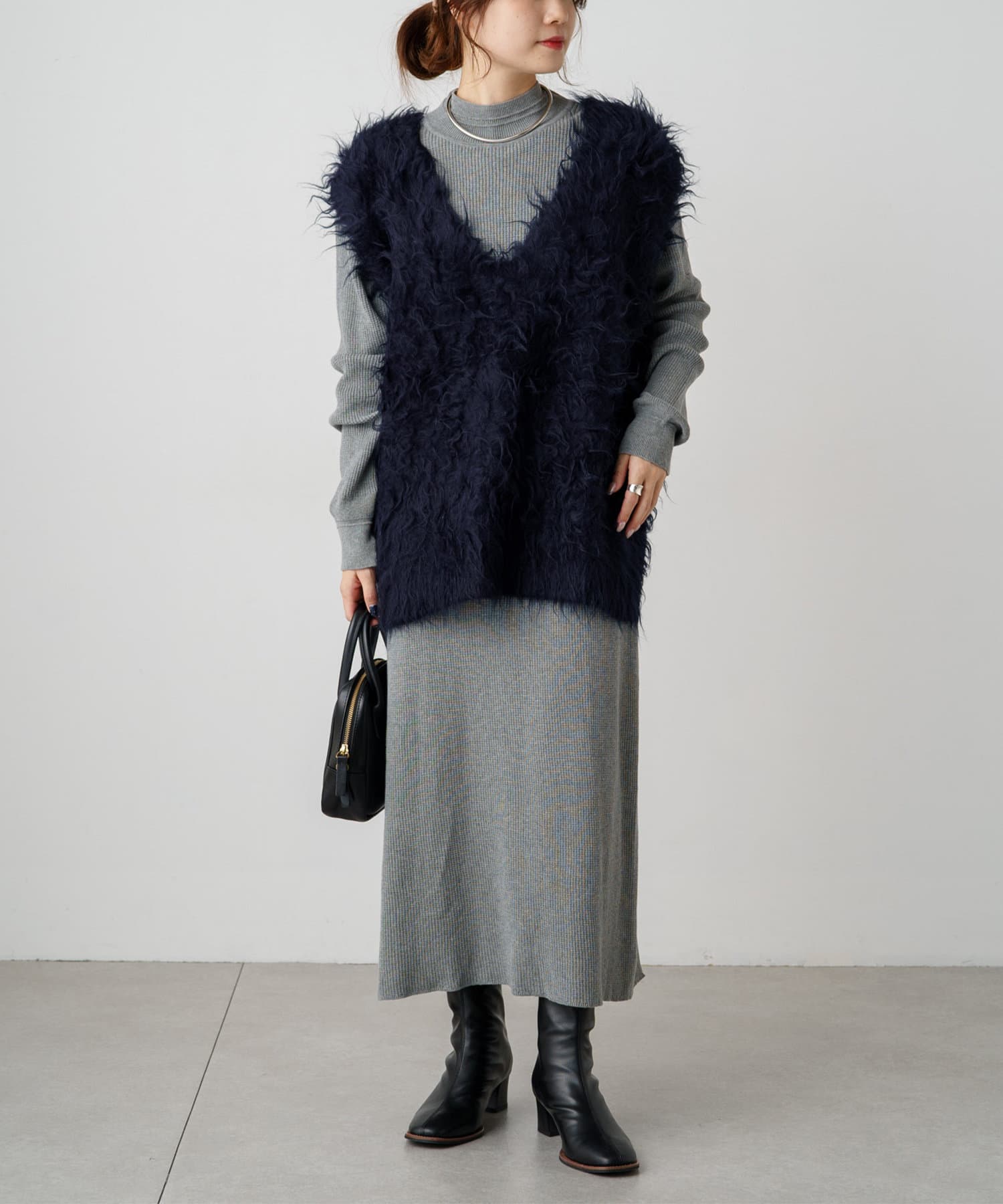 1枚での着こなしはもちろん、トレンドのファーベストを合わせたスタイリングもおすすめ。