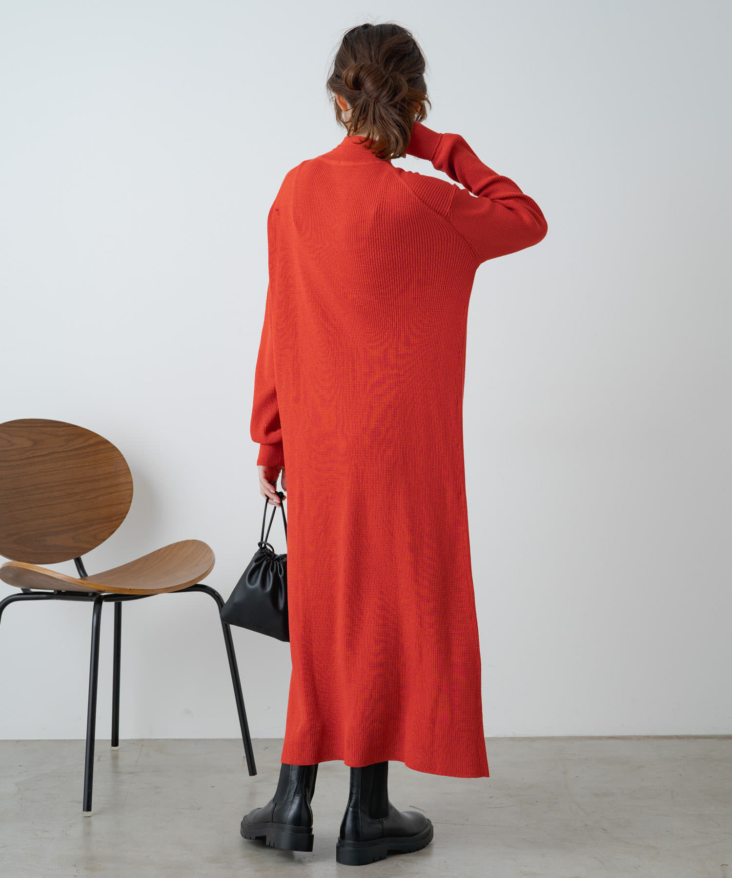 しなやかにネックラインに沿う低めのハイネックデザイン。