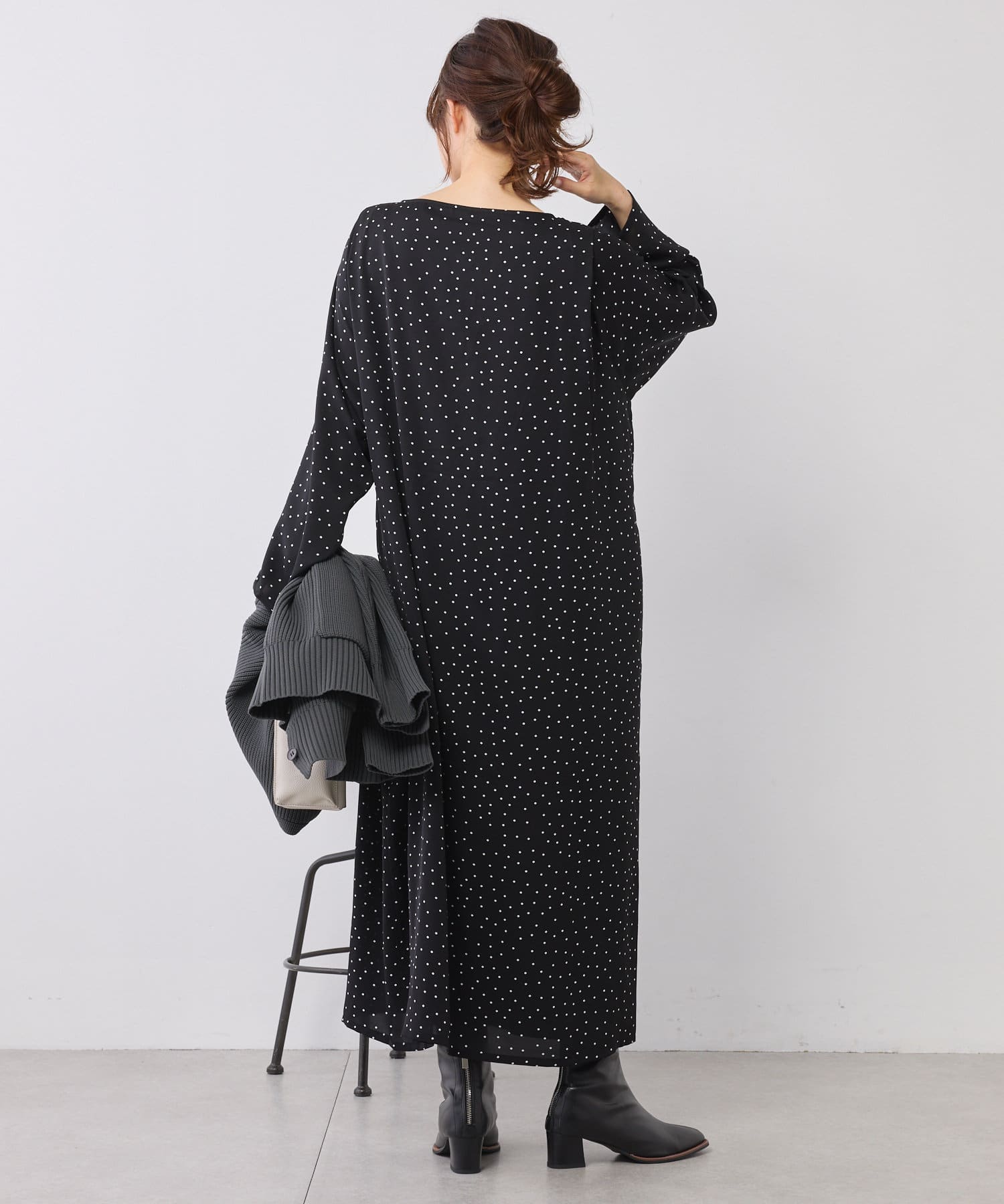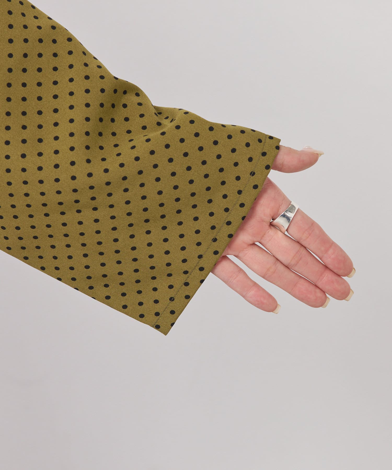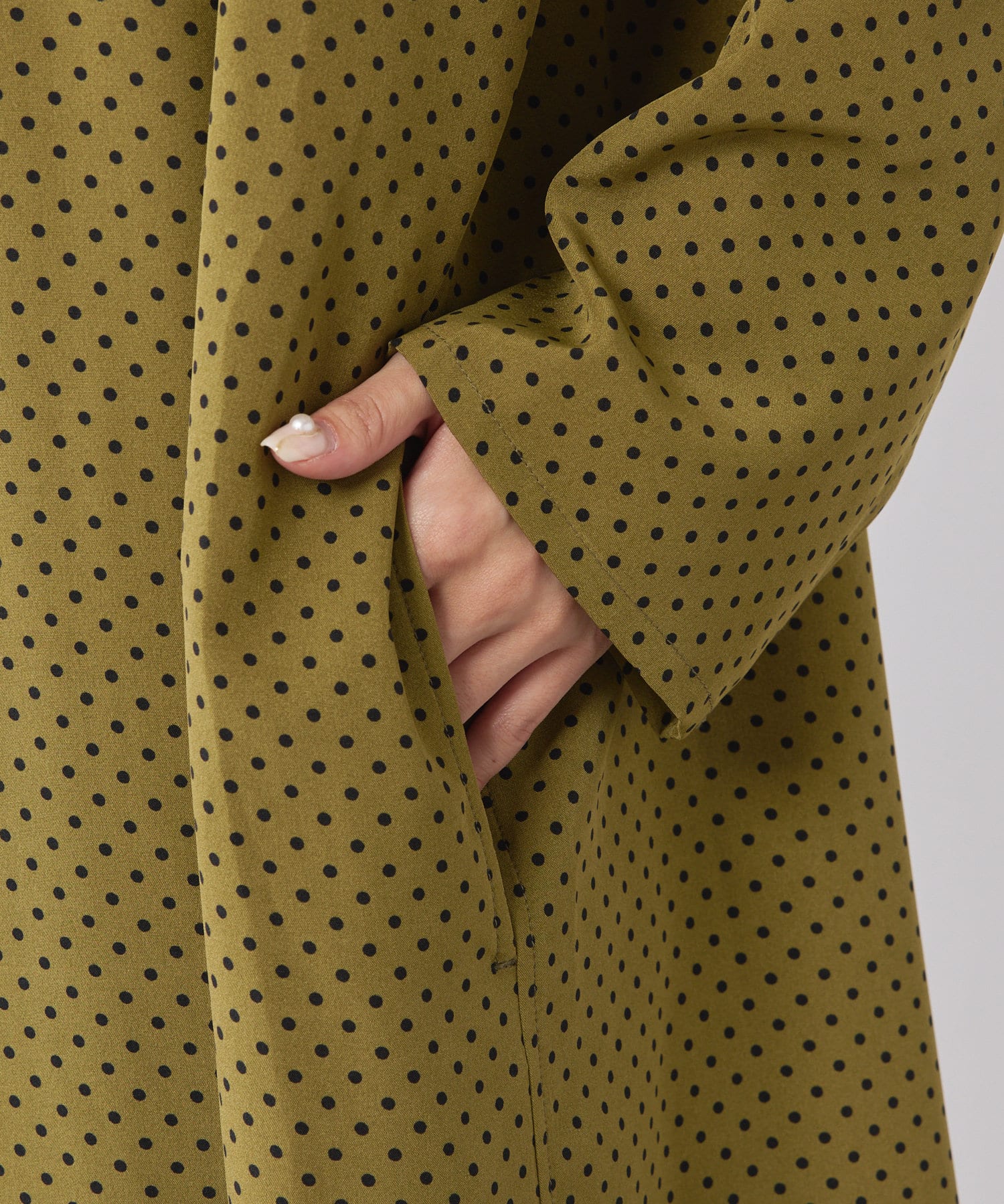 小さく控え目なドット柄は甘くなり過ぎず、大人かわいい着こなしにぴったりです。