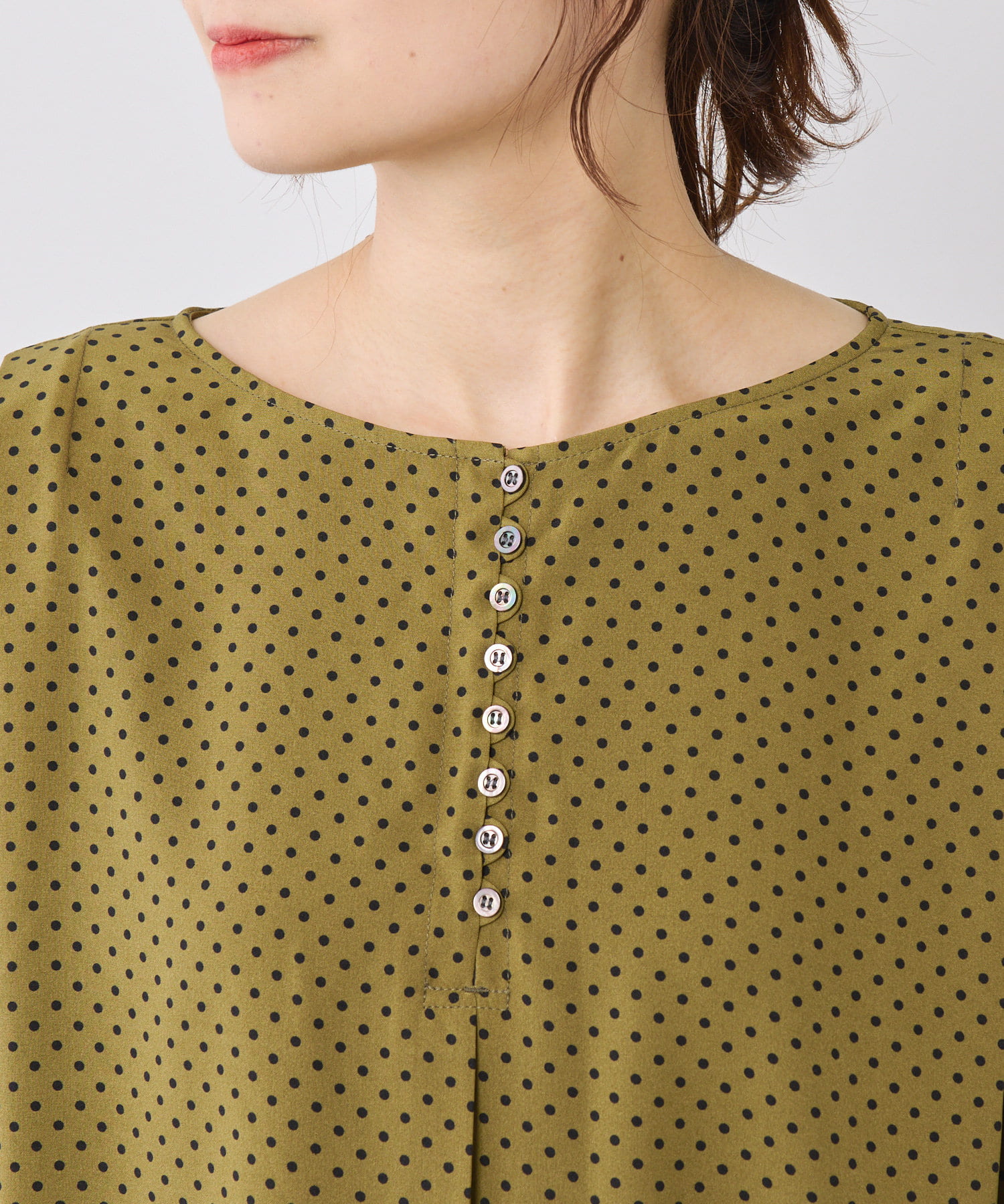 しっとりとした合成繊維に小さめのドット柄をプリントしています。