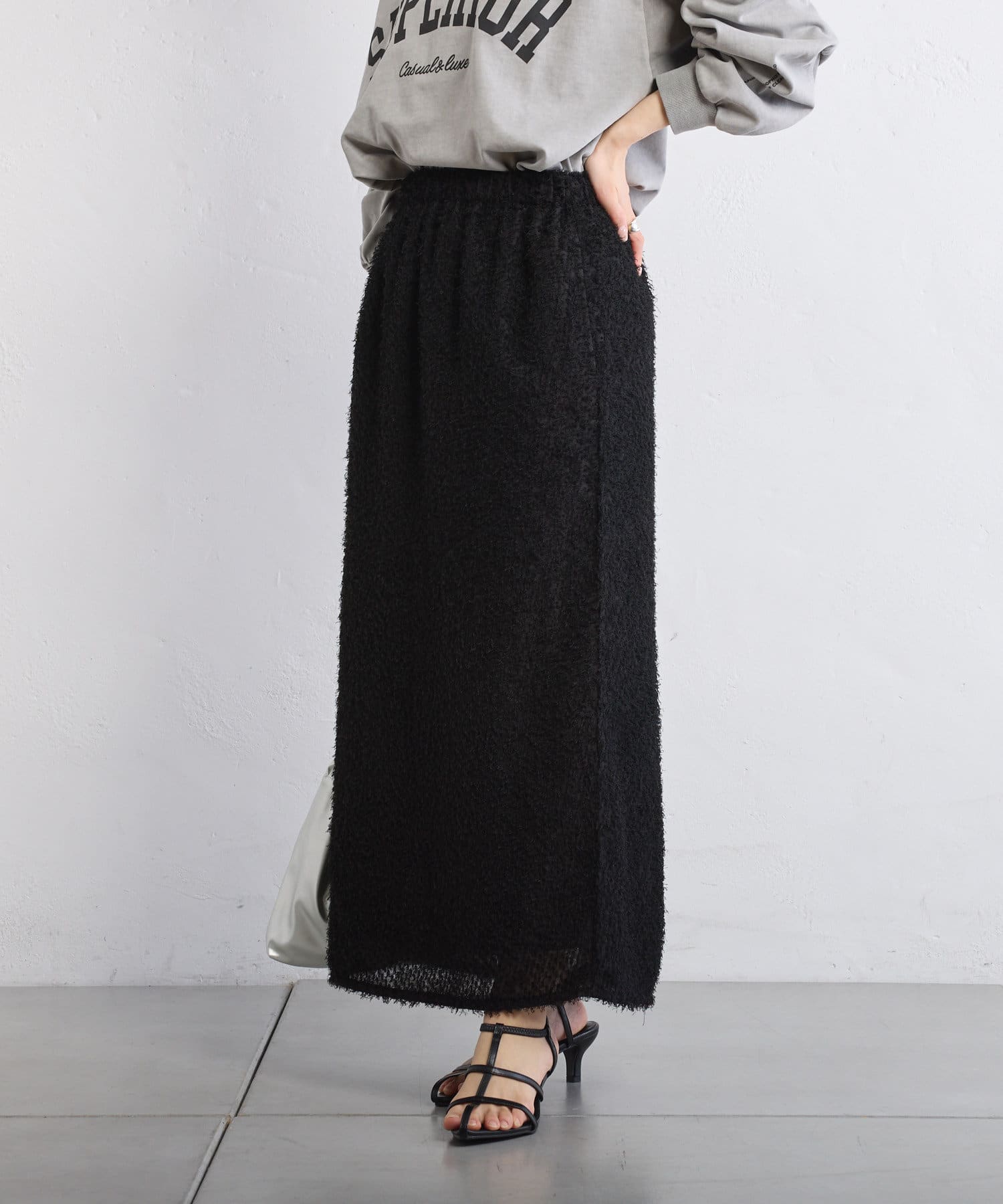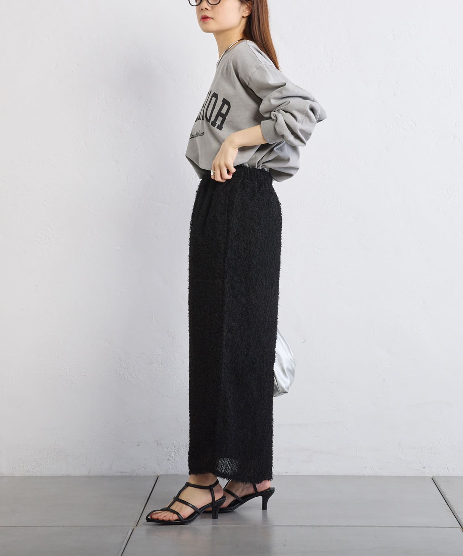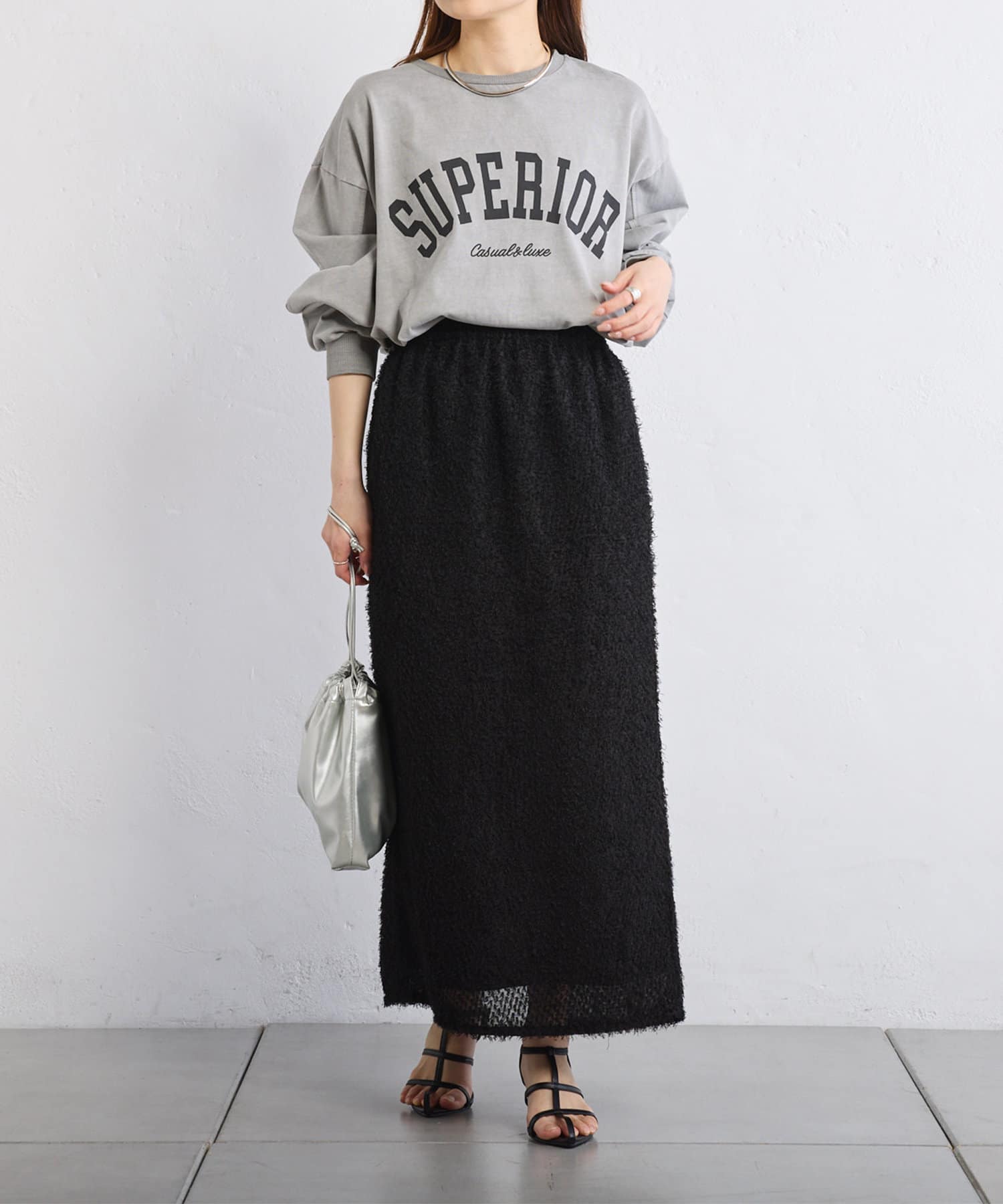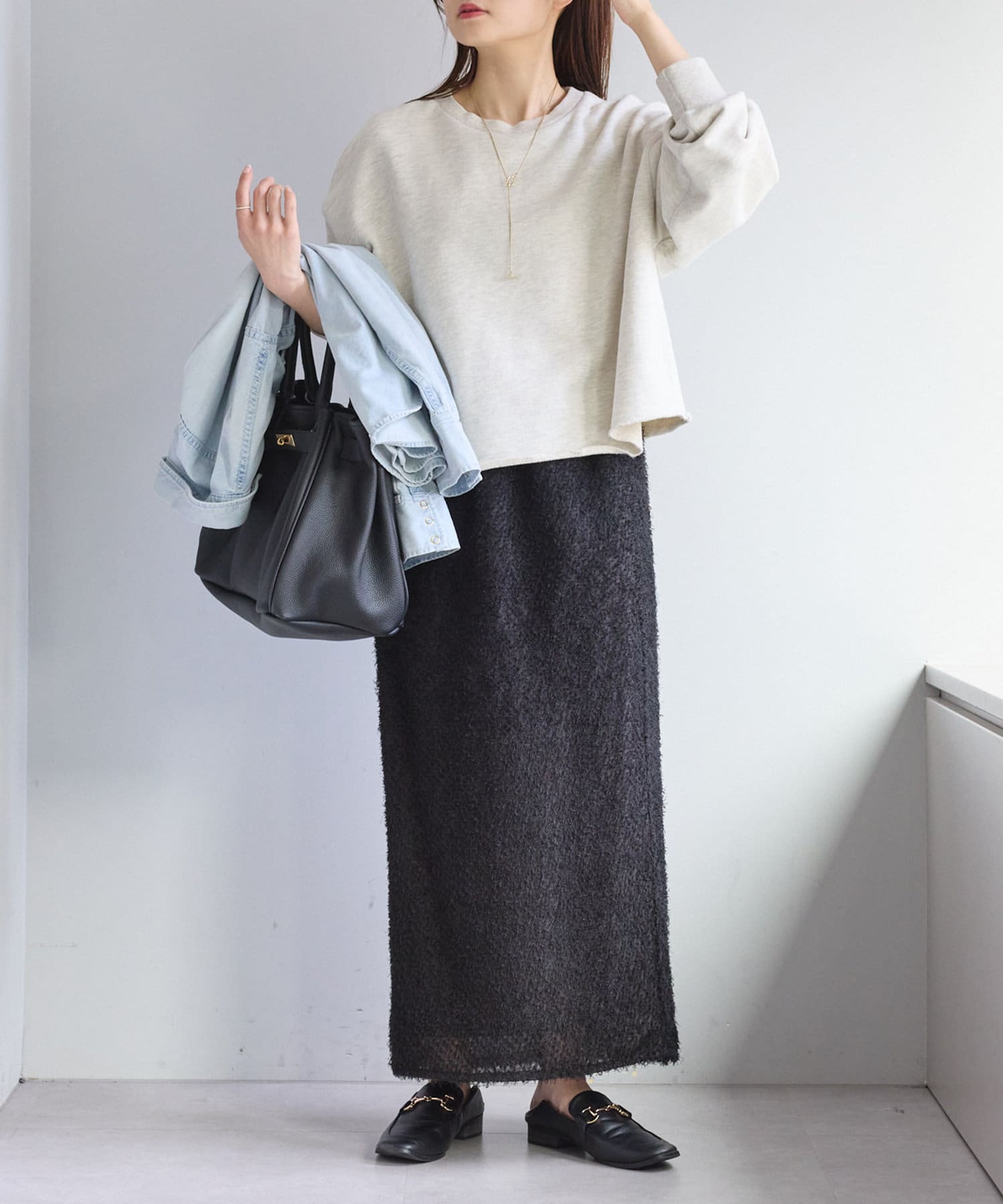 綺麗なIラインシルエットなので、ゆったりしたトップスと合わせると