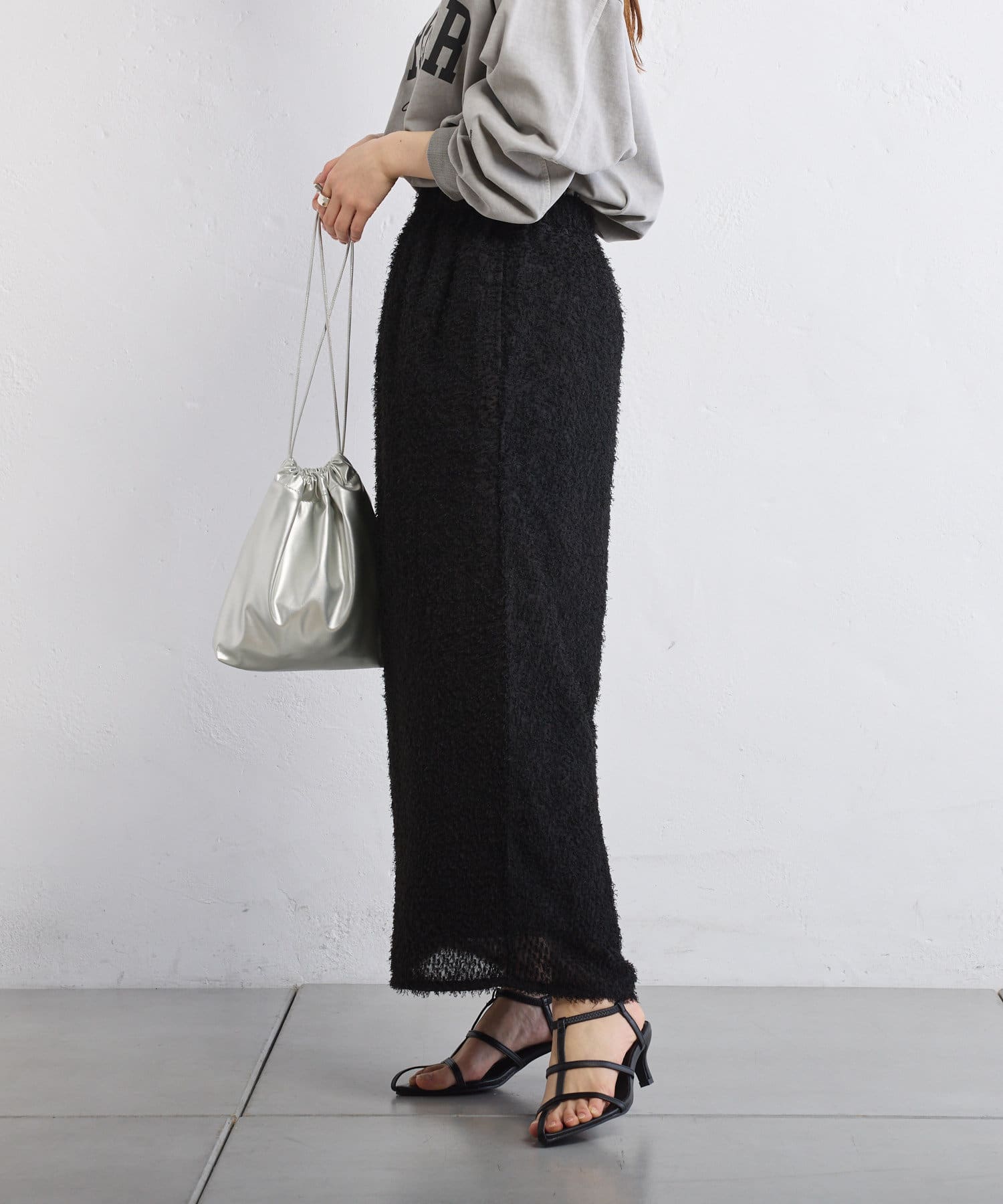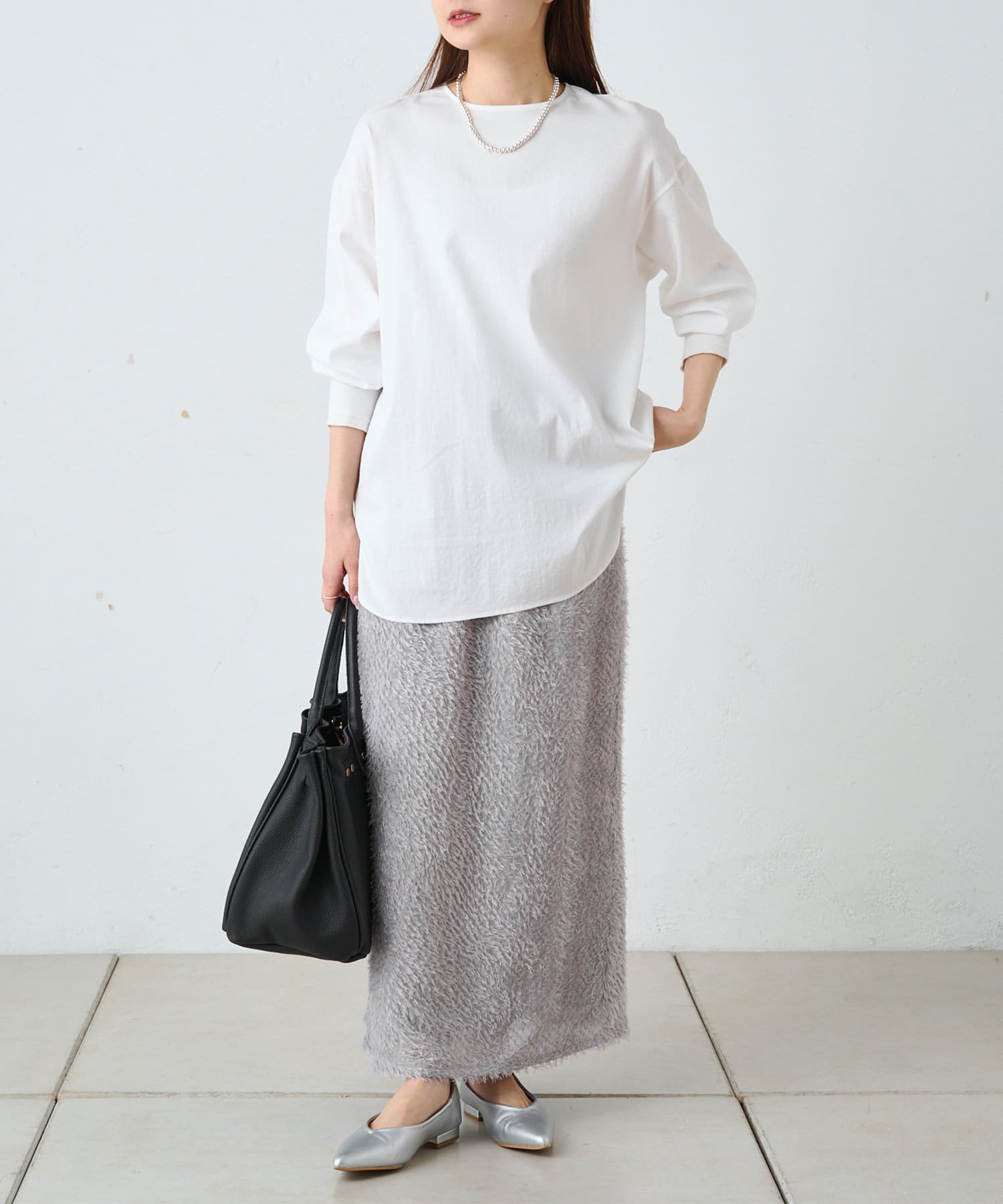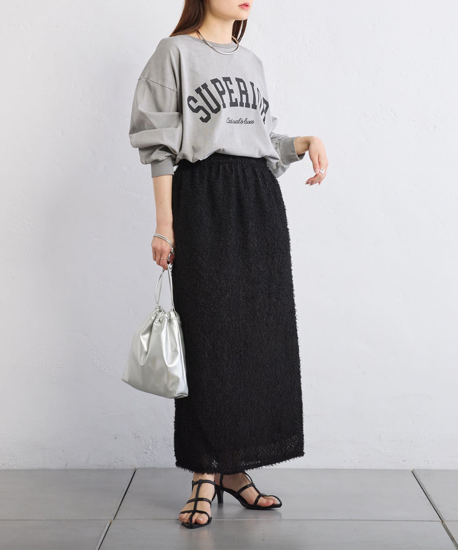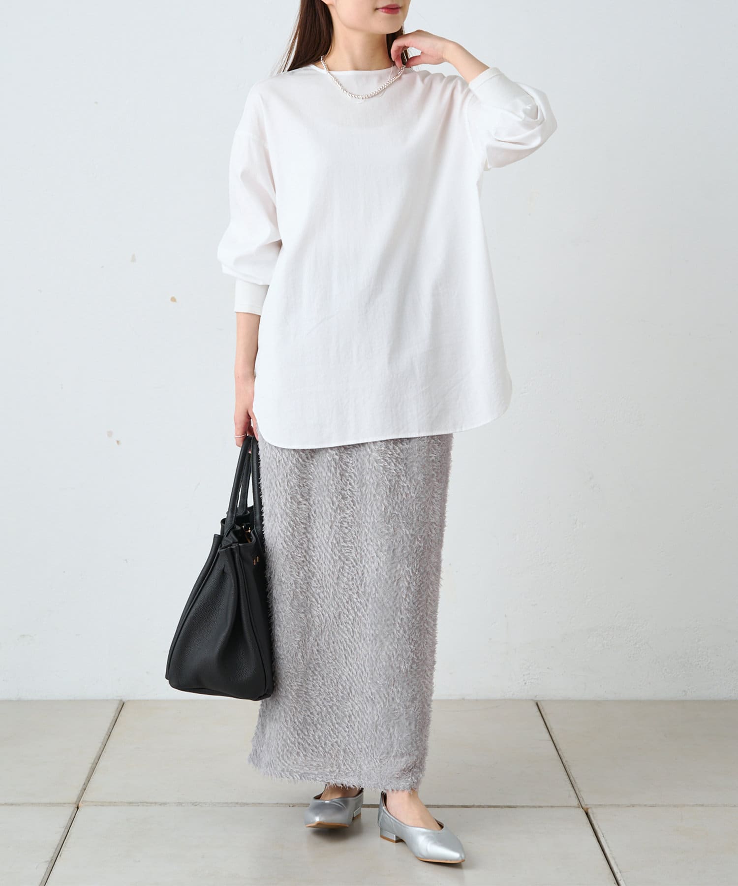綺麗なIラインシルエットなので、ゆったりしたトップスと合わせると