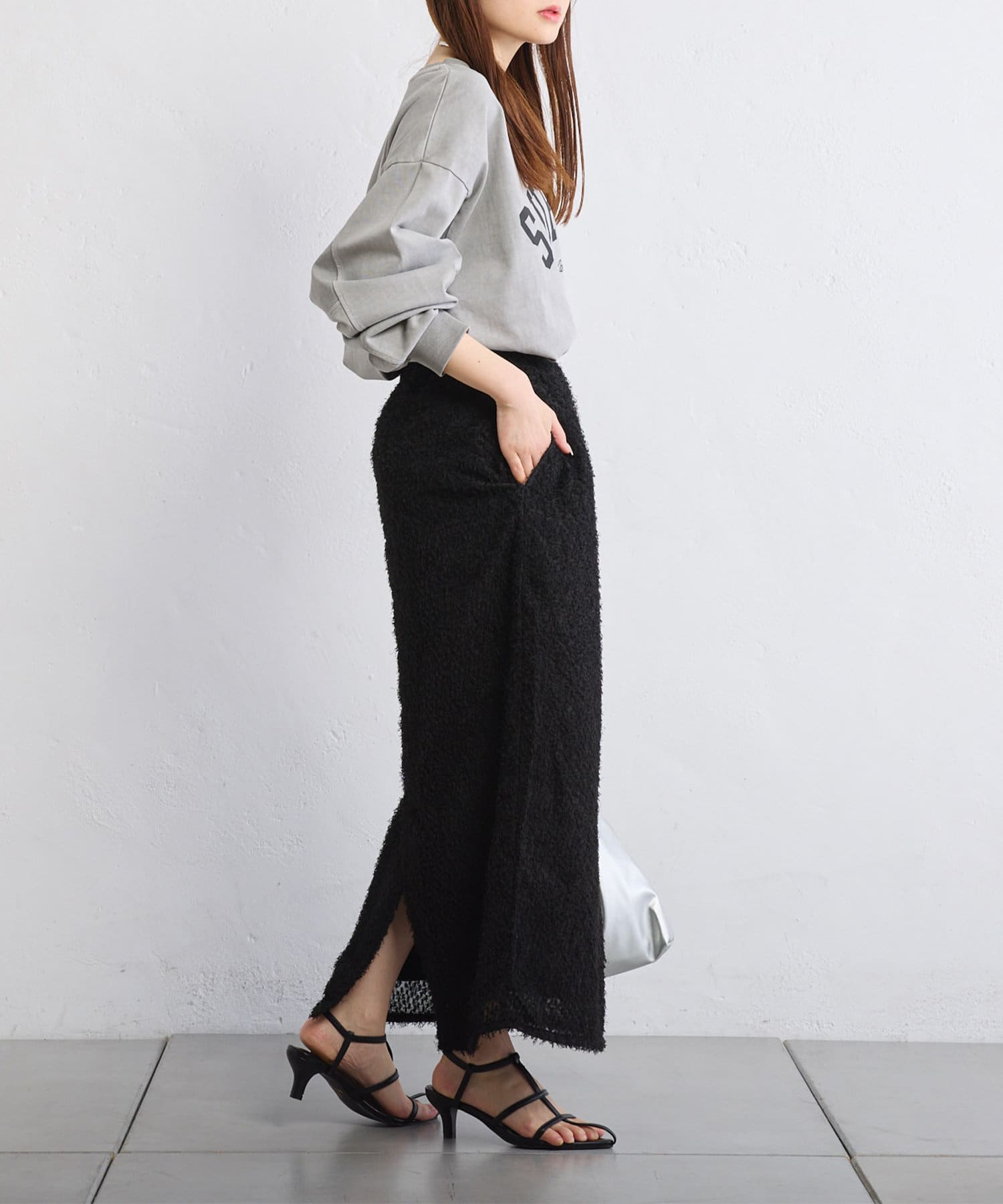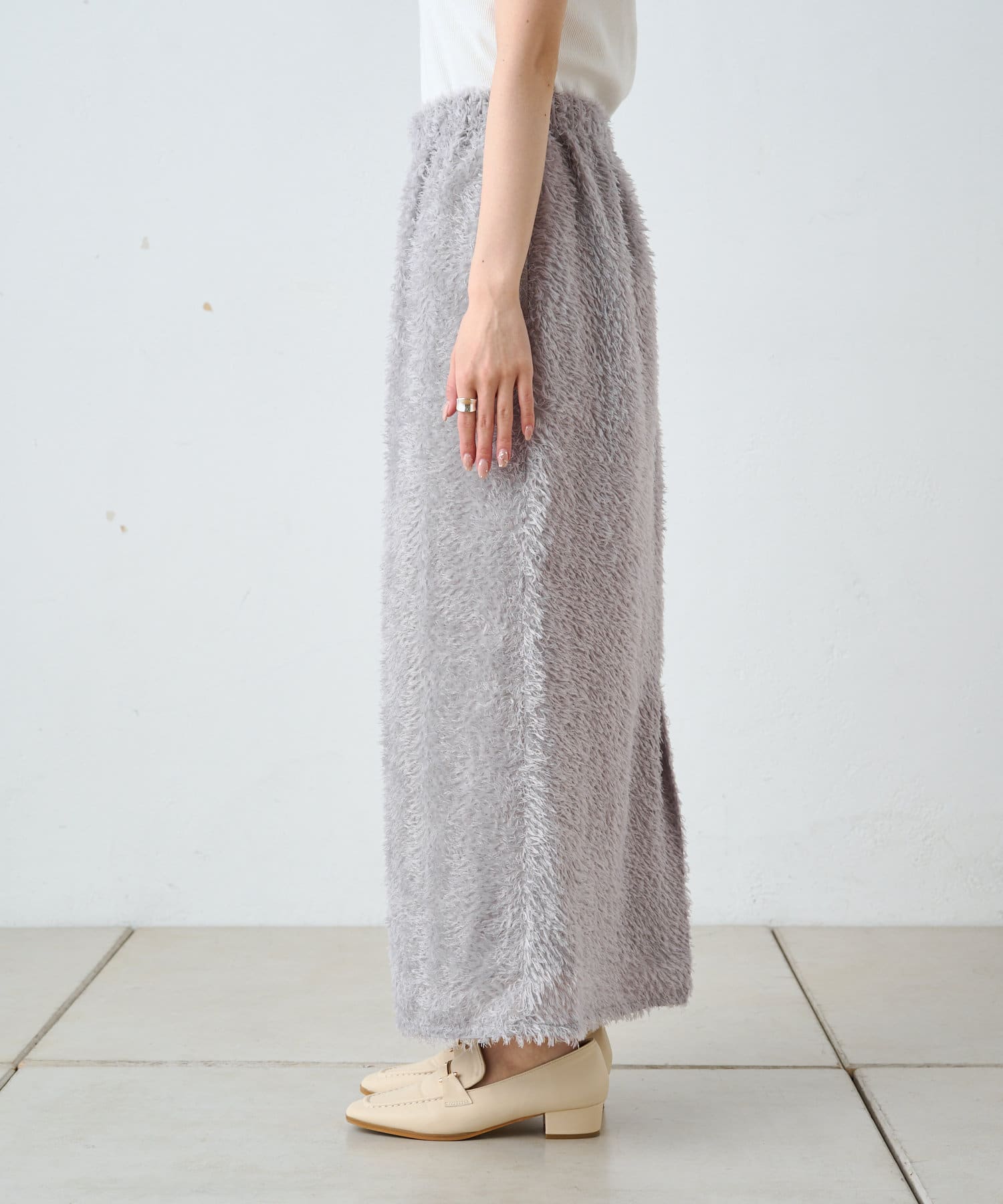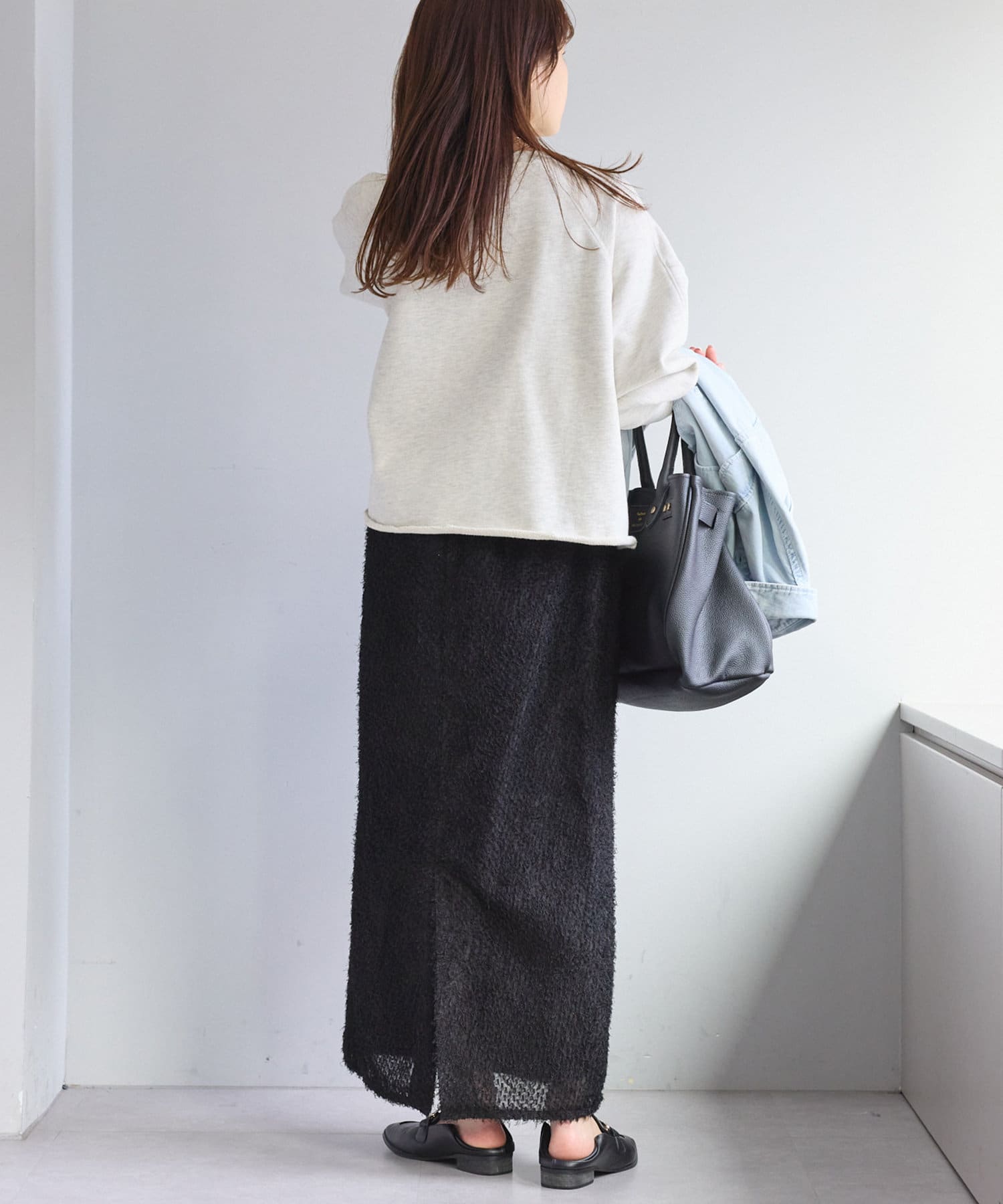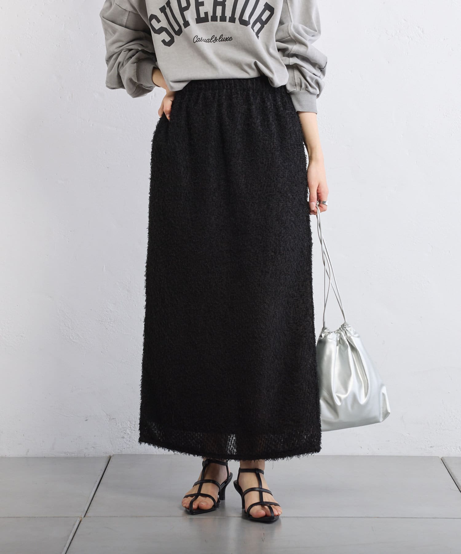 綺麗なIラインシルエットなので、ゆったりしたトップスと合わせると