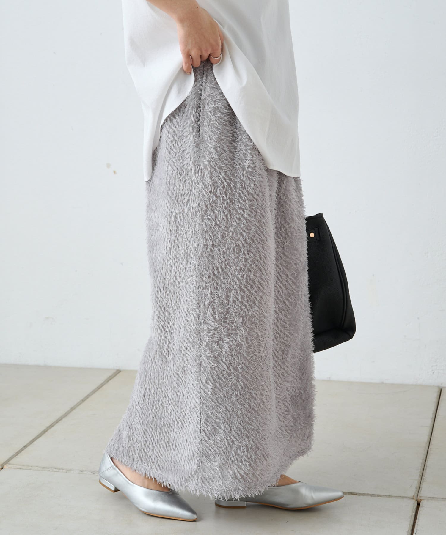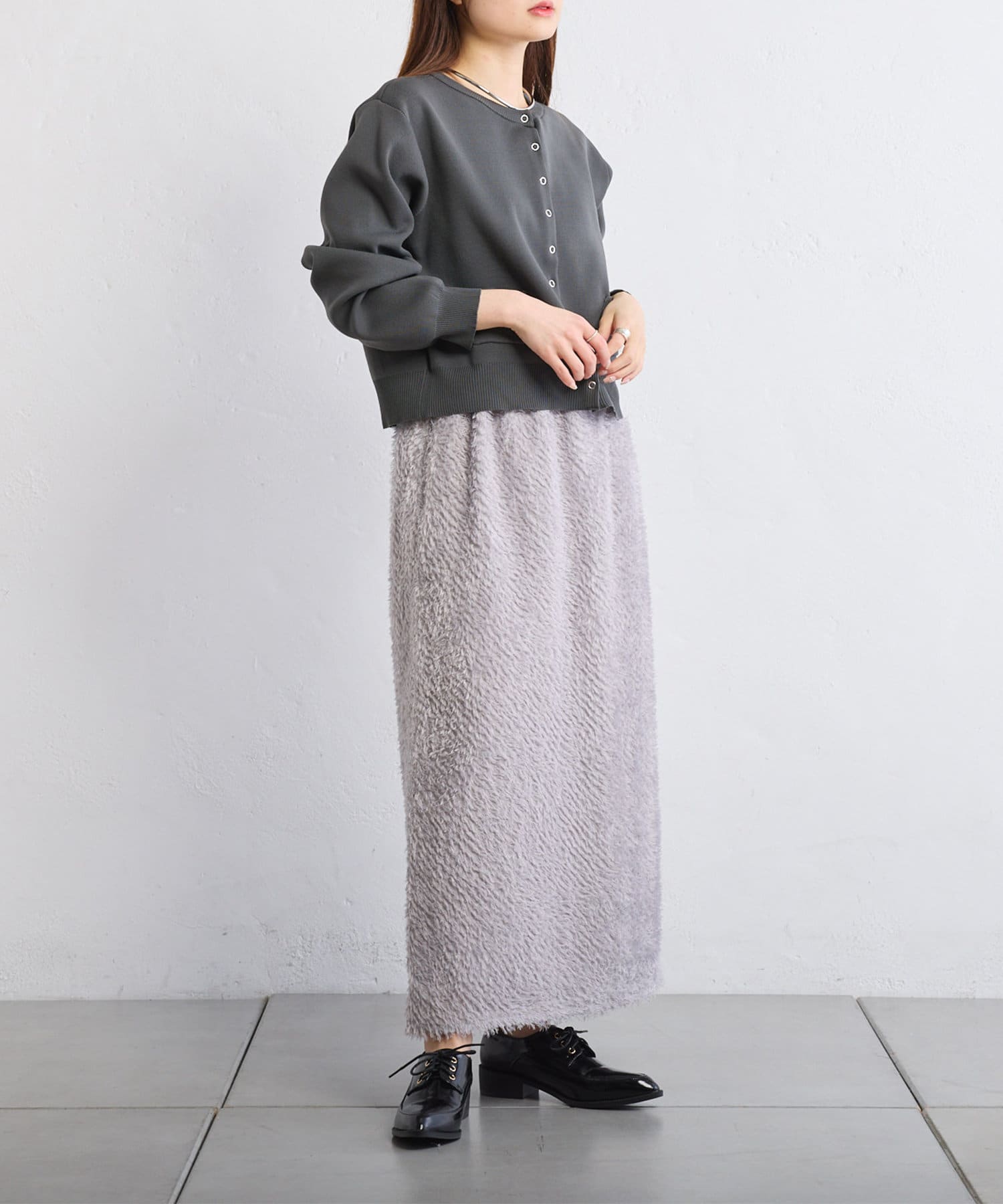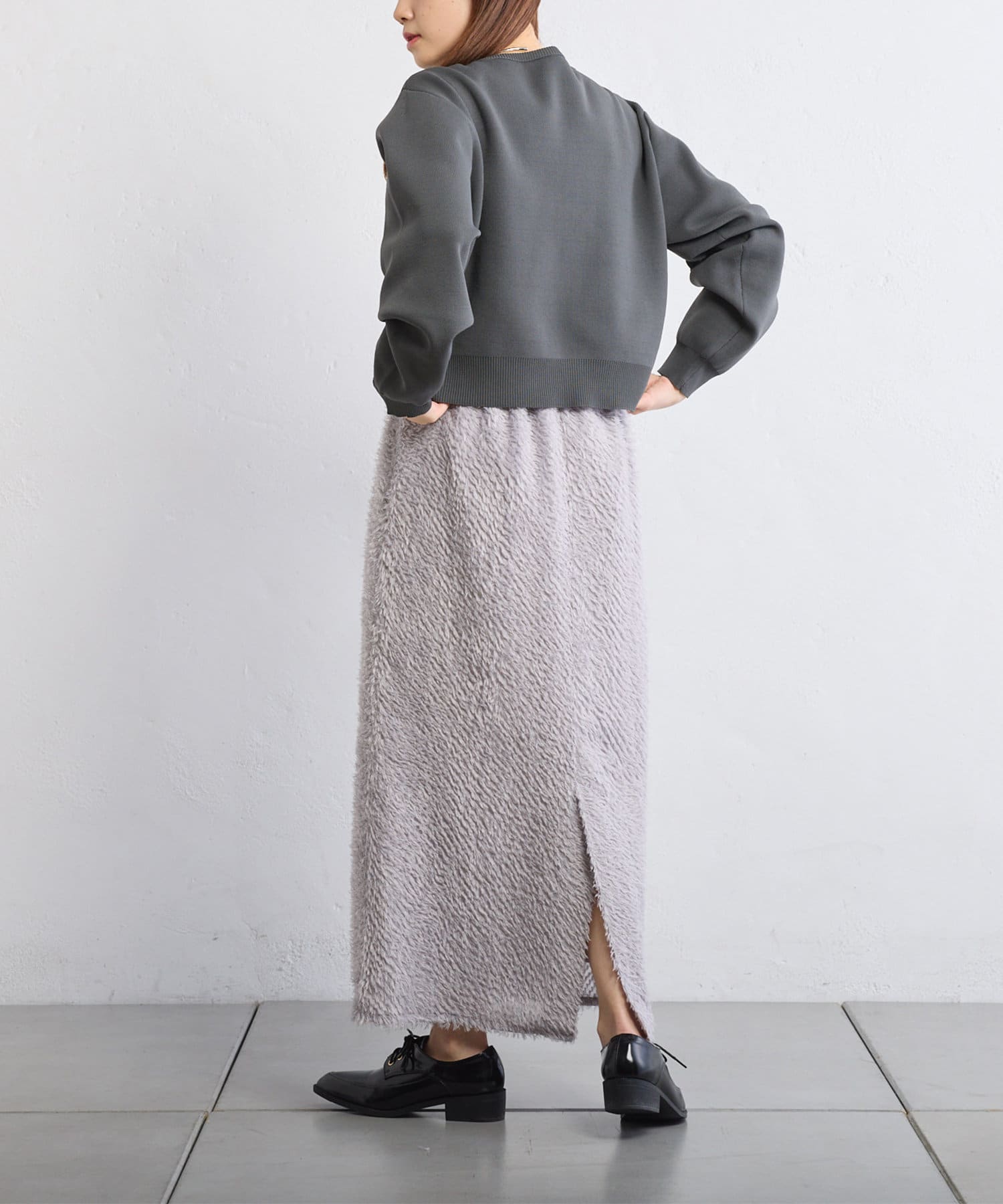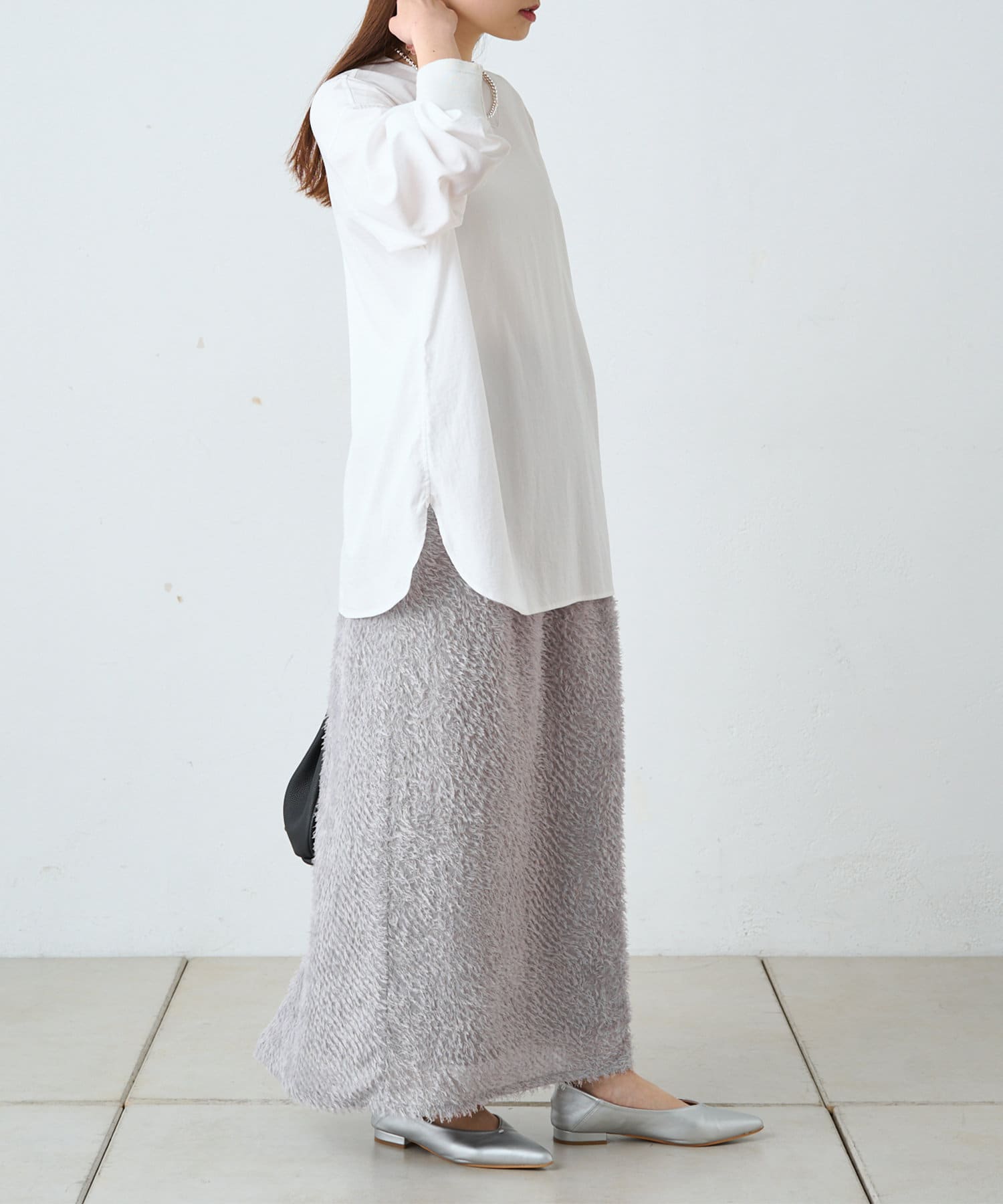 綺麗なIラインシルエットなので、ゆったりしたトップスと合わせると