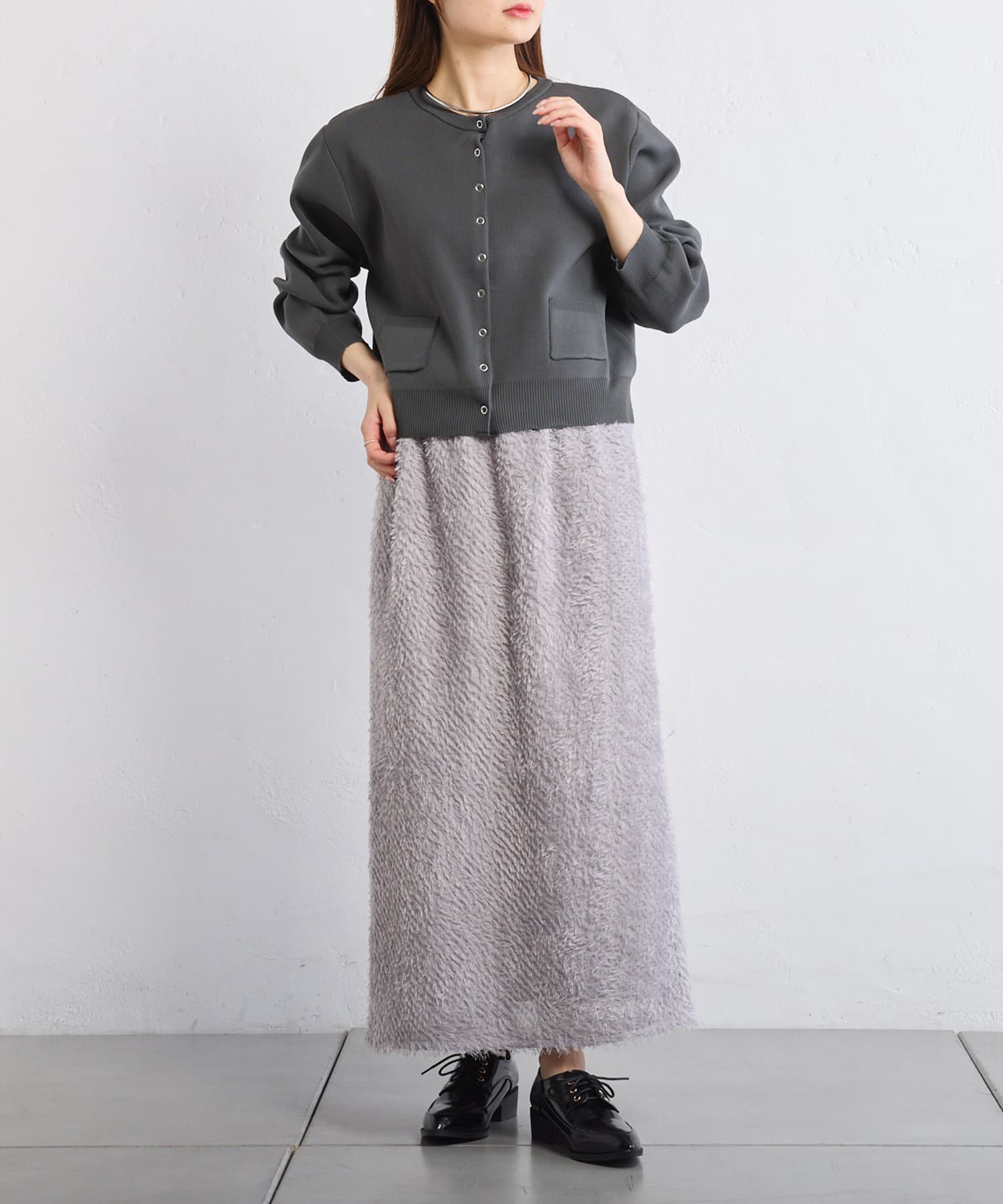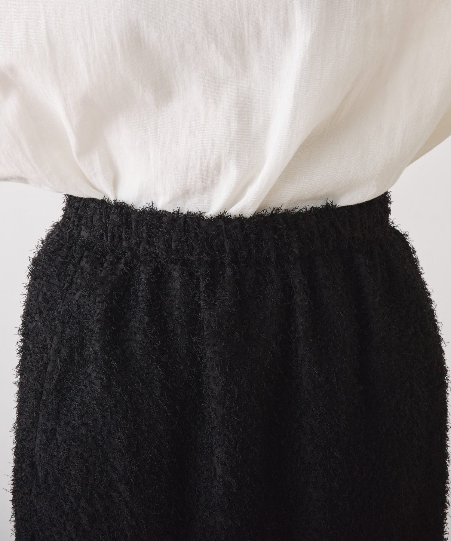 コーディネートを格上げしてくれるフリンジジャガードスカート。