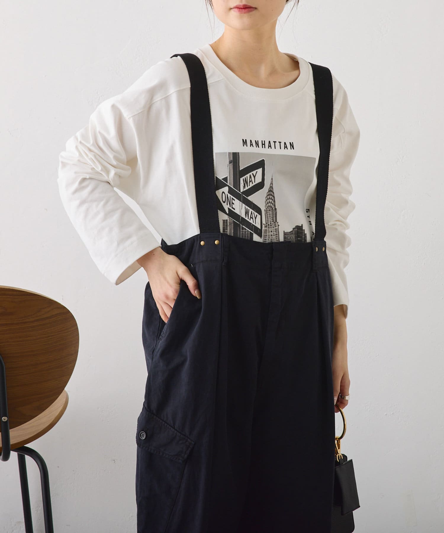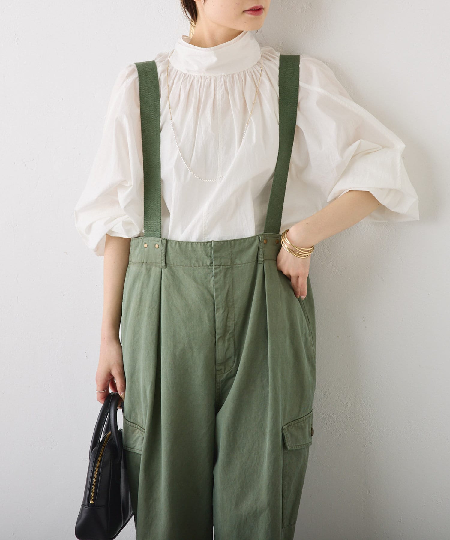 サスペンダーで長さの調節ができるので、幅広い方に着用いただけるのも嬉しいポイント◎