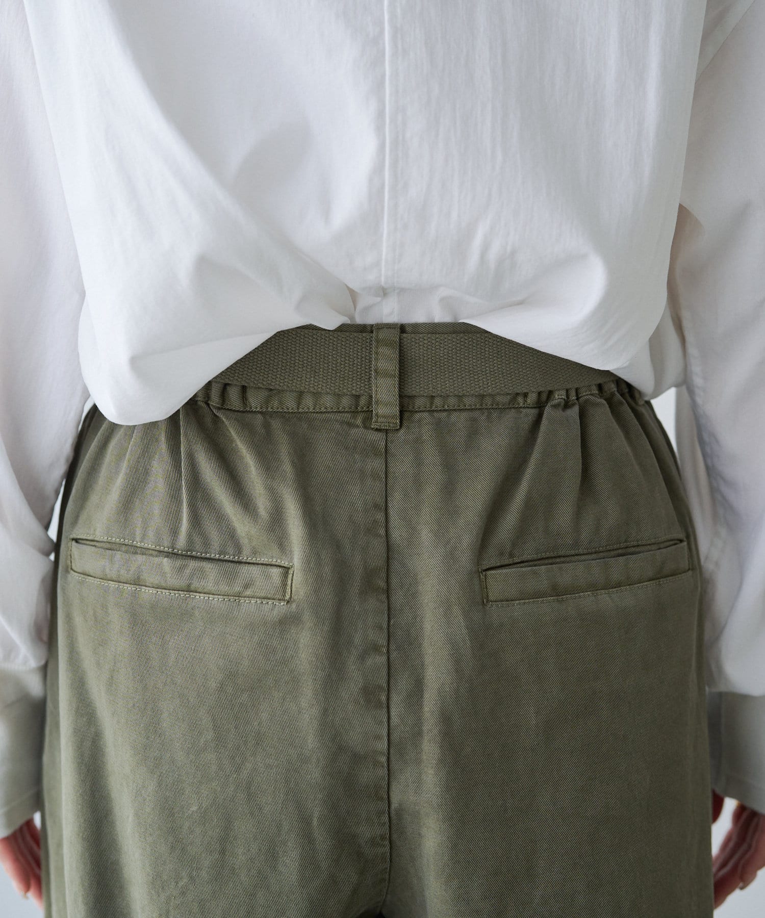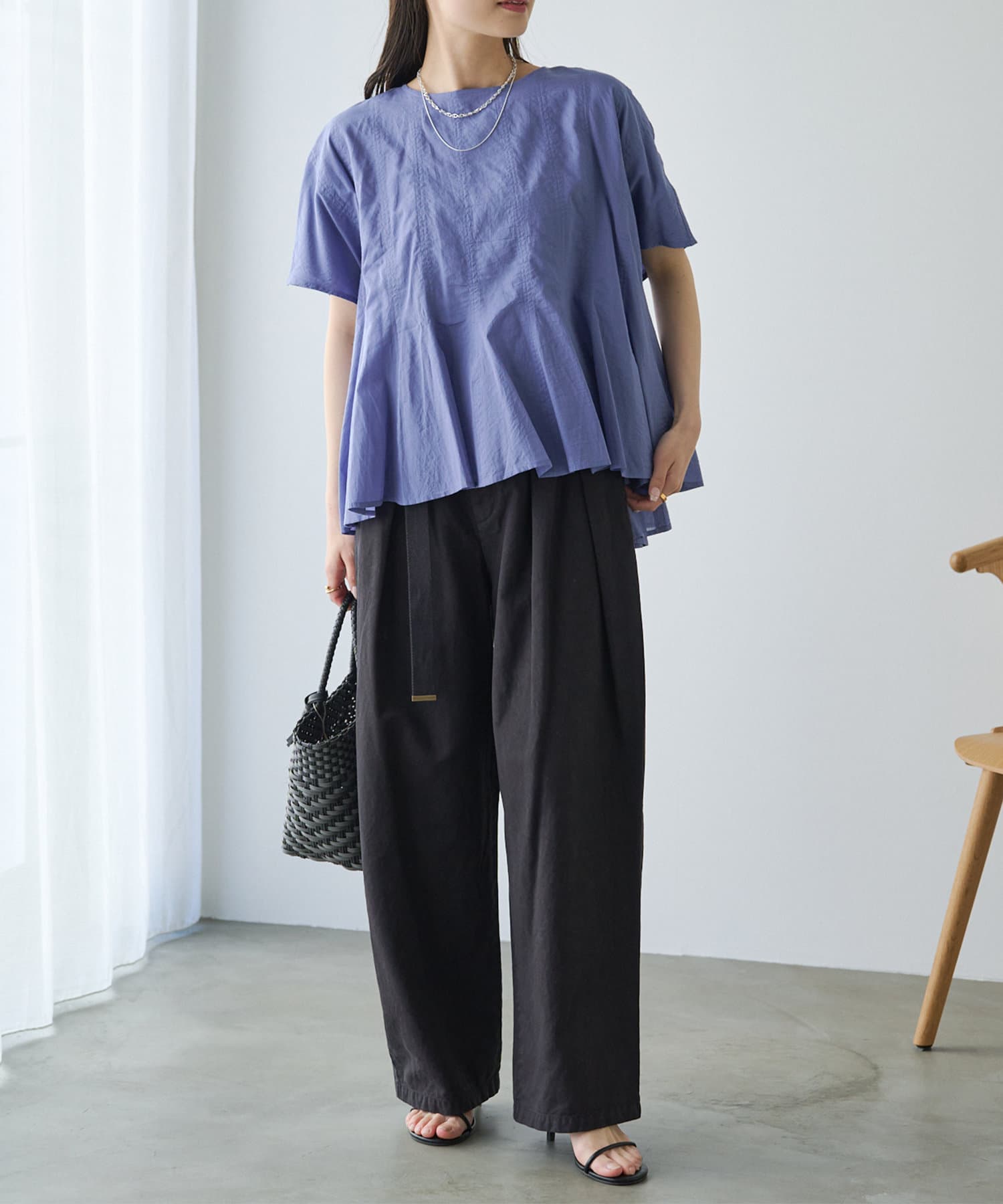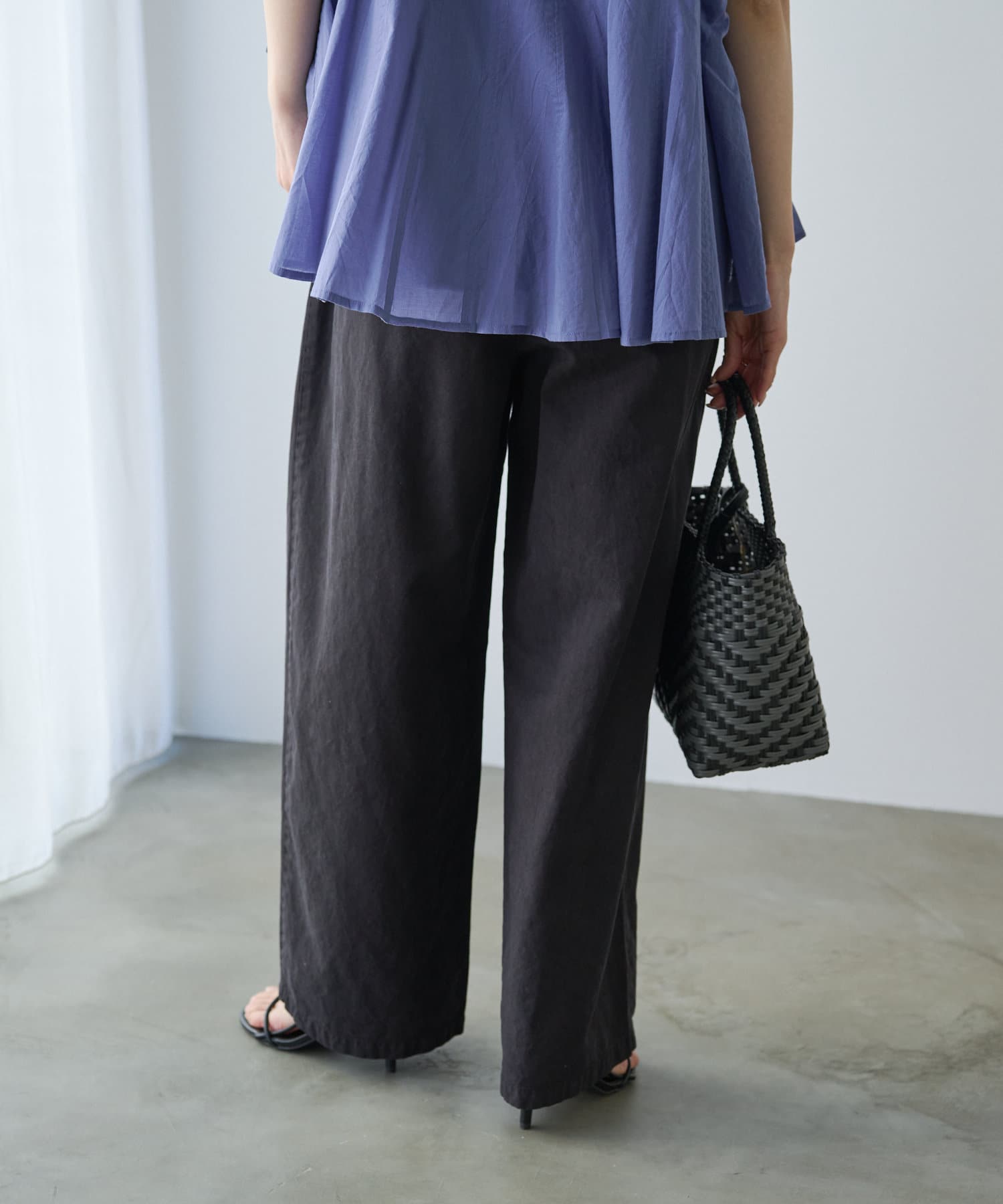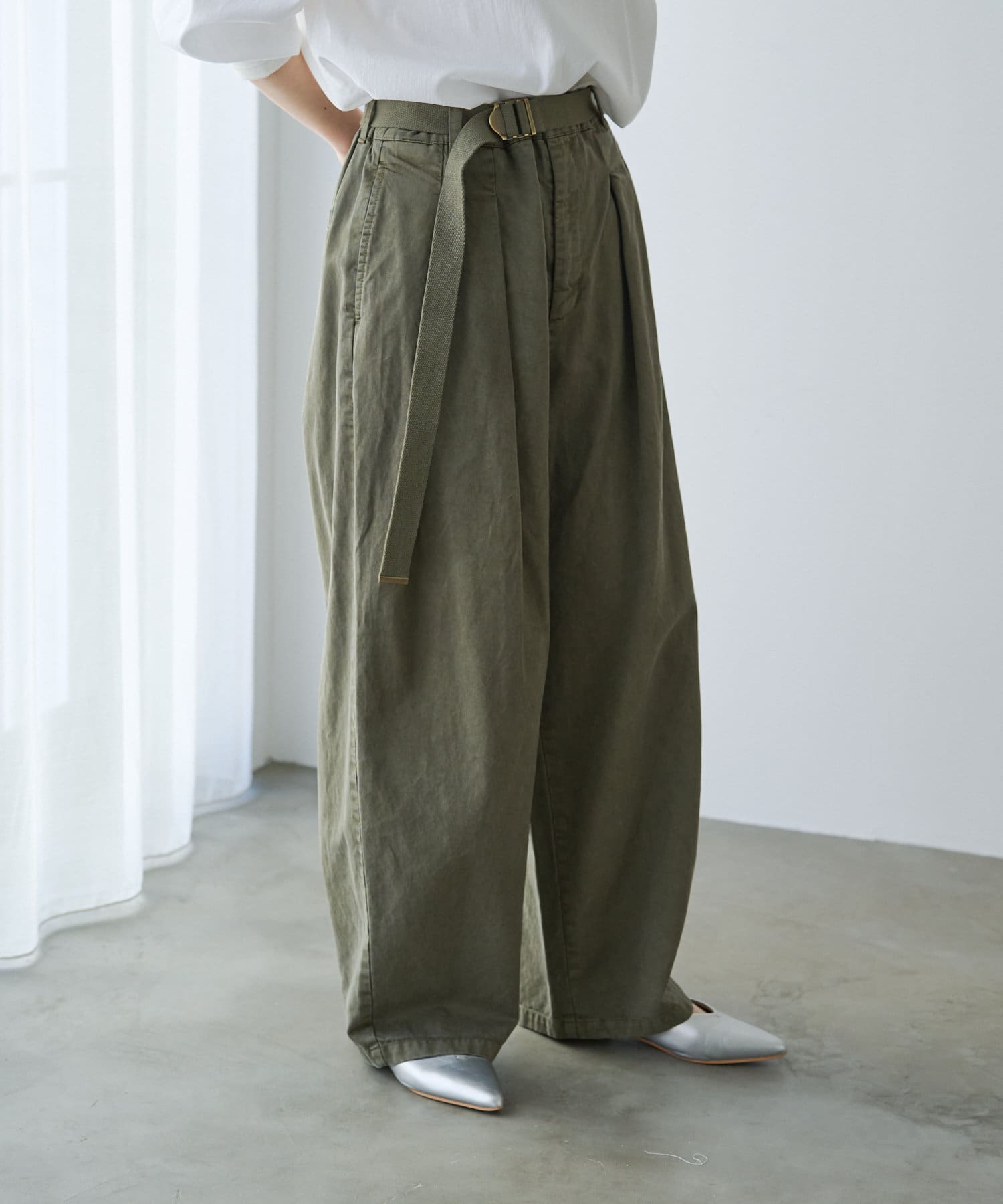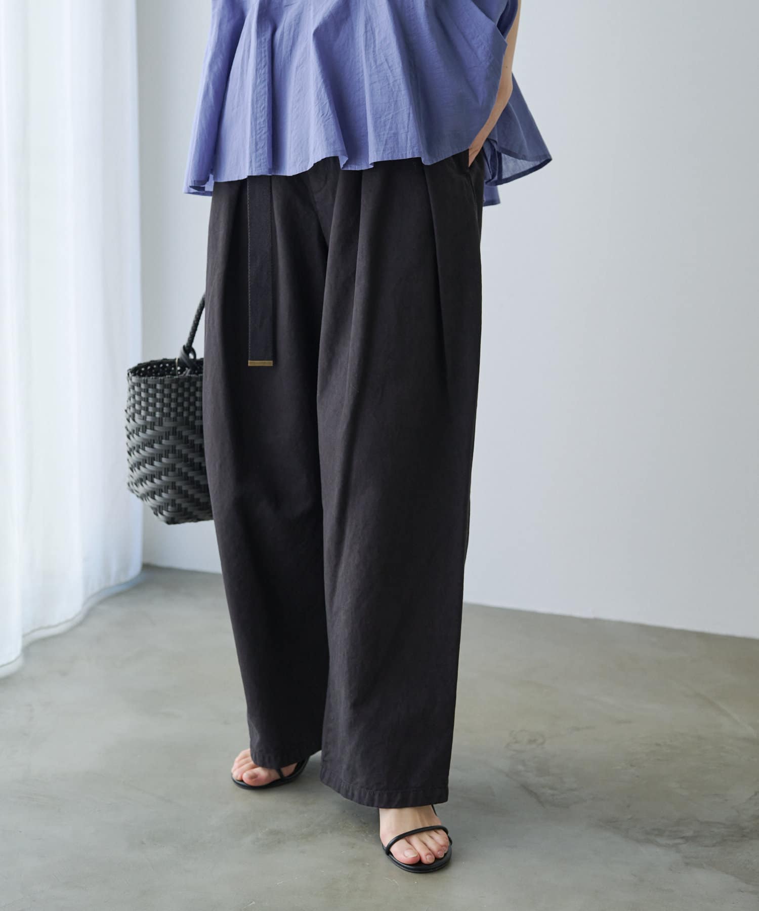 ダブルタックを入れたルーズなシルエットで、こなれ感のあるカジュアルなスタイリングに導きます。