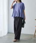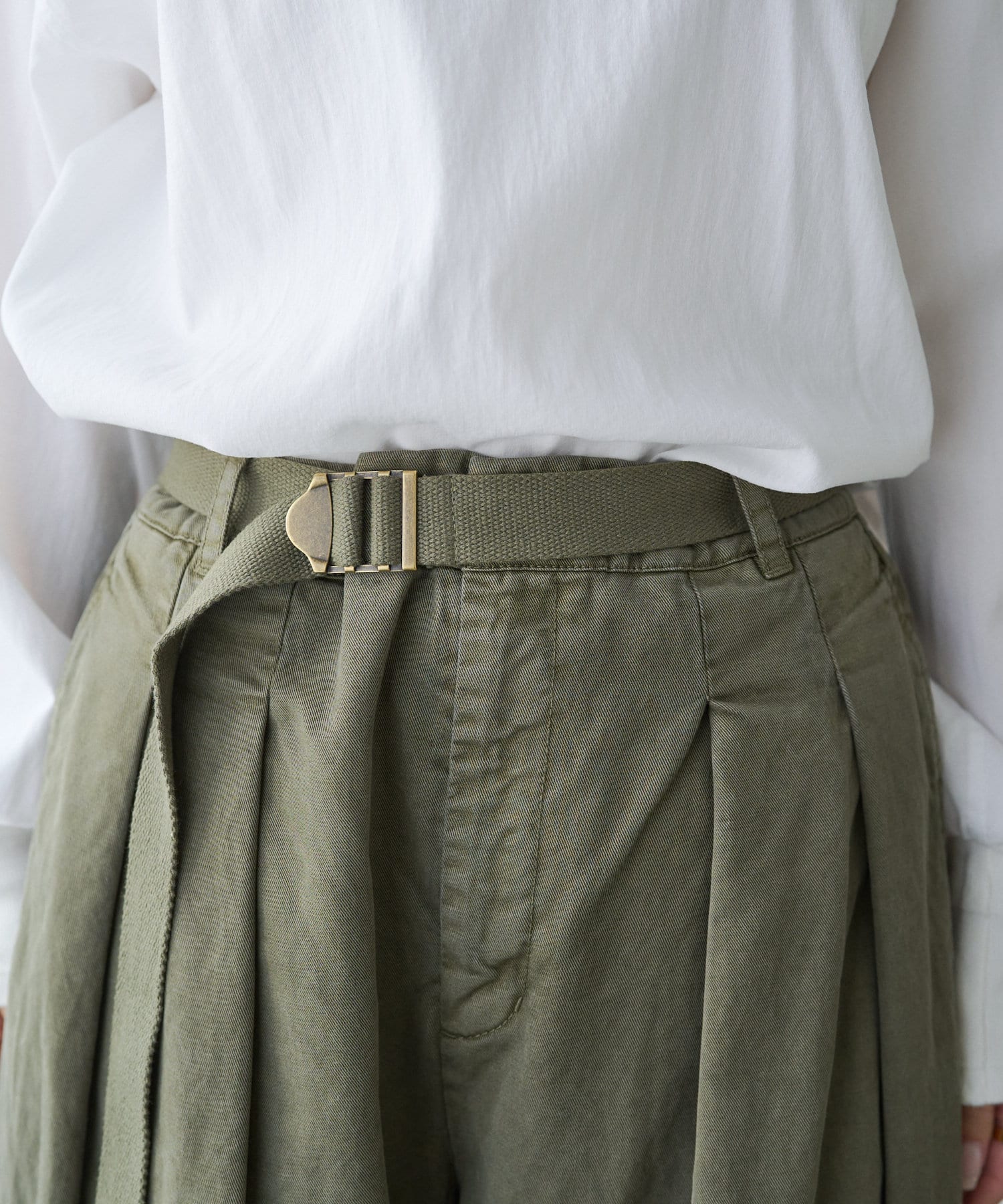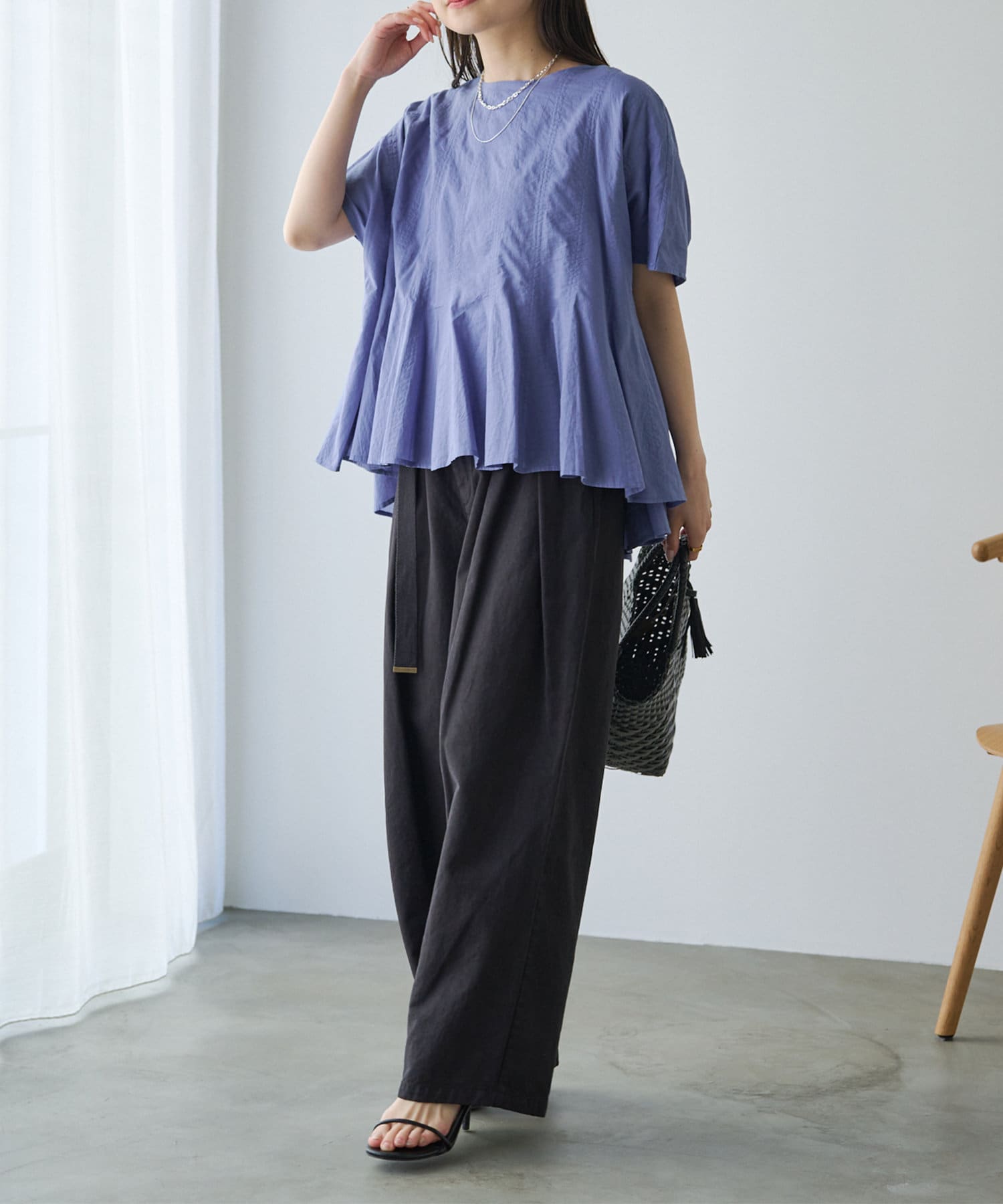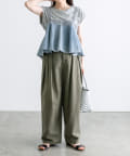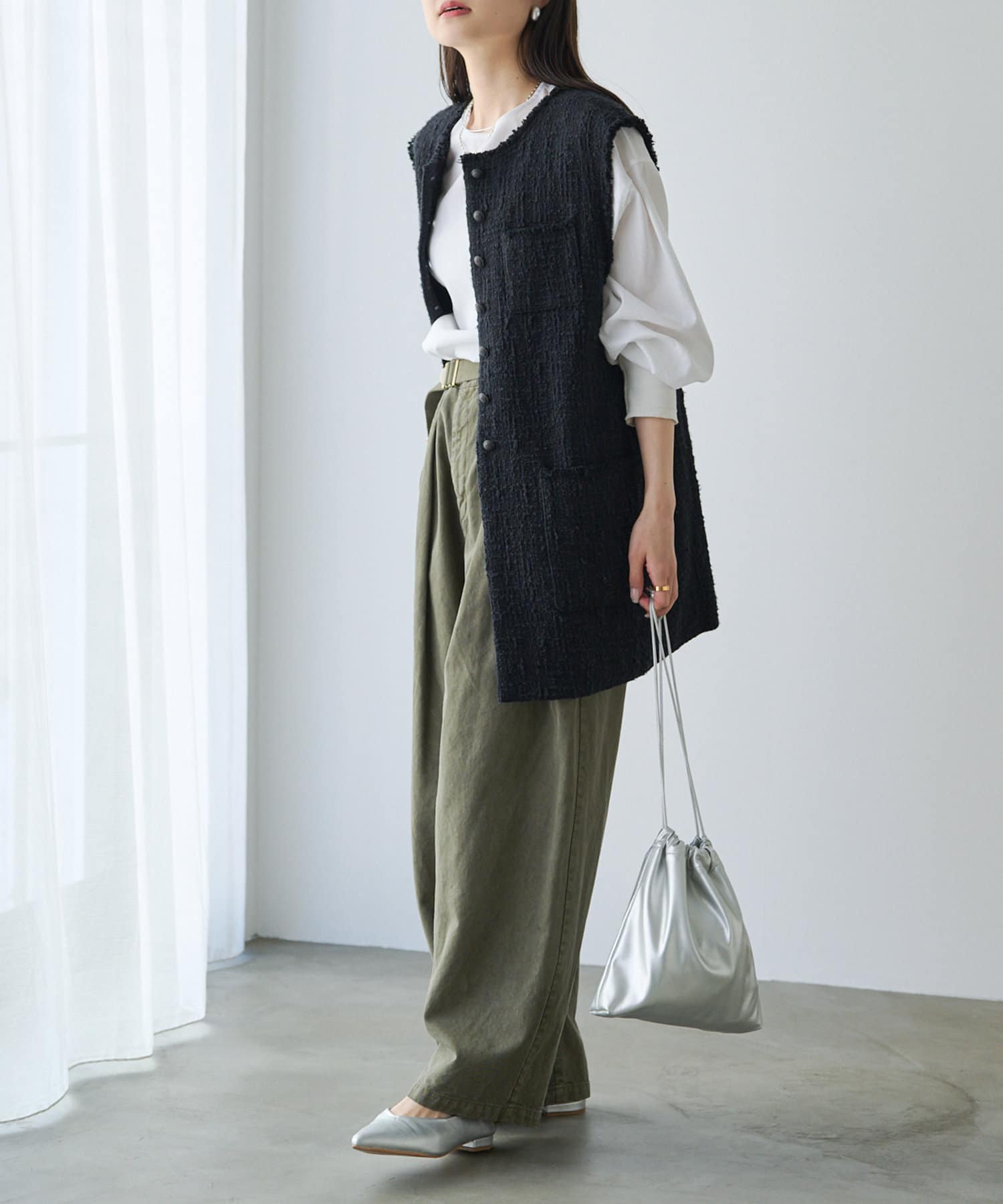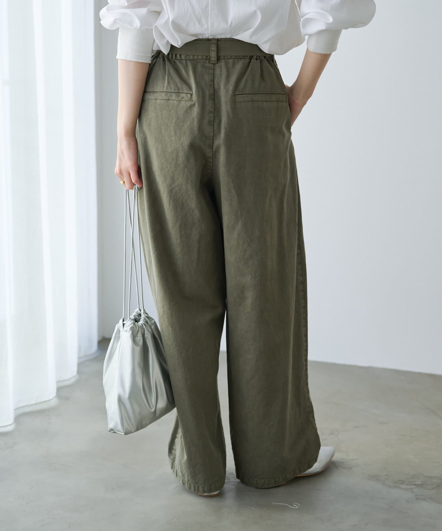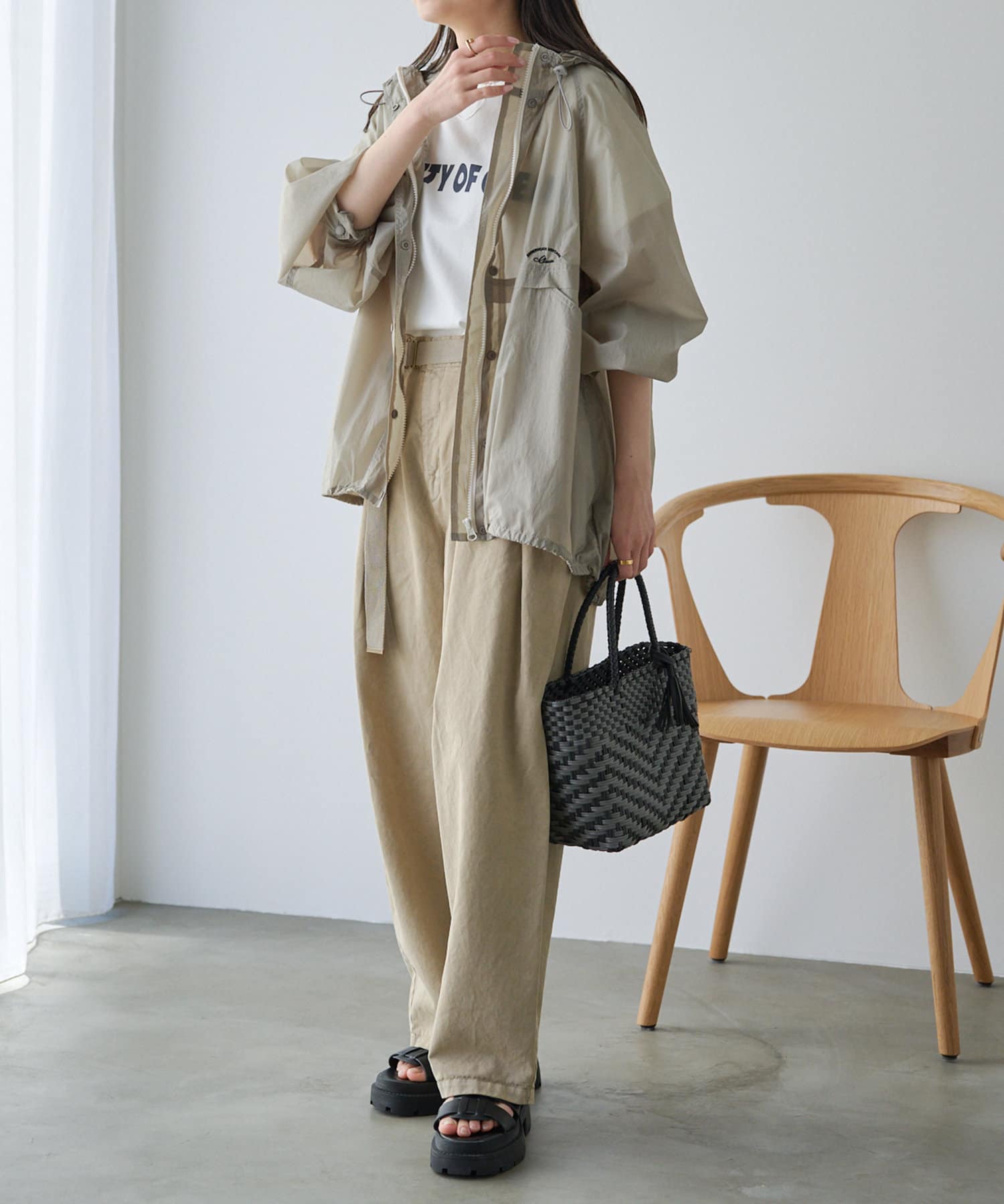 ダブルタックを入れたルーズなシルエットで、こなれ感のあるカジュアルなスタイリングに導きます。