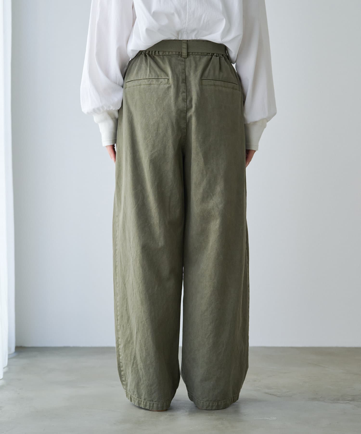 柔らかな素材感と着古したようなヴィンテージ感を感じるカラーリングが魅力のパンツ。