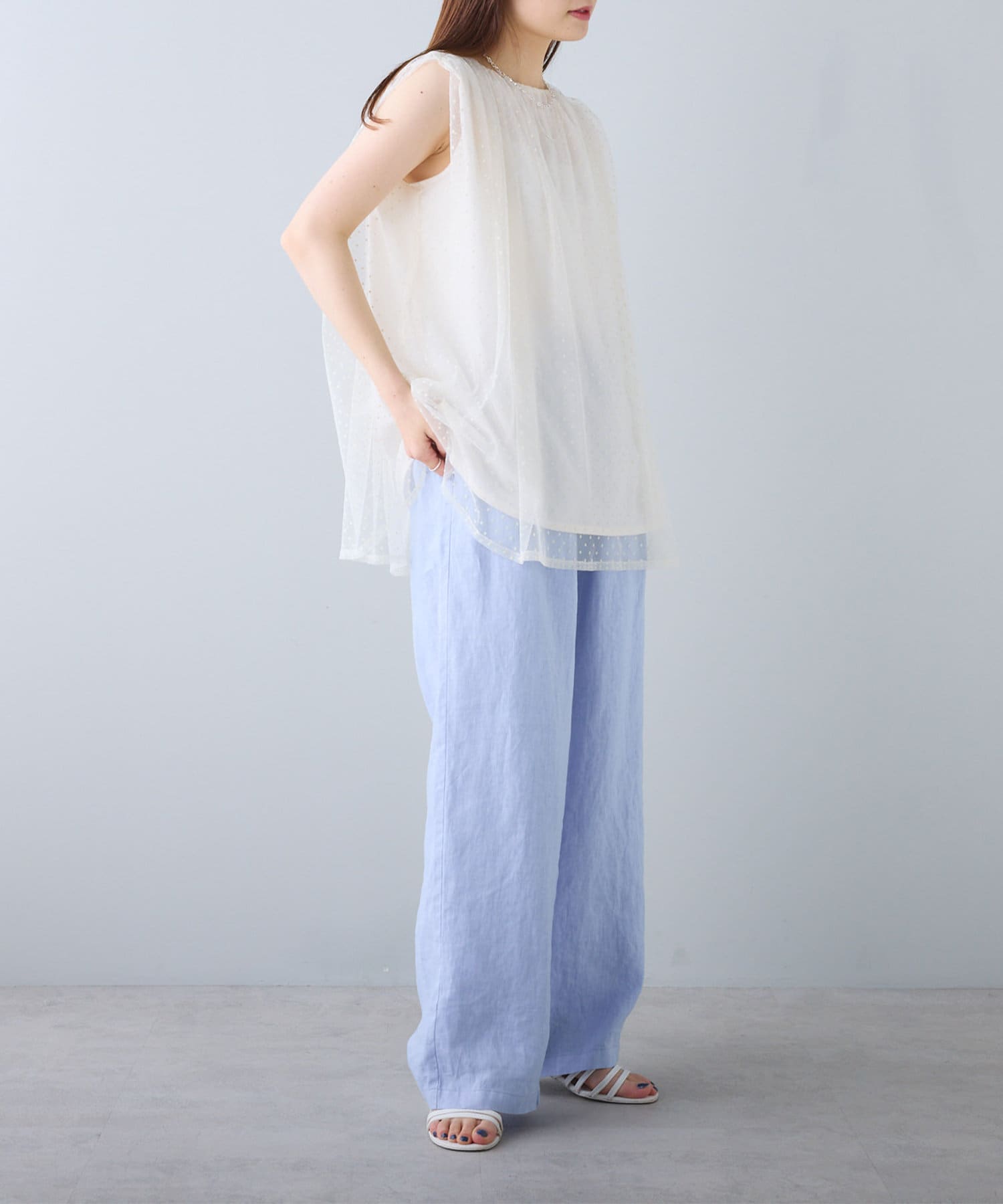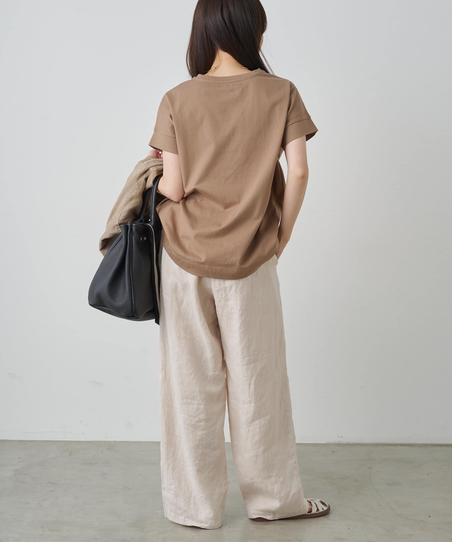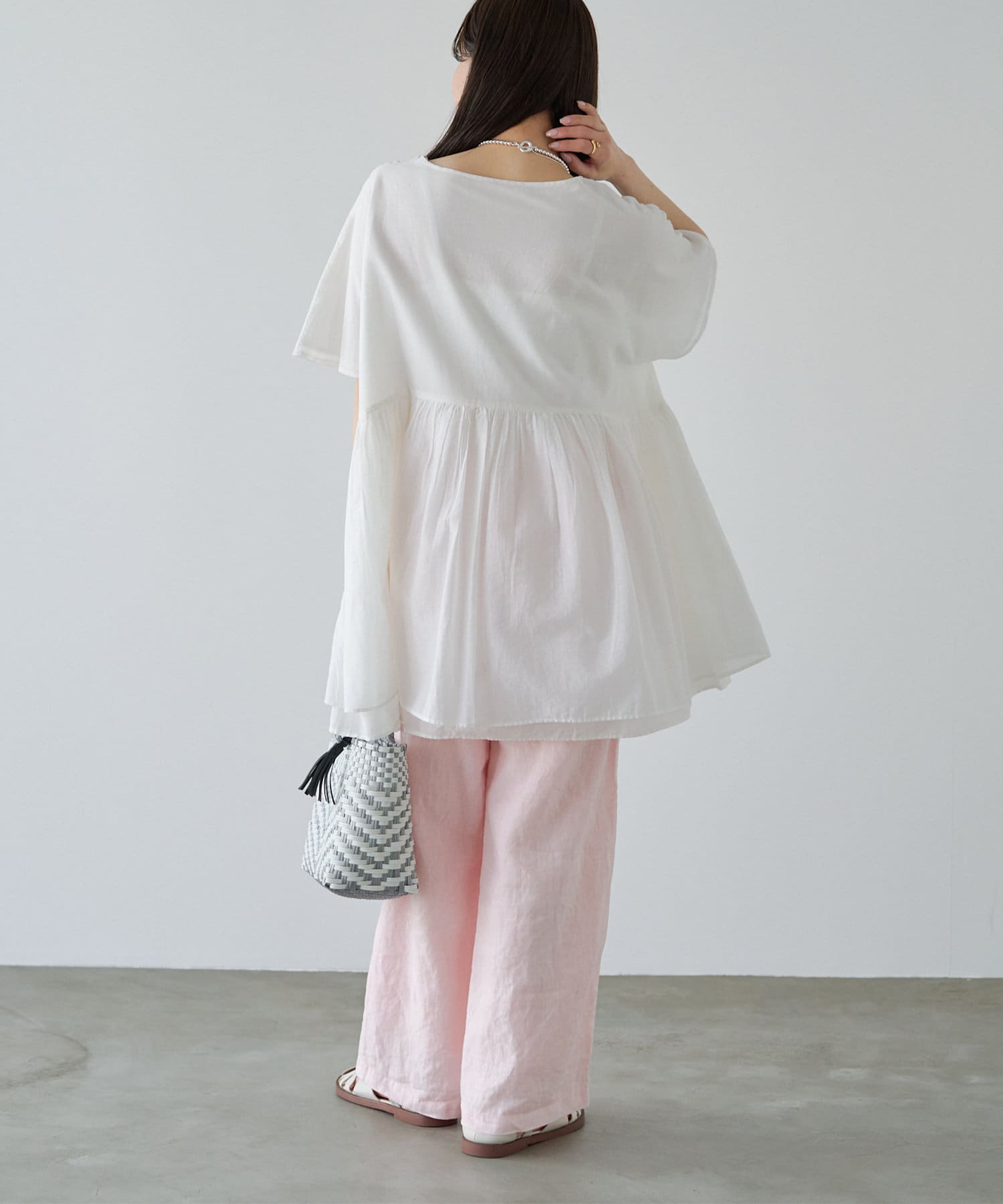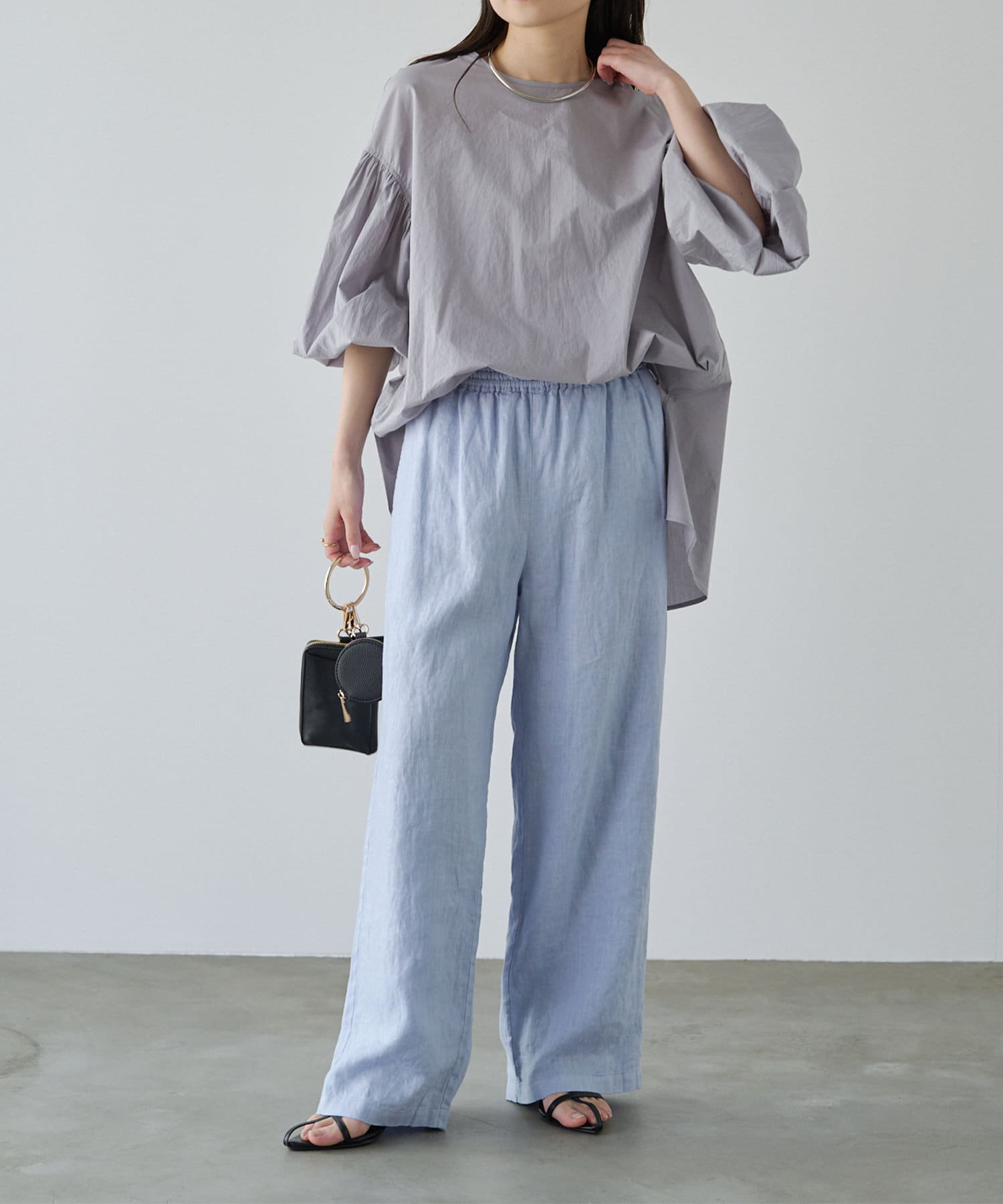 程よくゆとりのあるサイジングで体型カバーはもちろん、フラットサンダルやTシャツ合わせでも着崩れる雰囲気を作りません。