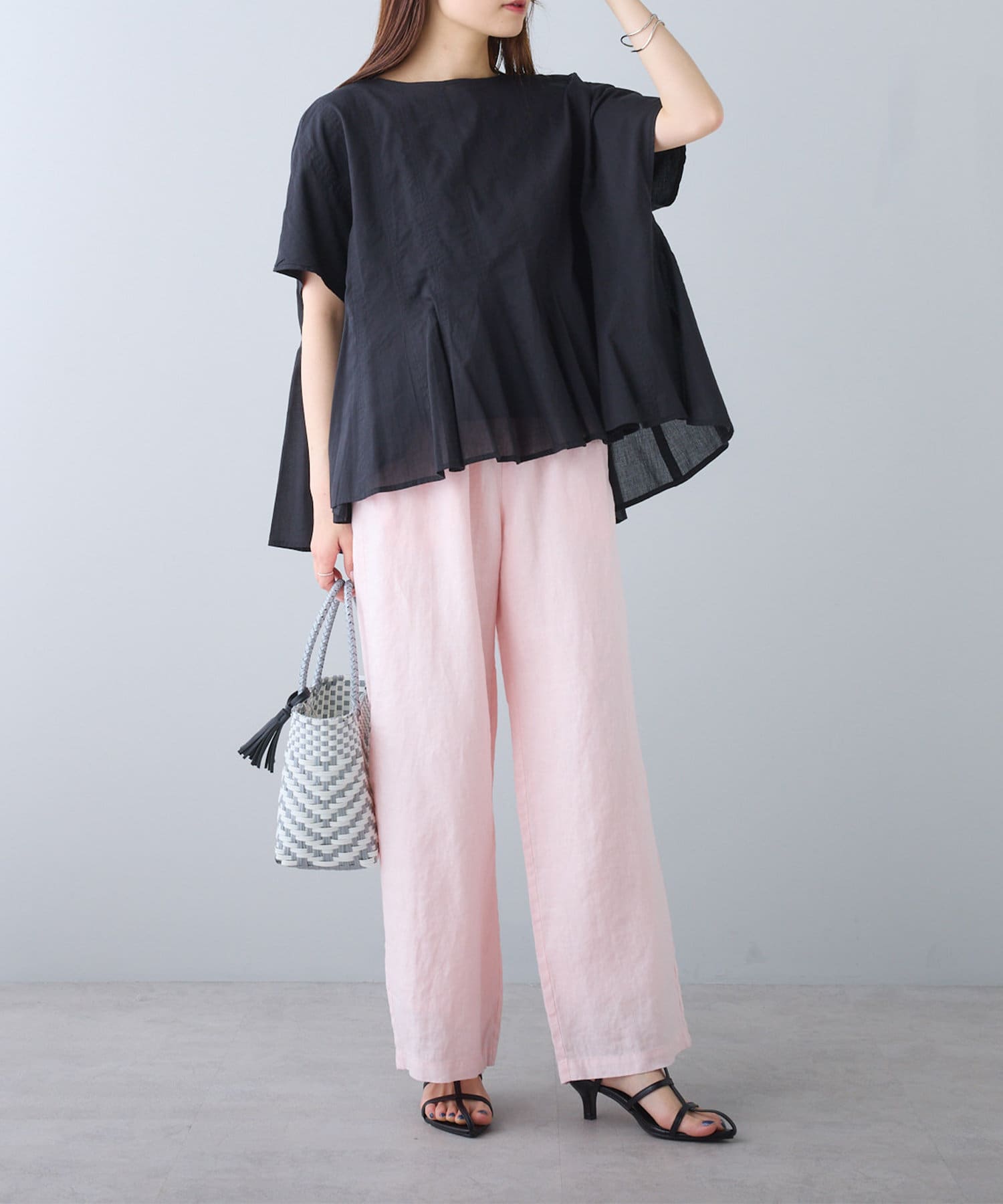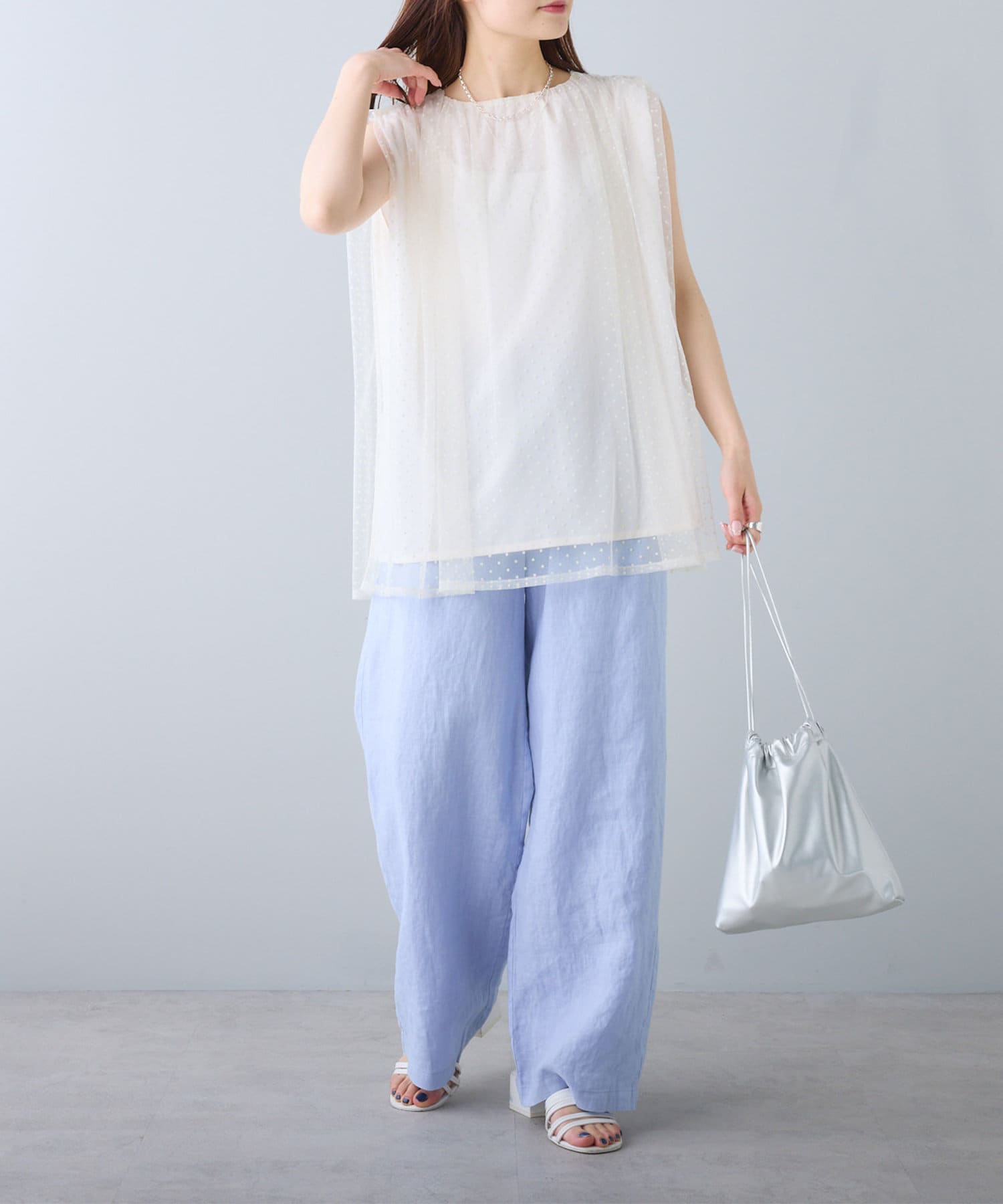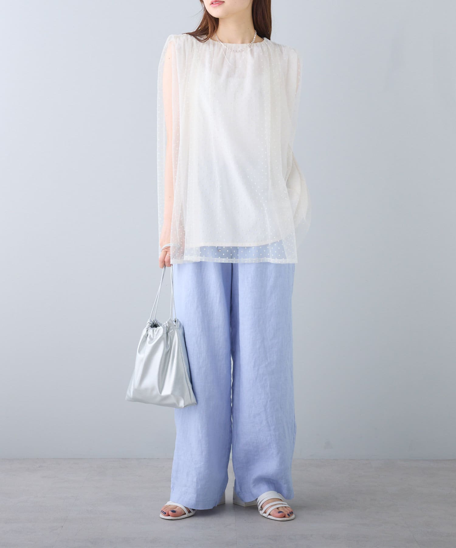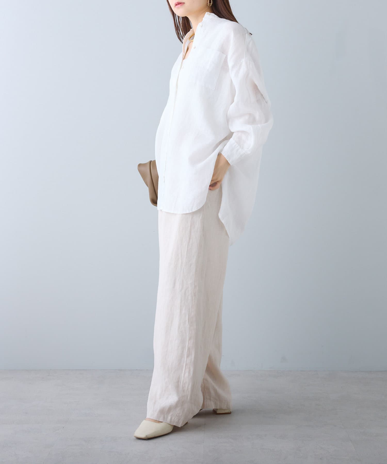 程よくゆとりのあるサイジングで体型カバーはもちろん、フラットサンダルやTシャツ合わせでも着崩れる雰囲気を作りません。