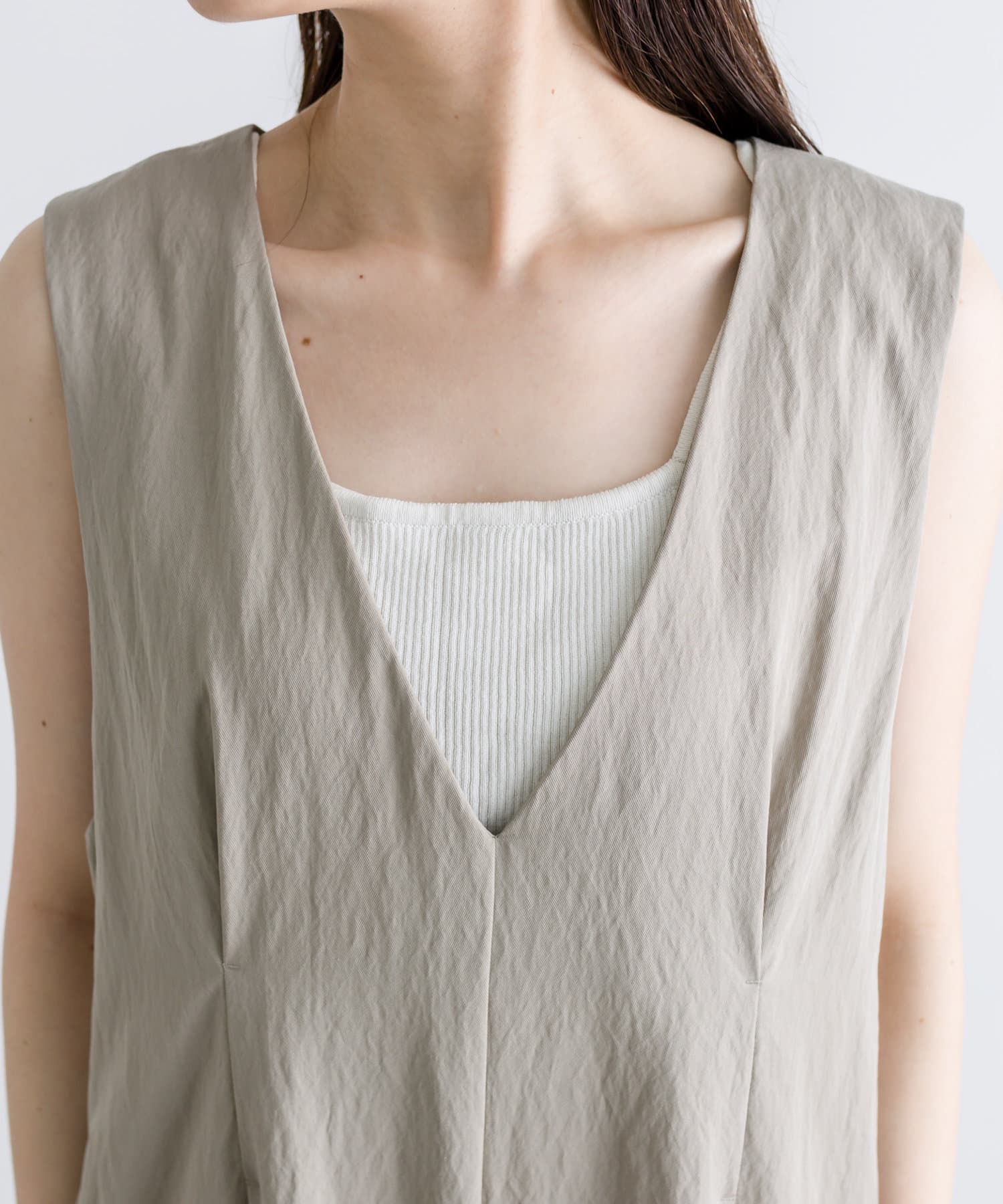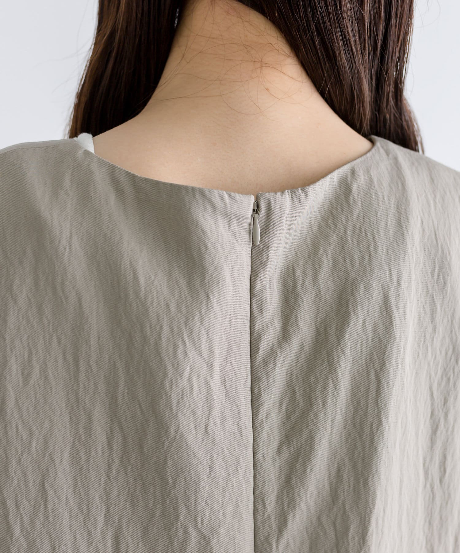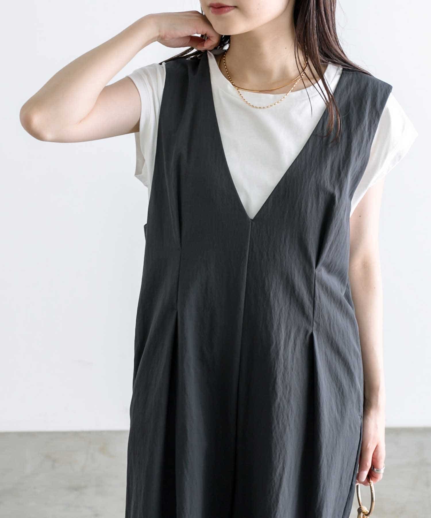 胸下とウエスト、2箇所にタックを入れることで重心を上に見せ、