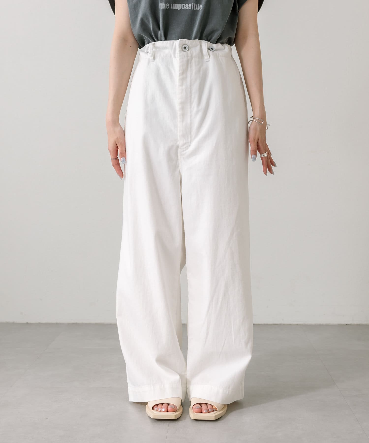 ゆったりとしたワイドシルエットのパンツとして着用することが出来るので
