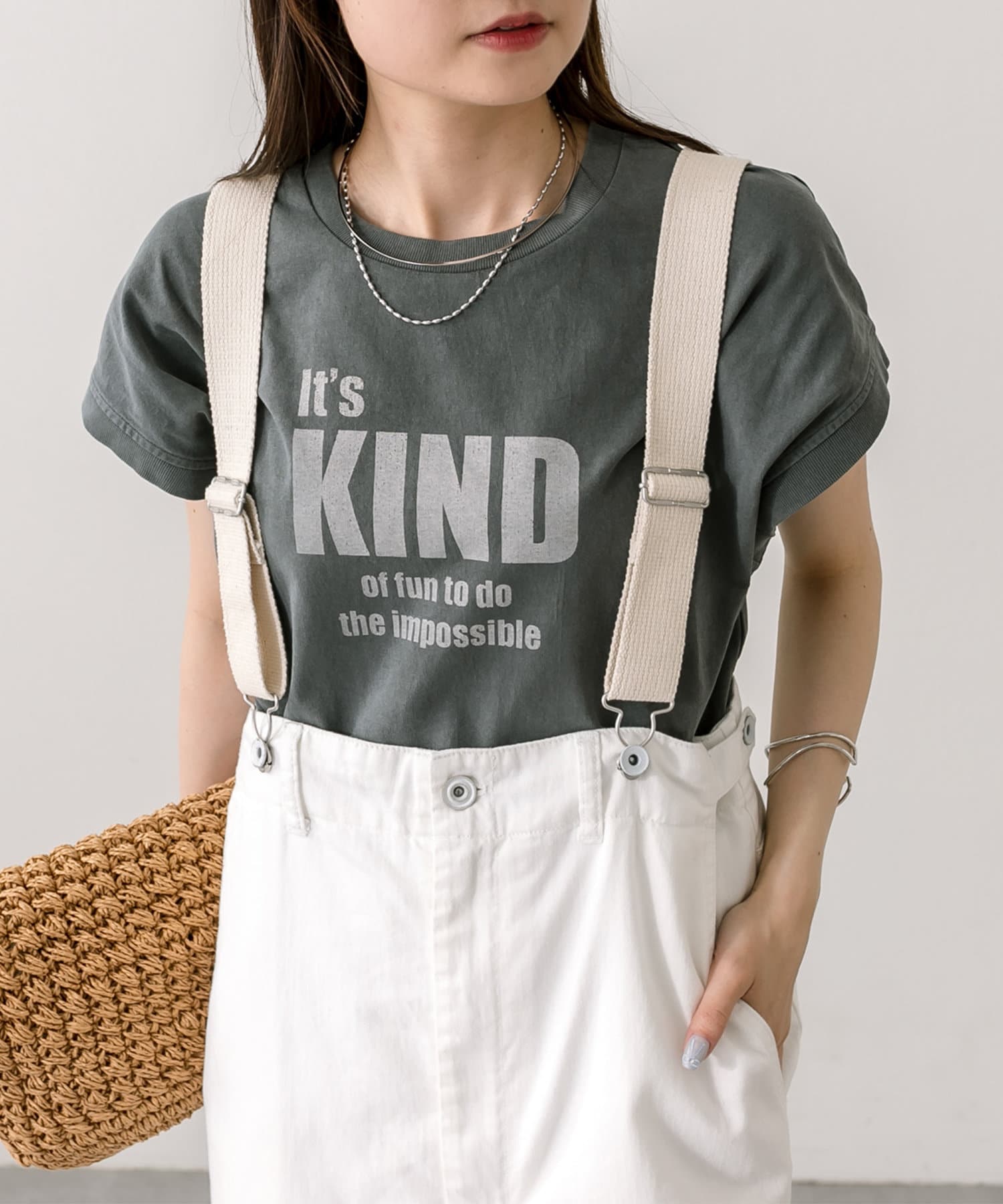 夏はTシャツやタンクトップなどトップスを変えればロングシーズン着回せて、コーディネートの幅が広がる1枚です。