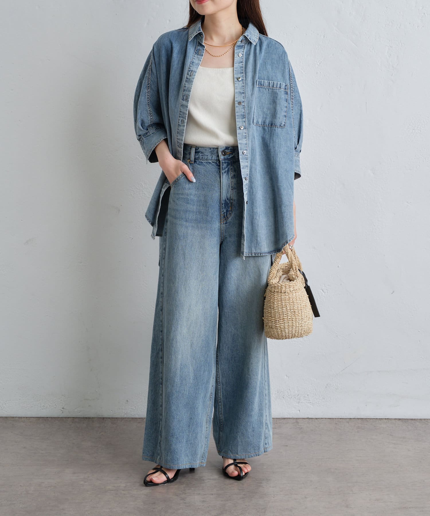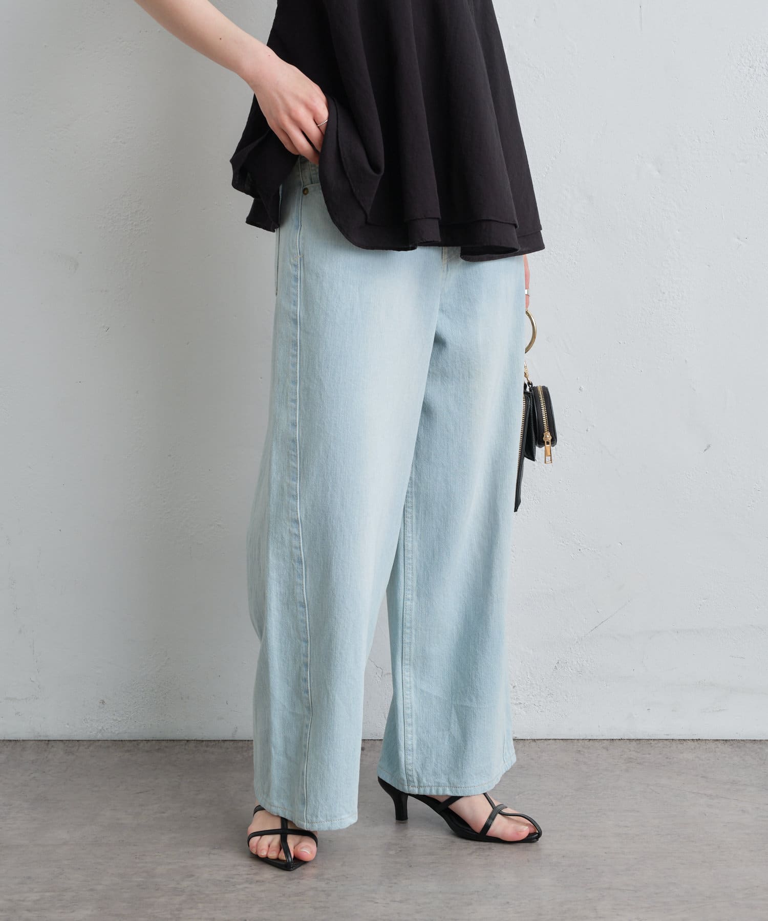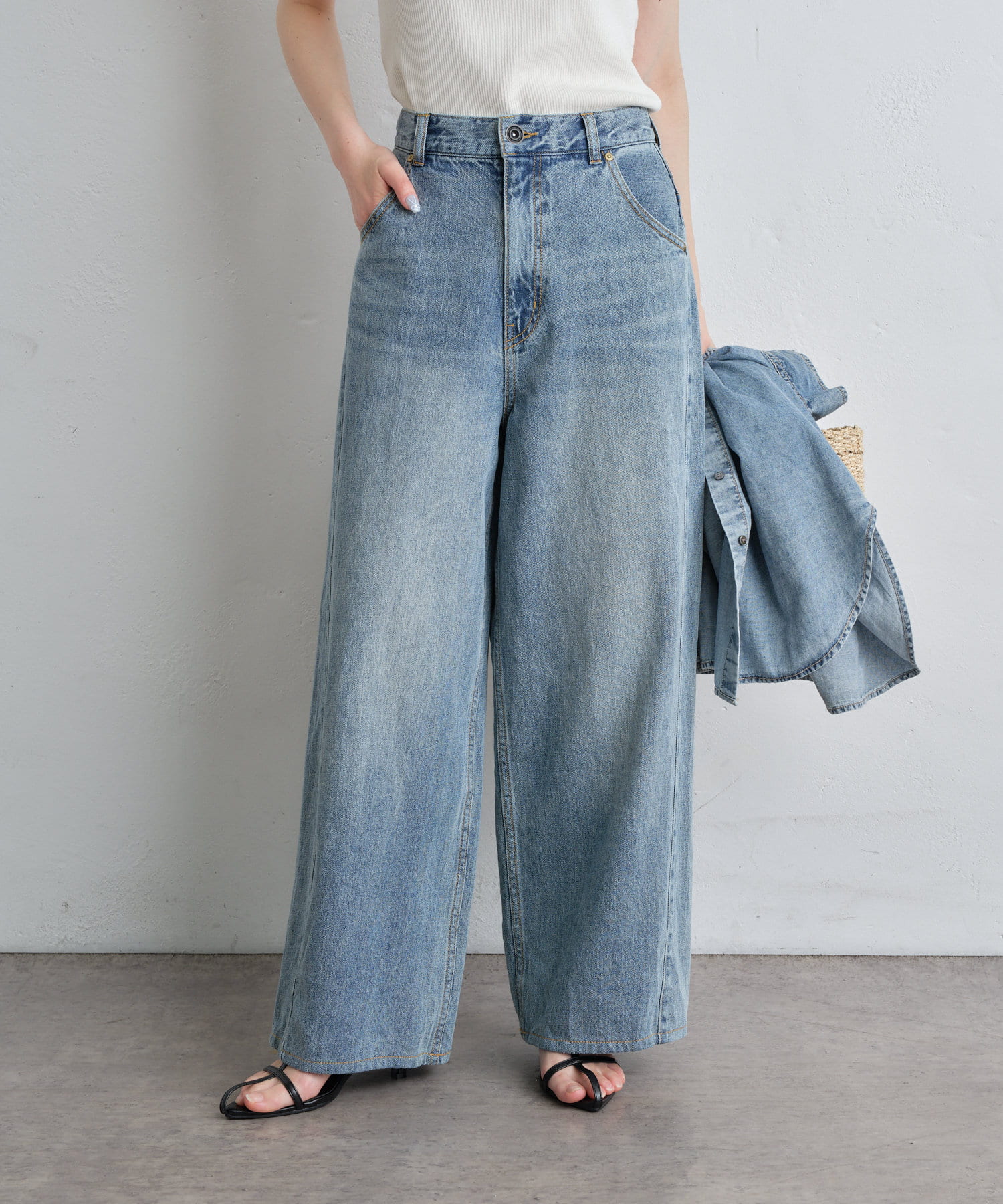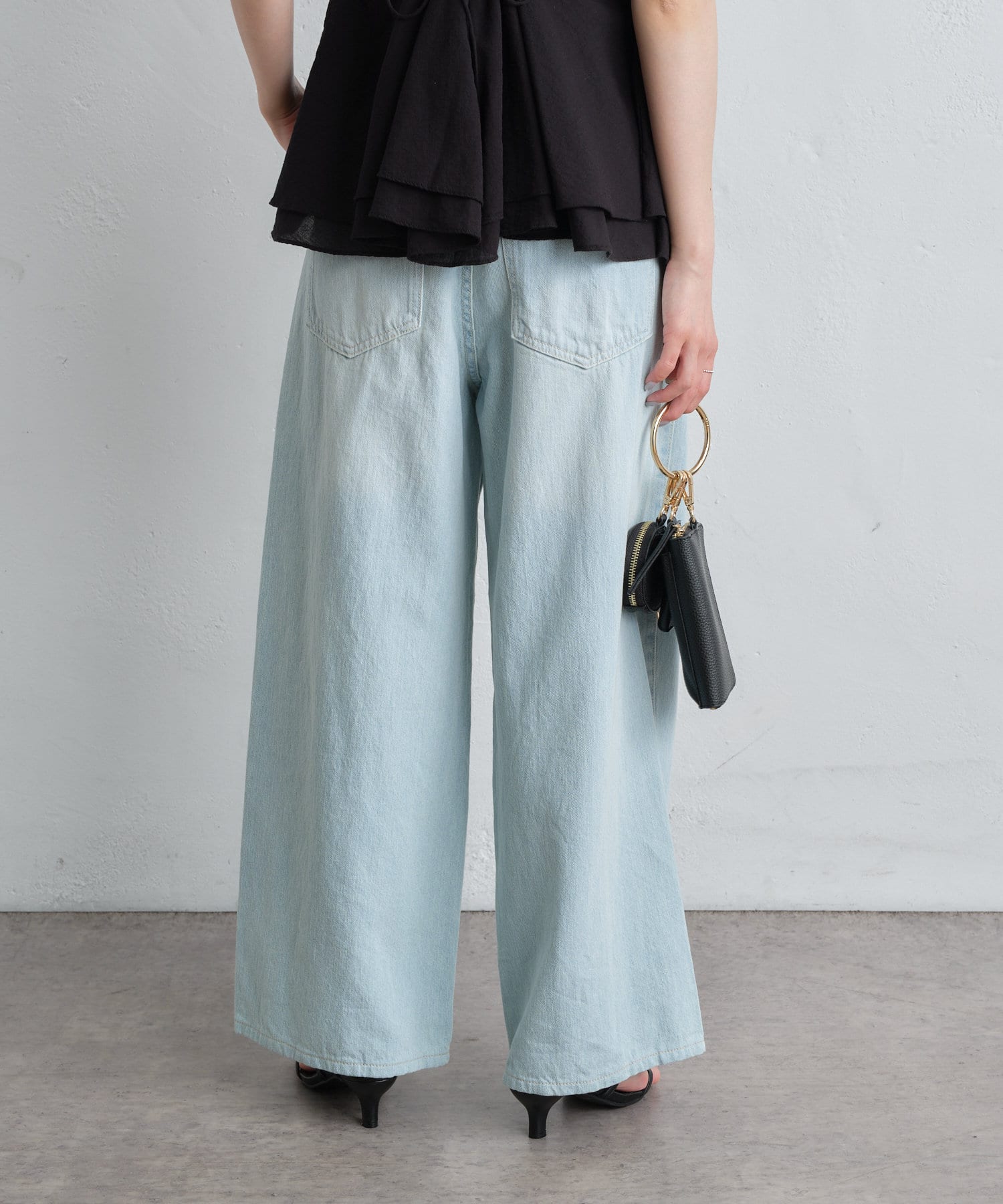 【2サイズ展開】ワイドバギーコットンリネンデニム