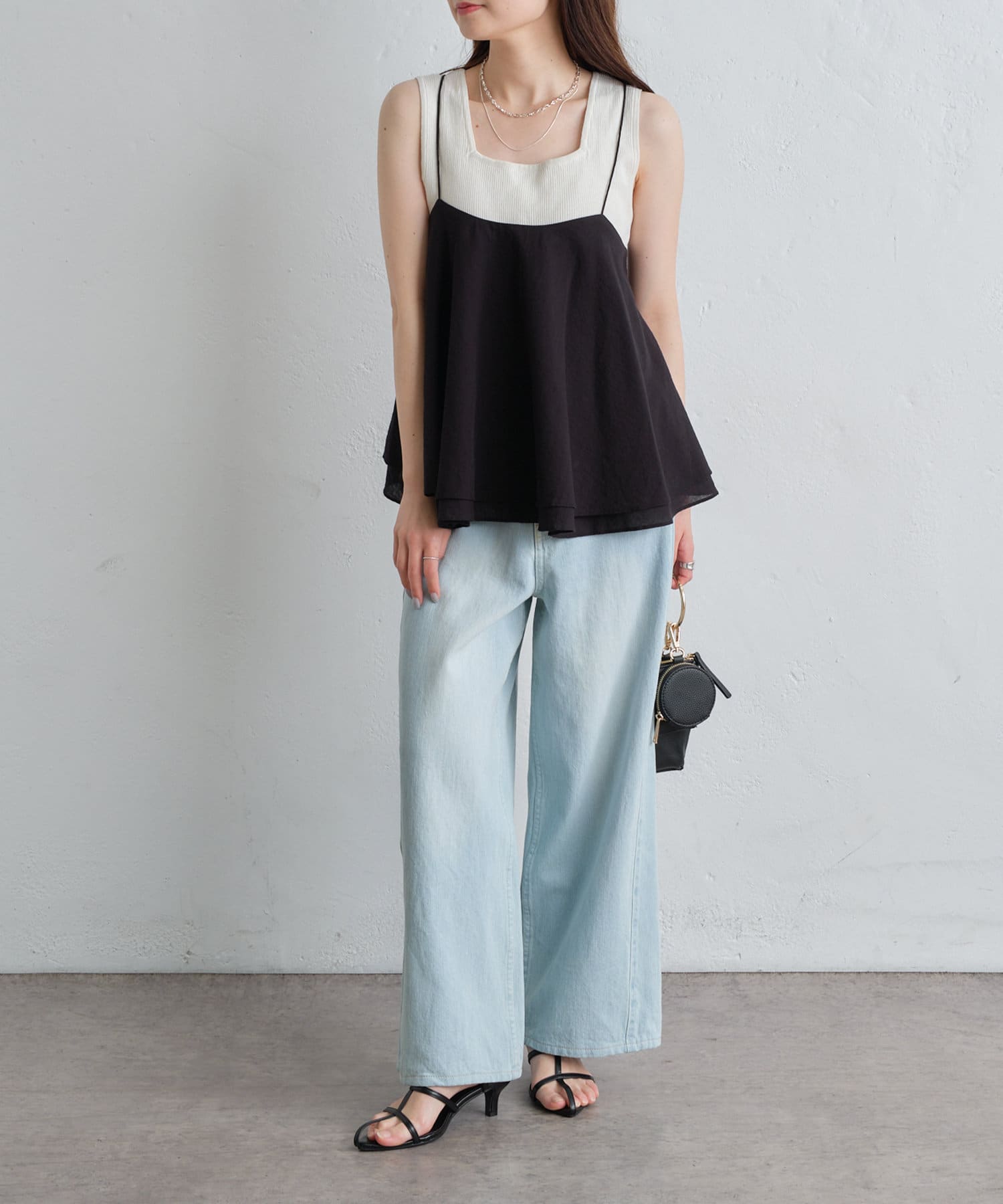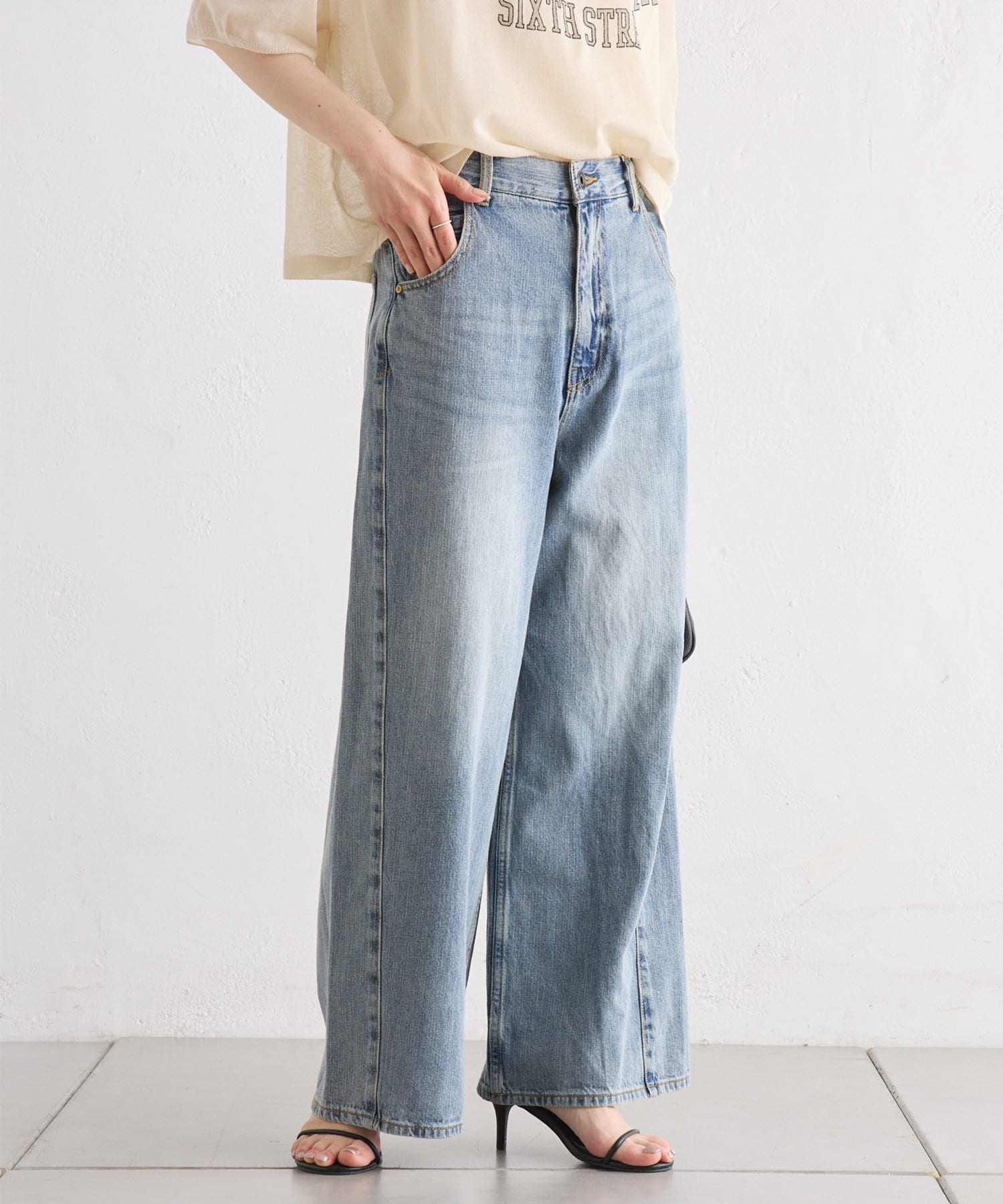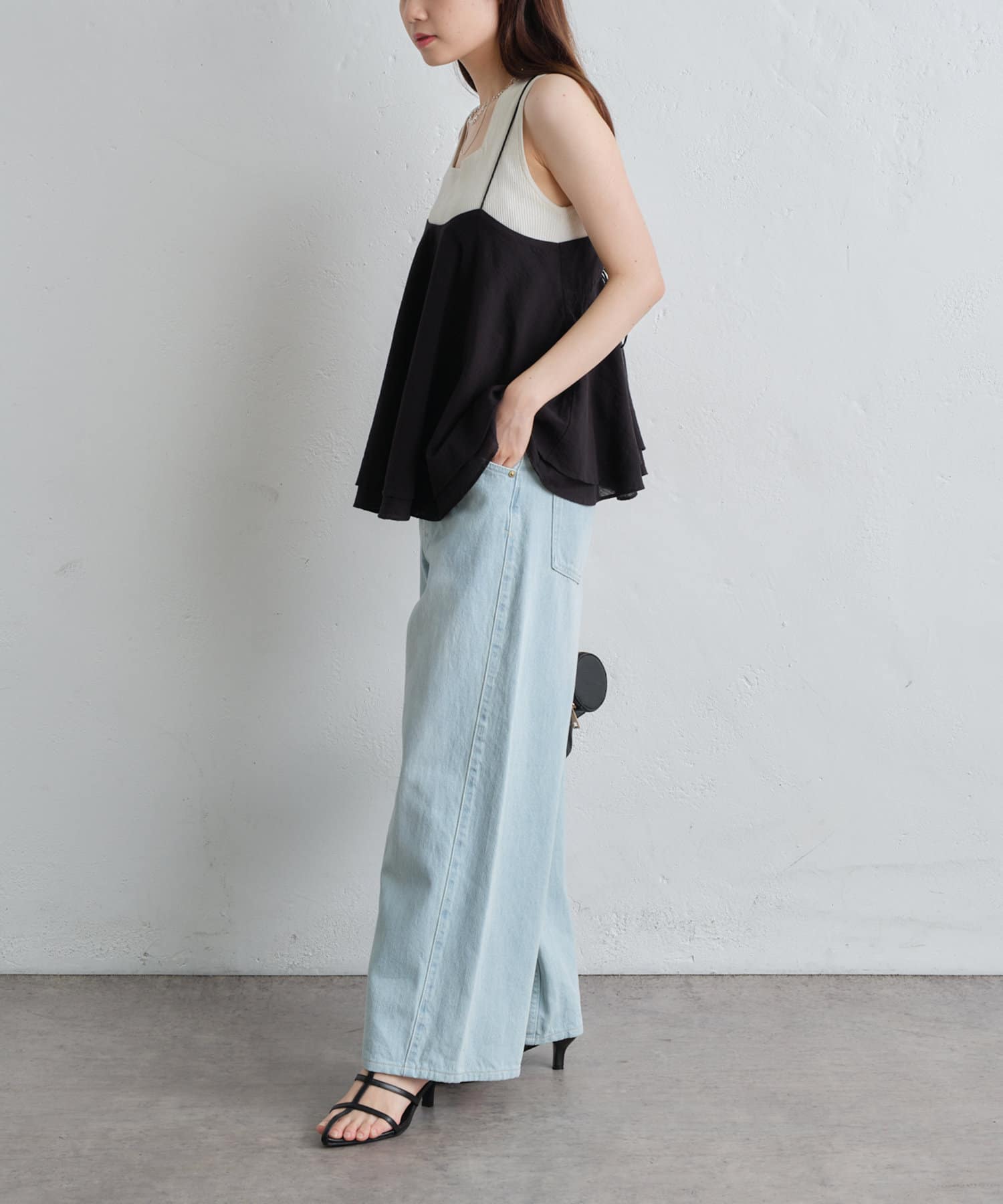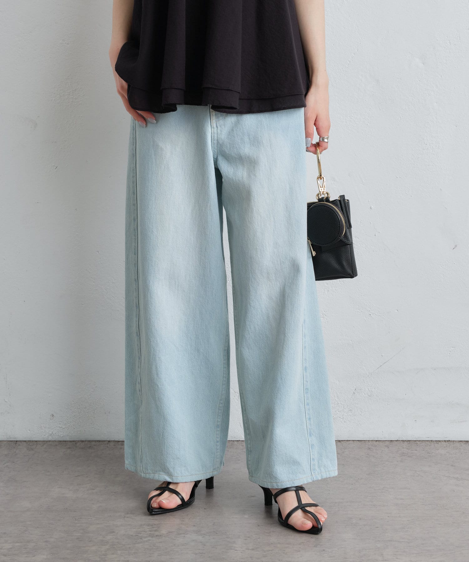 【2サイズ展開】ワイドバギーコットンリネンデニム