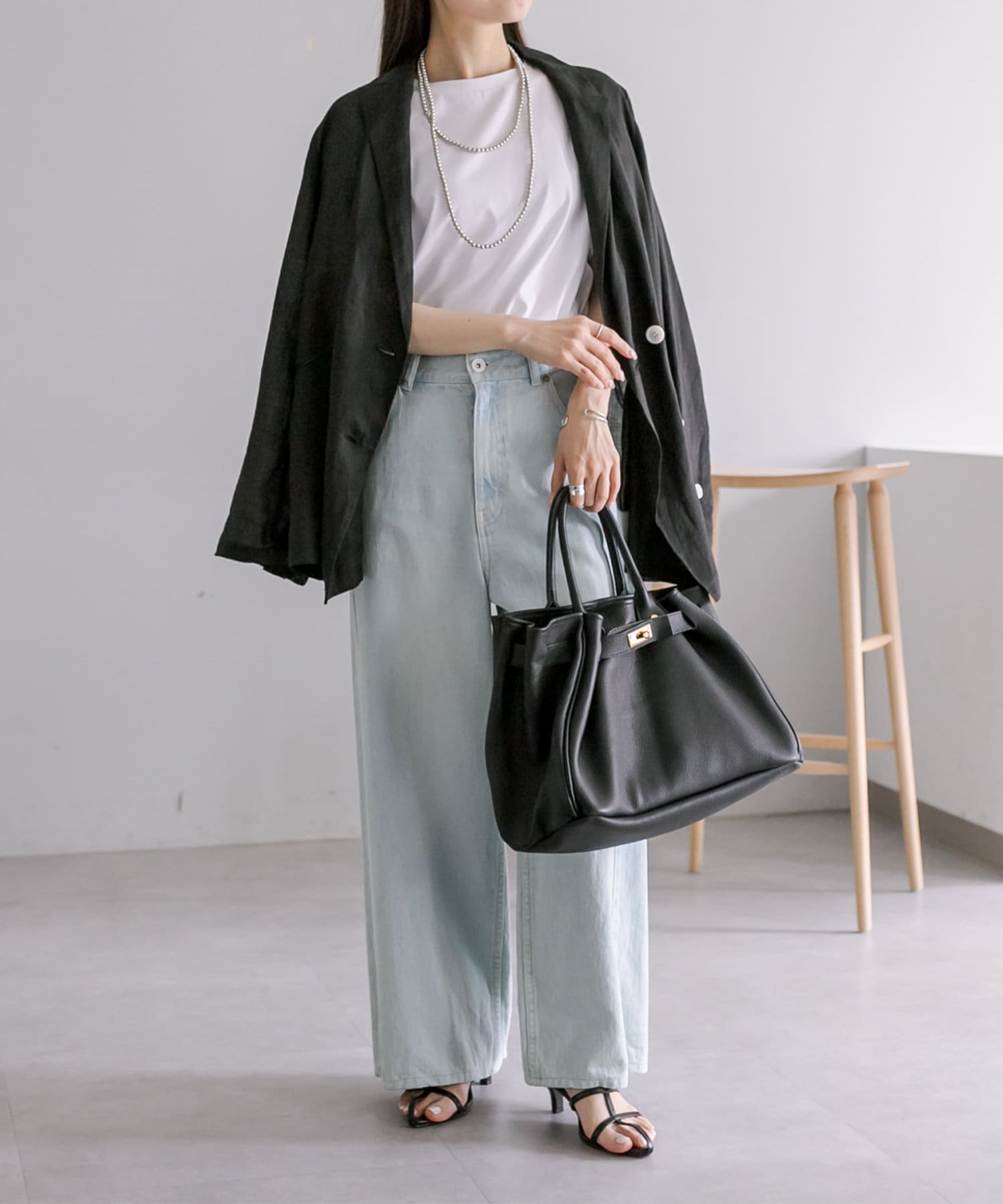 太めのストレートシルエットで大人カジュアルコーデを格上げしてくれます。