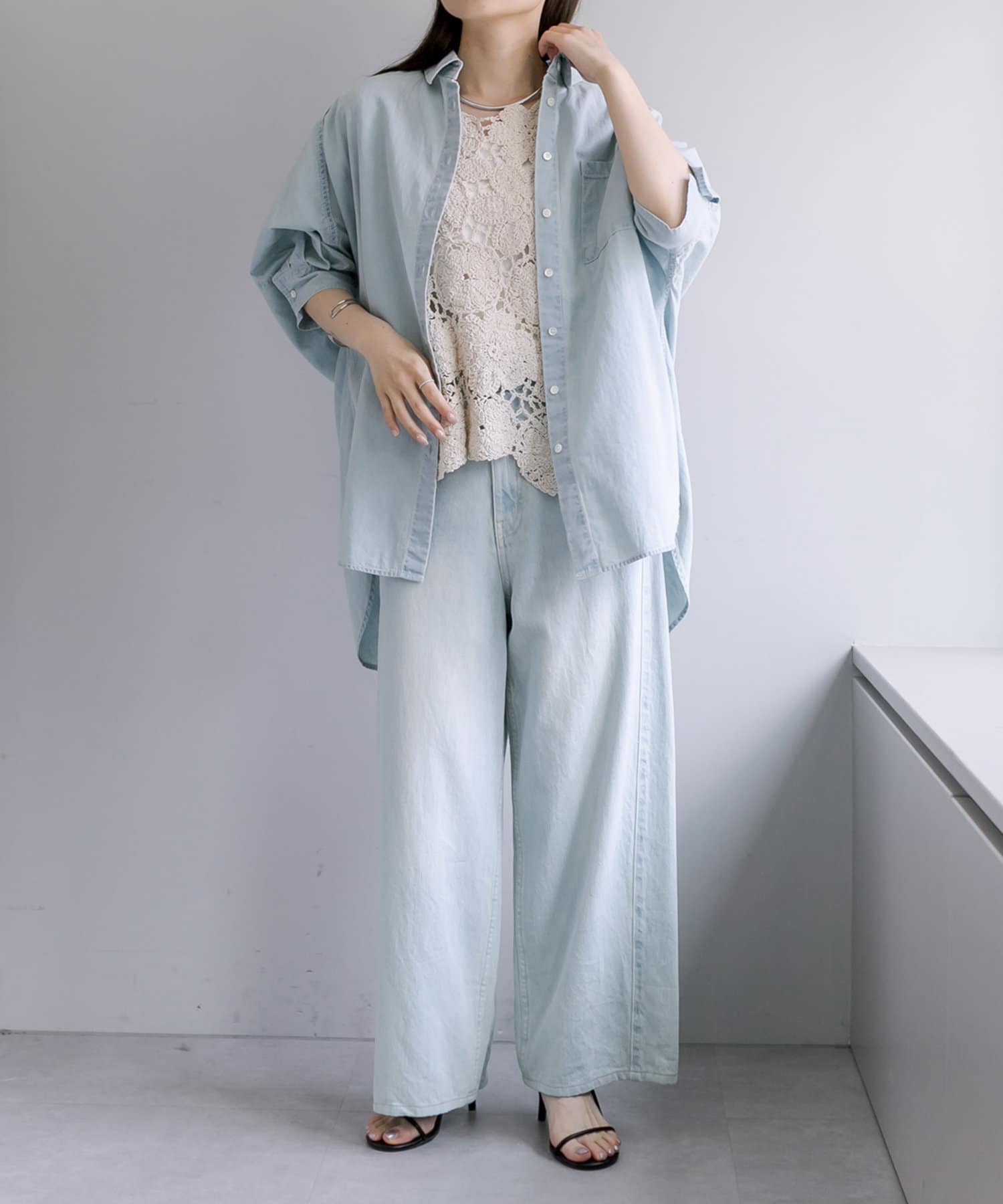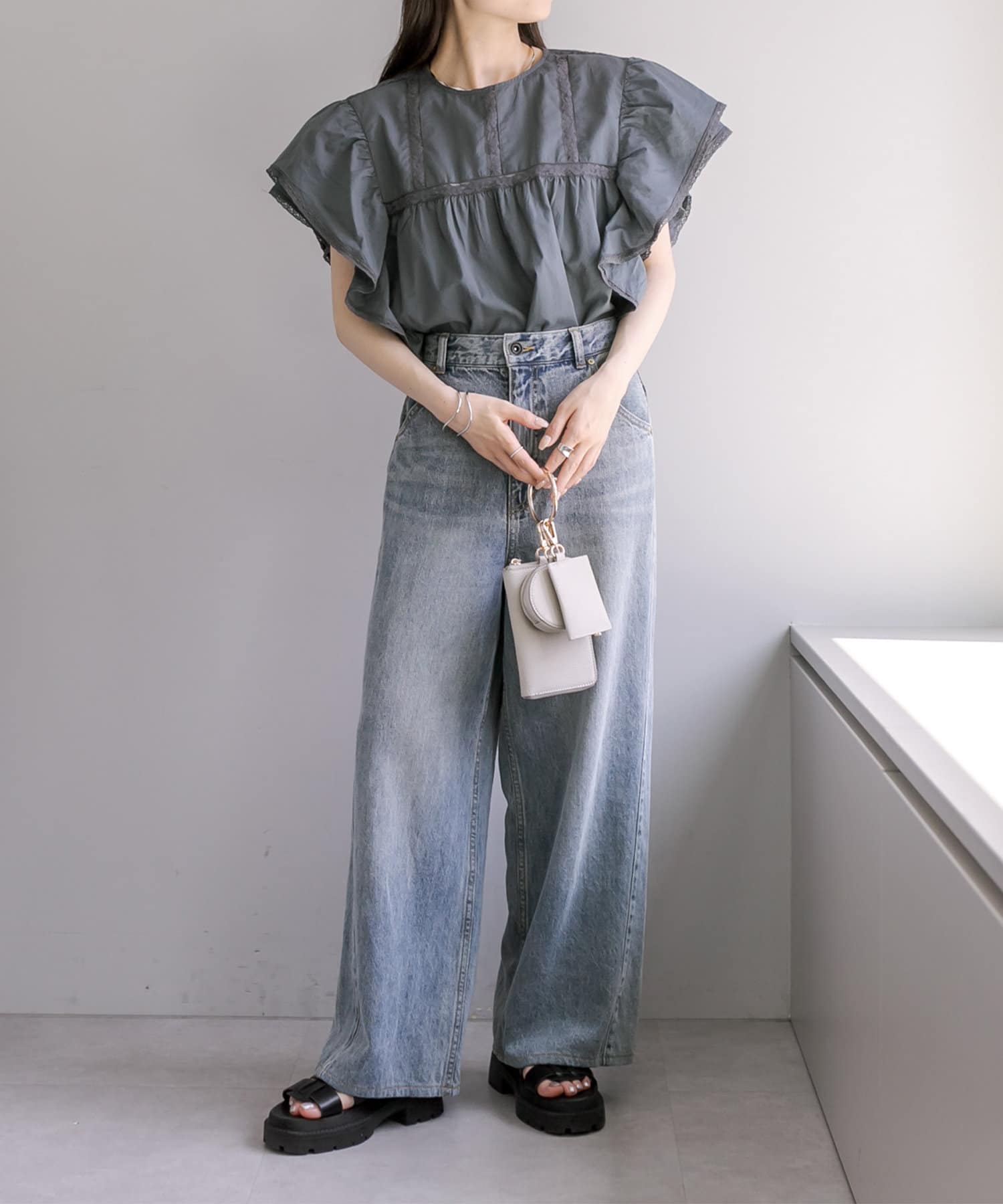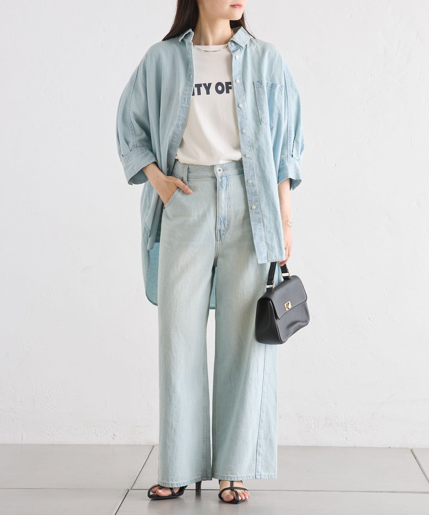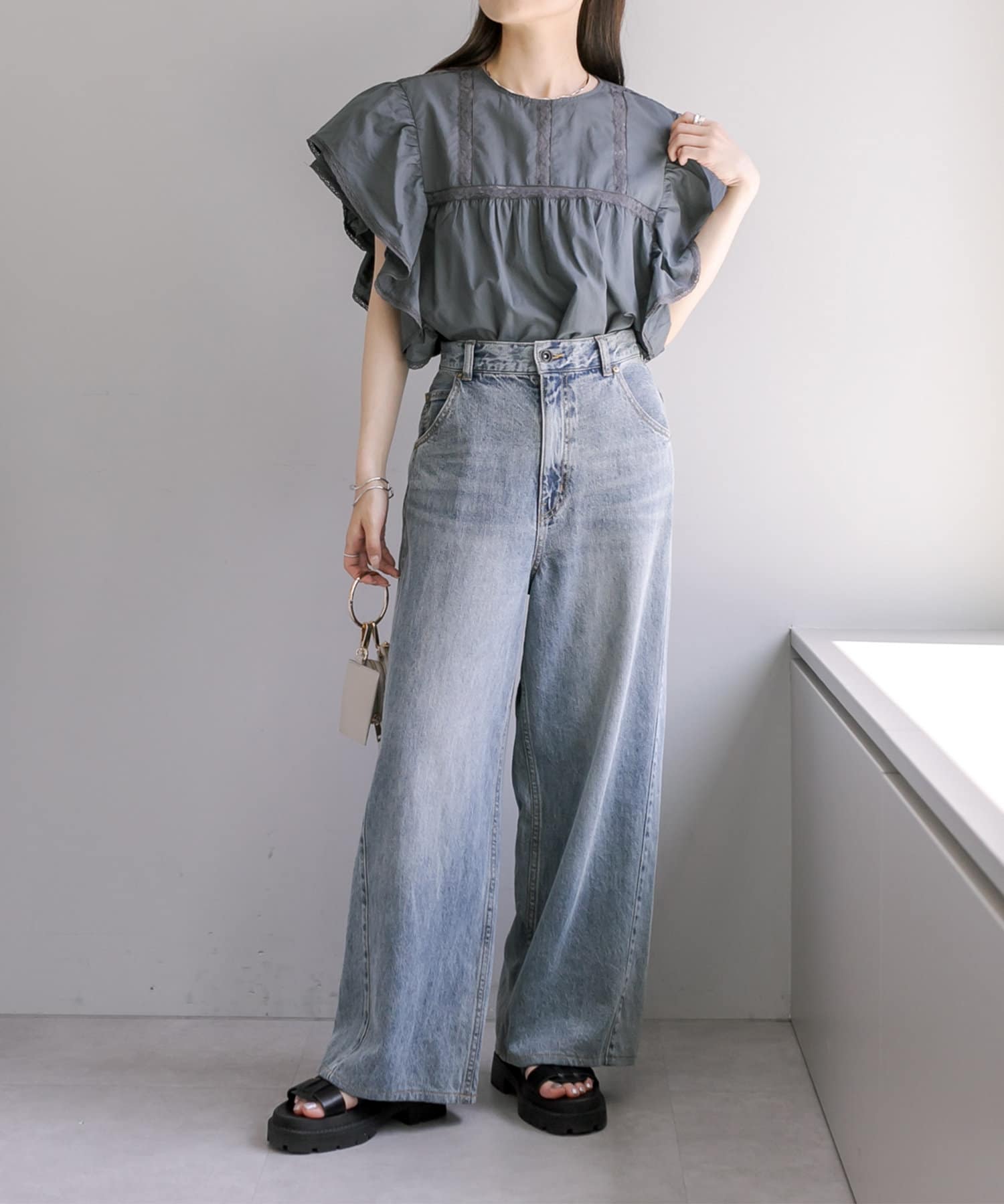シンプルなTシャツを合わせてデニムを主役にしたコーデから、フェミニンなブラウスやハーフジャケットなどきれいめアイテムの外しまで活躍する万能アイテムです。