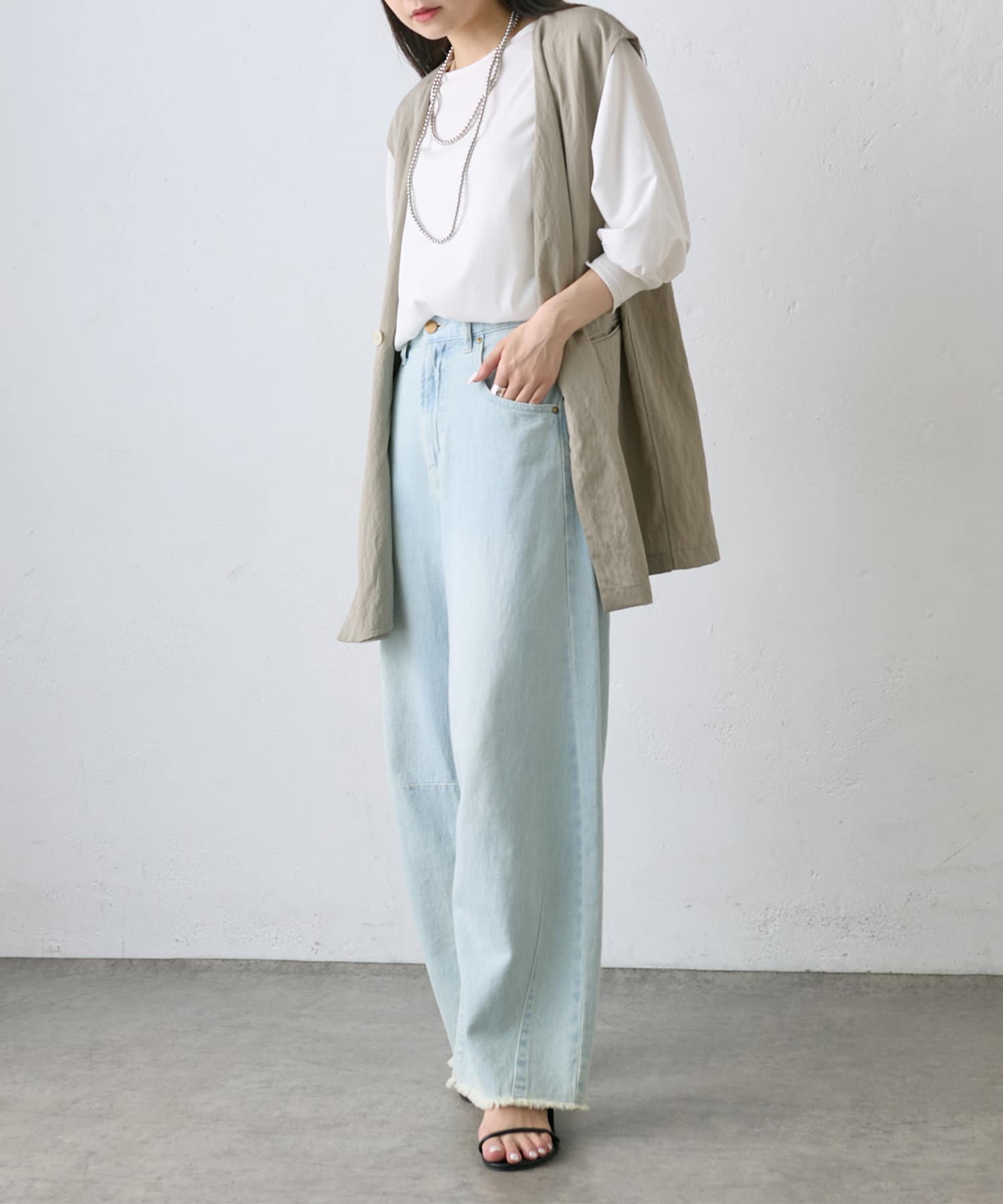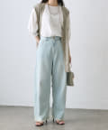 【2サイズ展開】カーブシルエットコットンリネンデニムパンツ