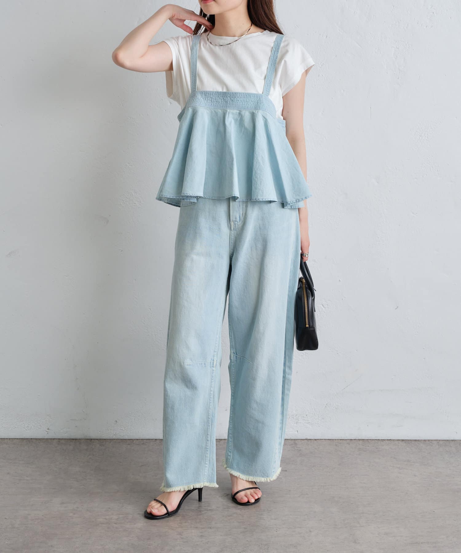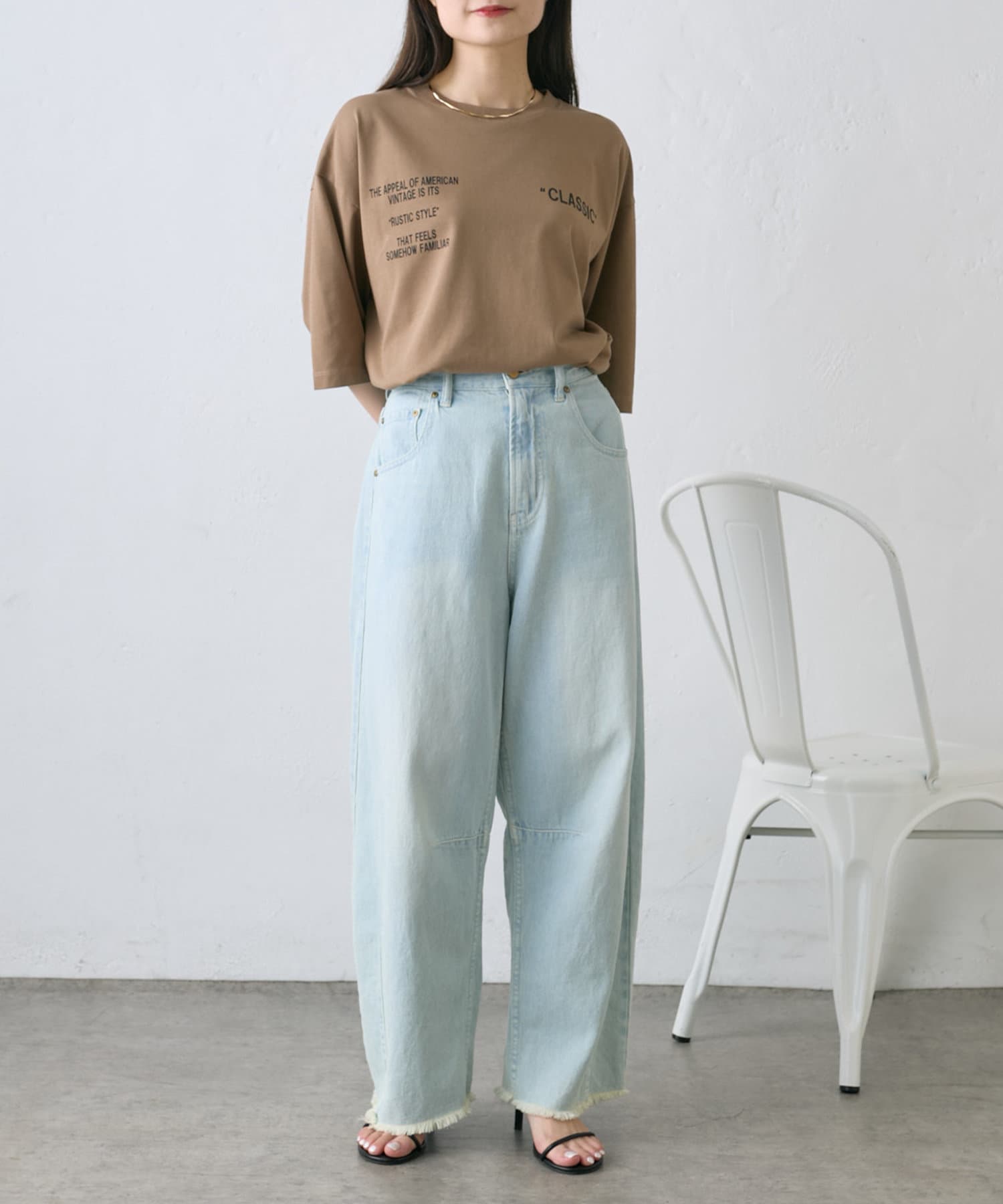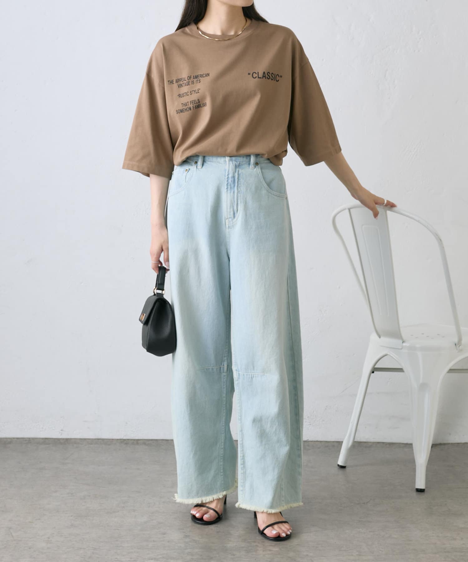 Tシャツをインしたデニムが主役のコーディネートから、ブラウスやハーフジャケットなどきれいめなアイテムと合わせたミックスコーデもおすすめ。