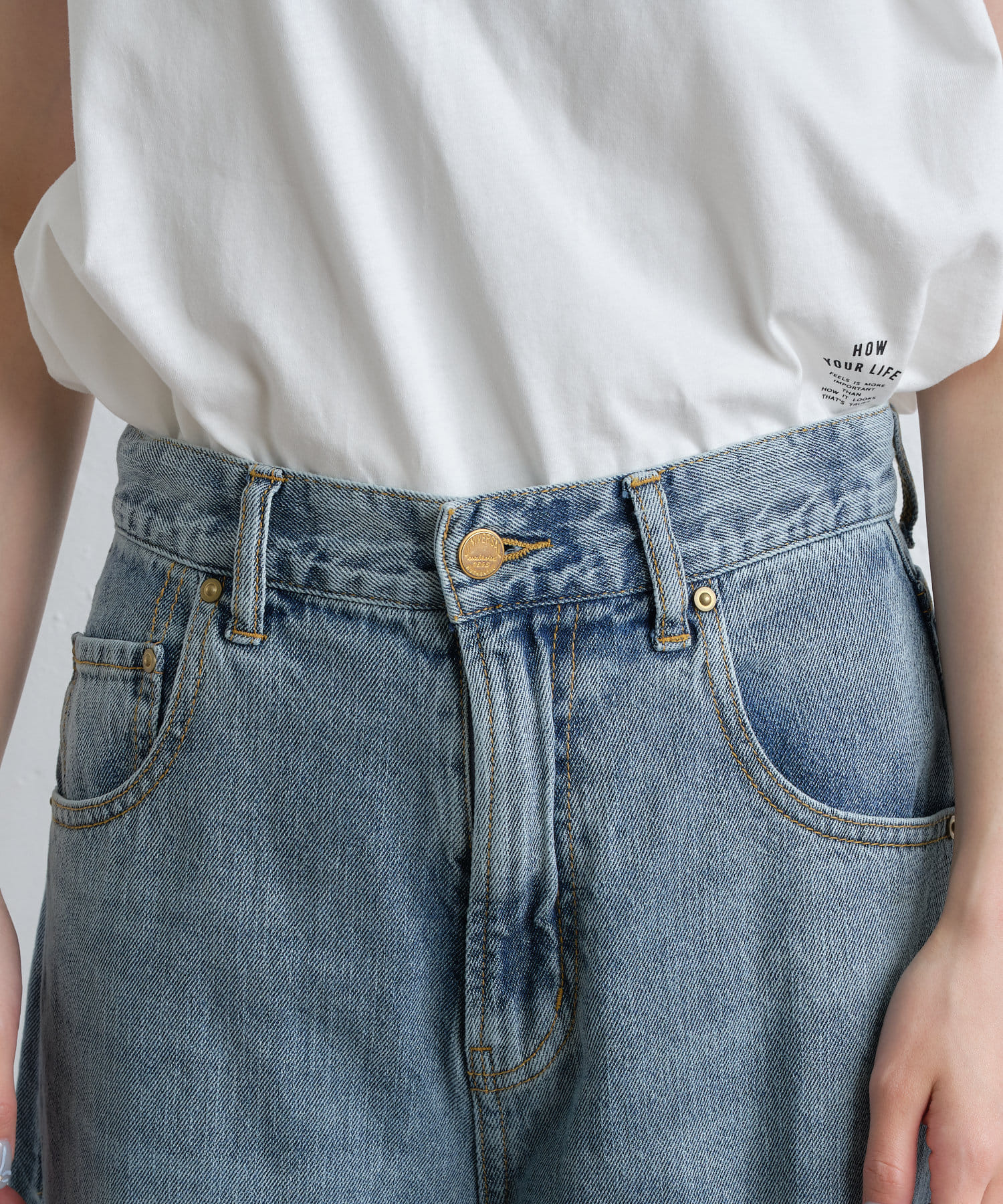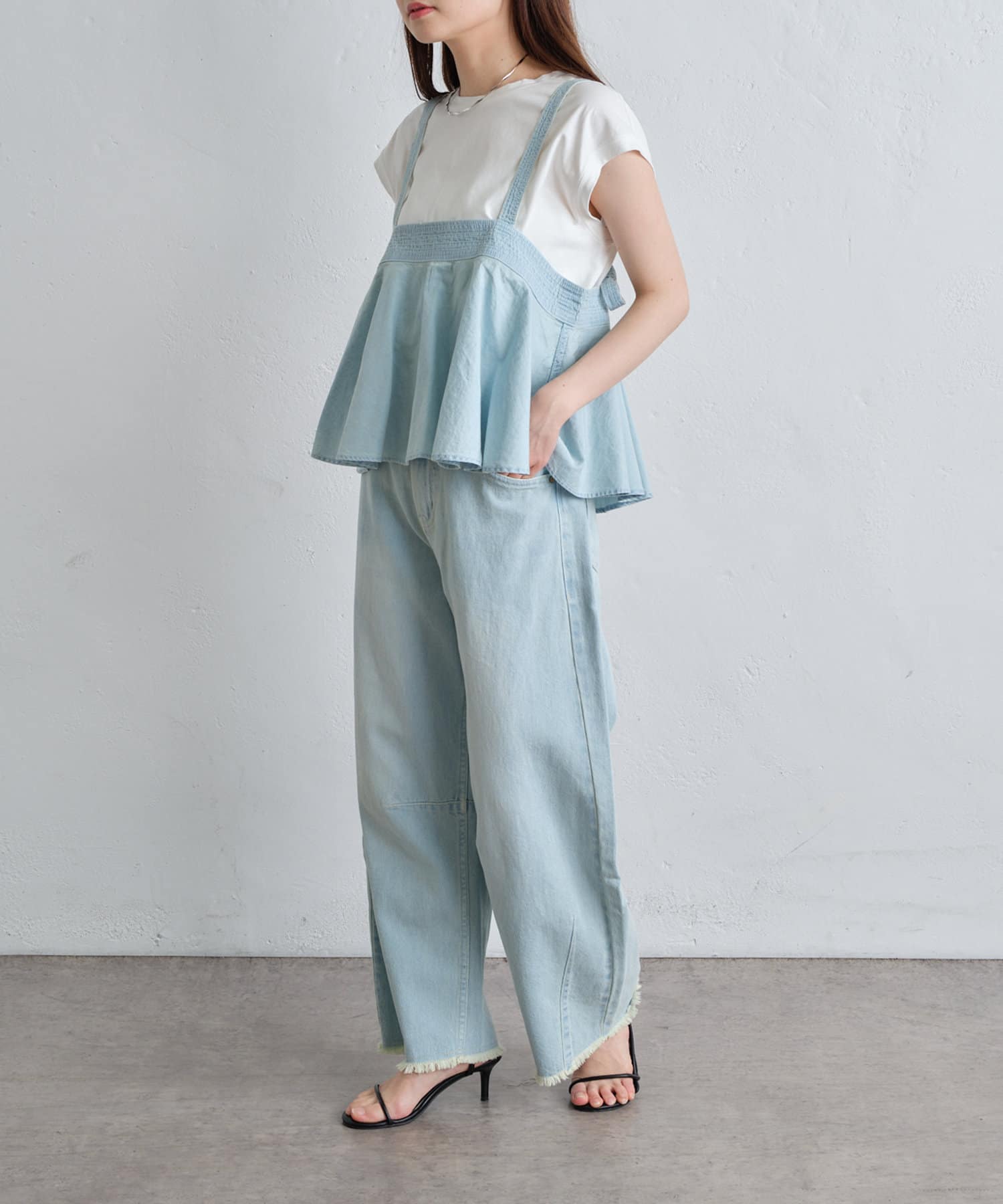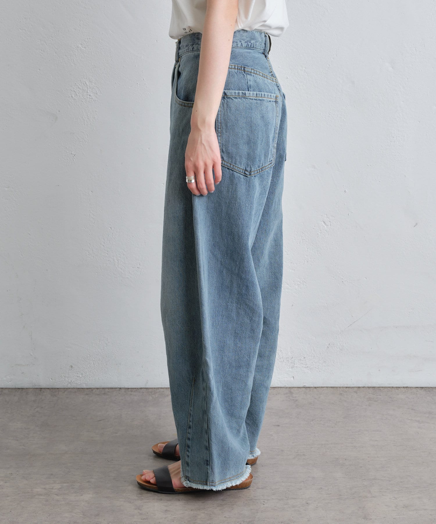 通常のデニムと比べて薄手で柔らかく、肌離れも良いので、暑い時期にも涼しくお召しいただけます。