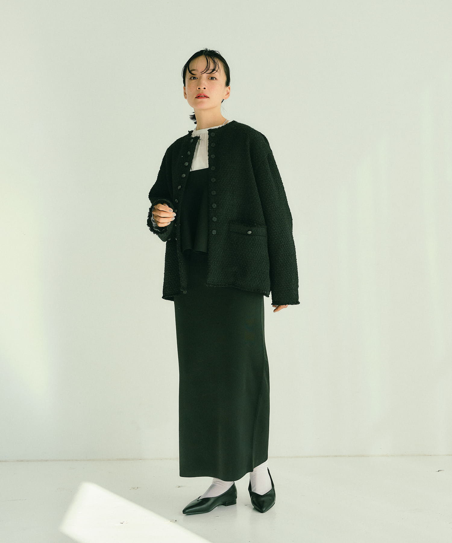 ほのかにハリのある上品な素材感で、オフィスや卒入学式のオケージョンなど幅広いシーンに対応する汎用性の高い1着に仕上げました。