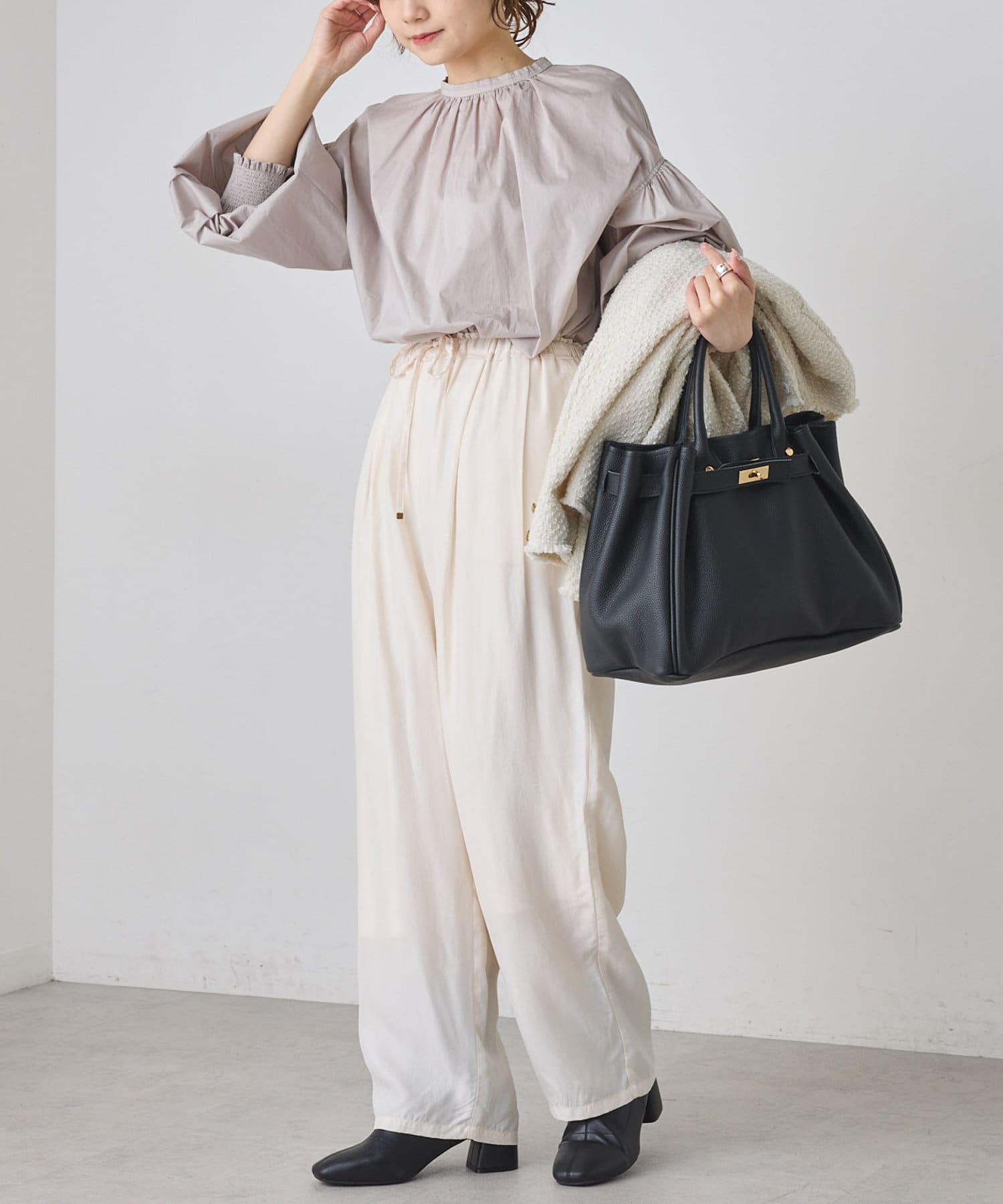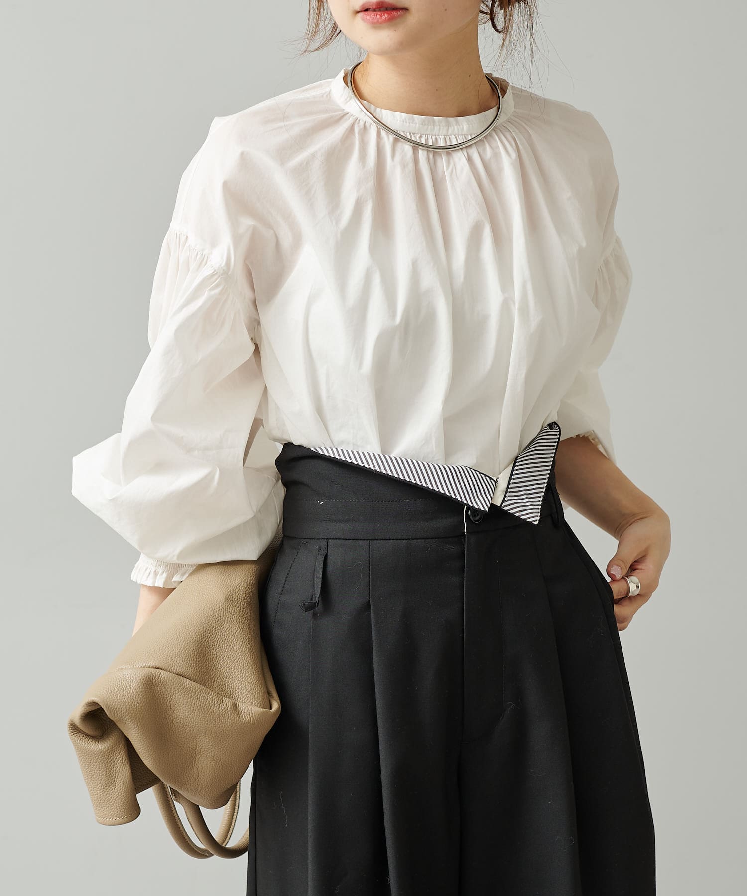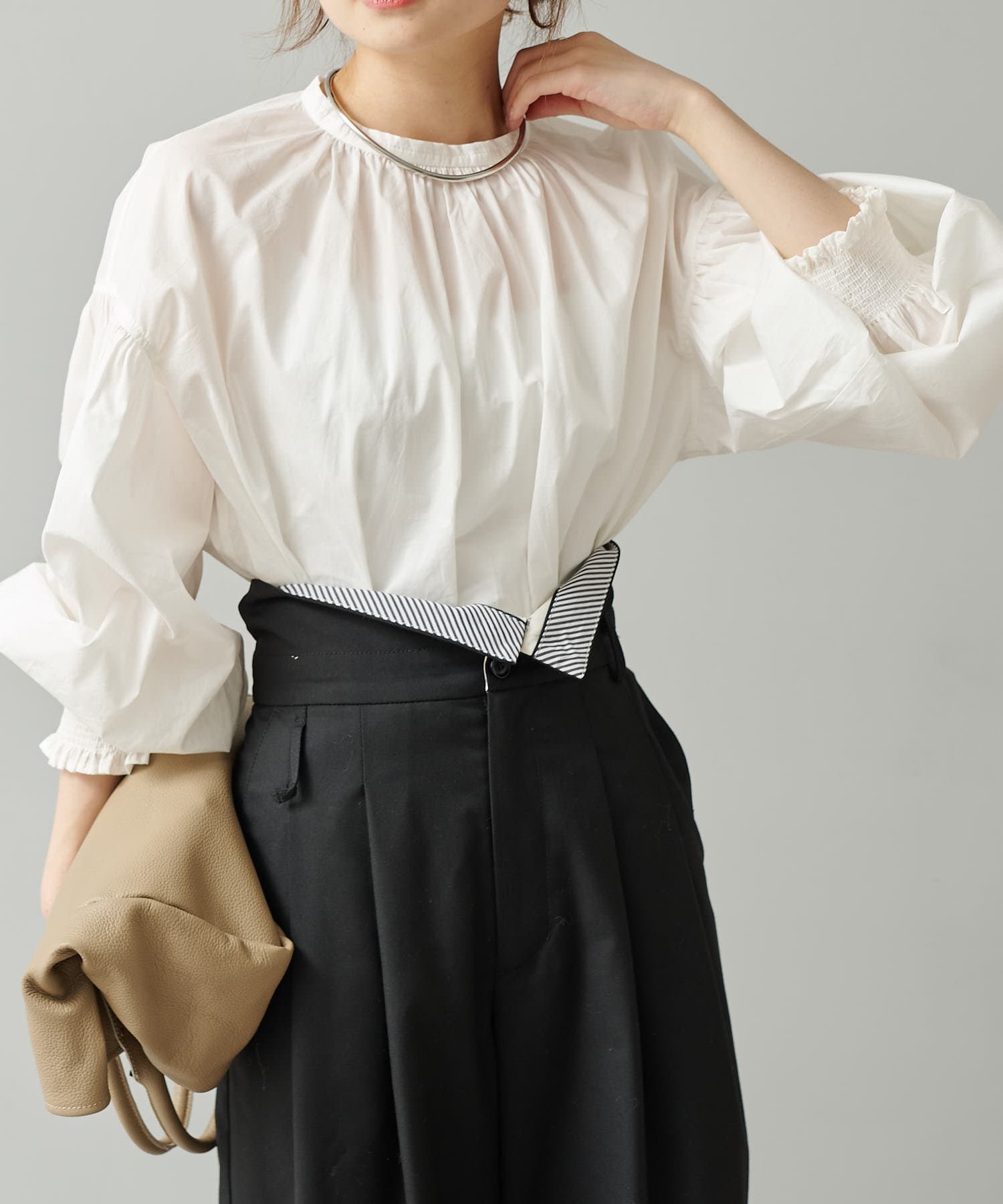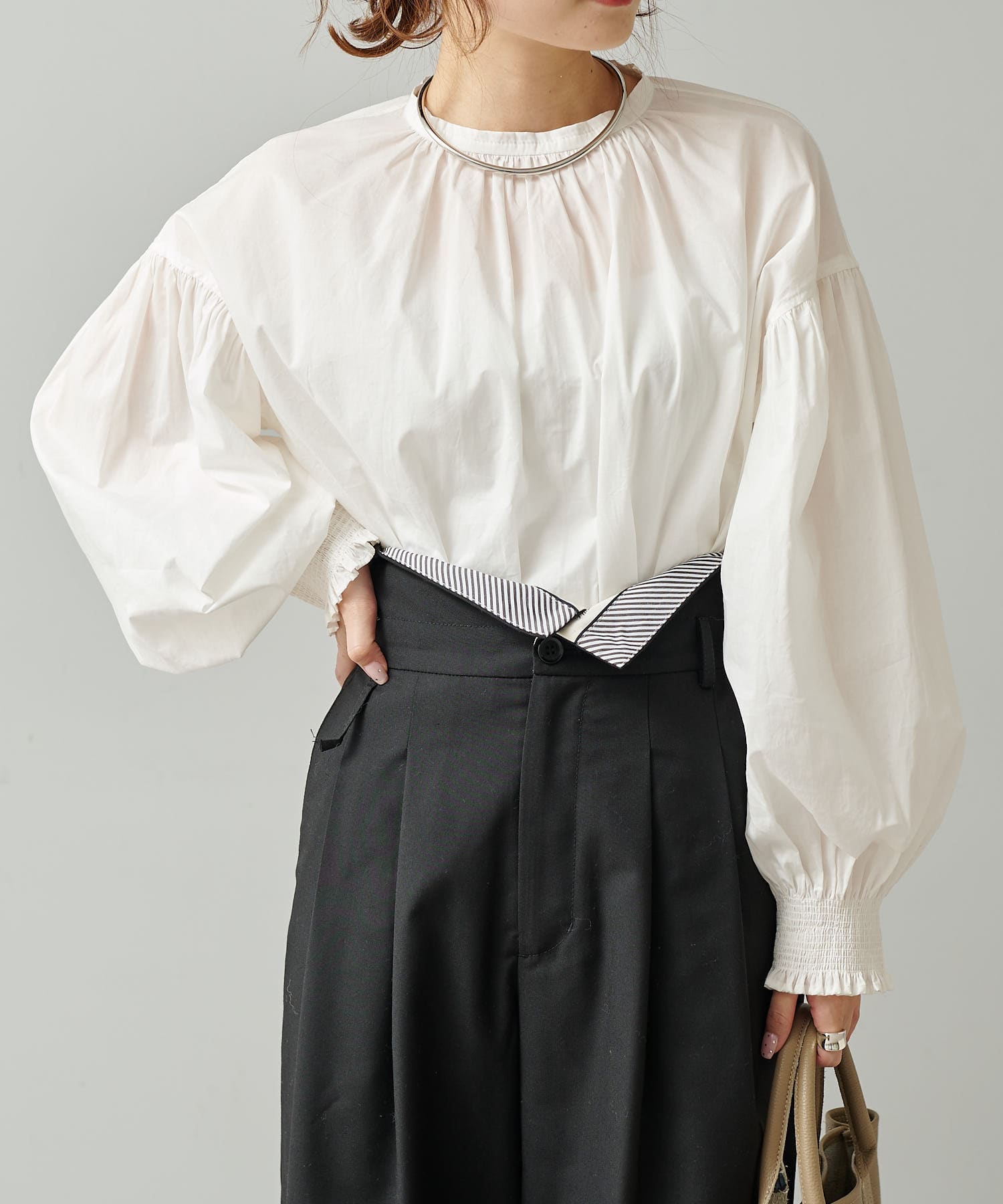 柔らかさとほのかなハリを兼ね備えたブラウス。