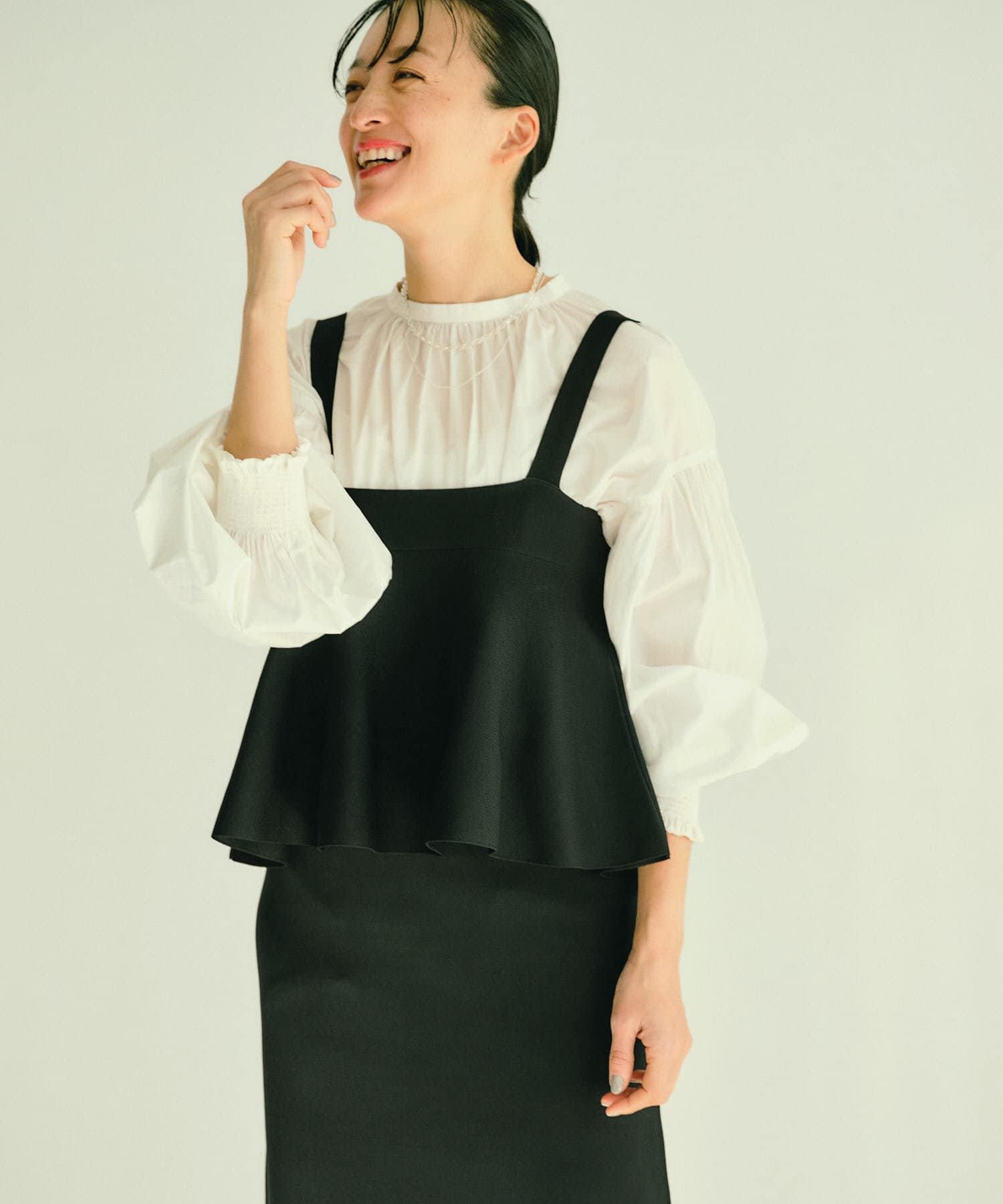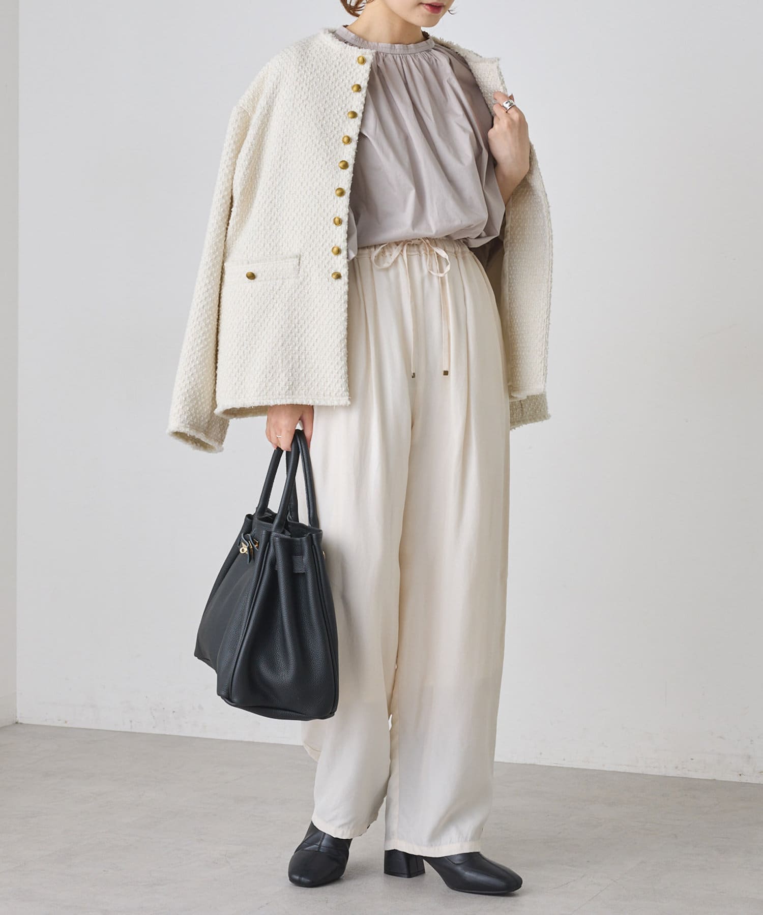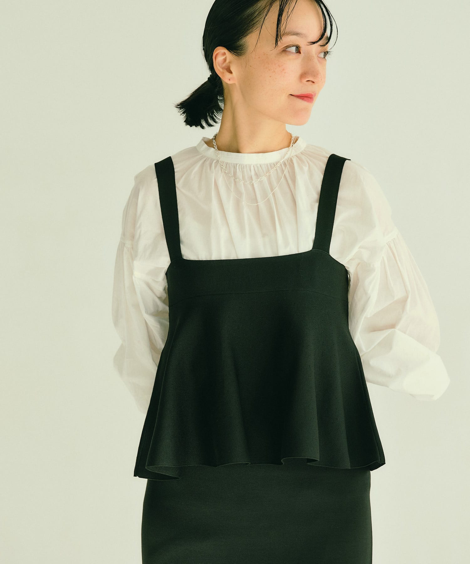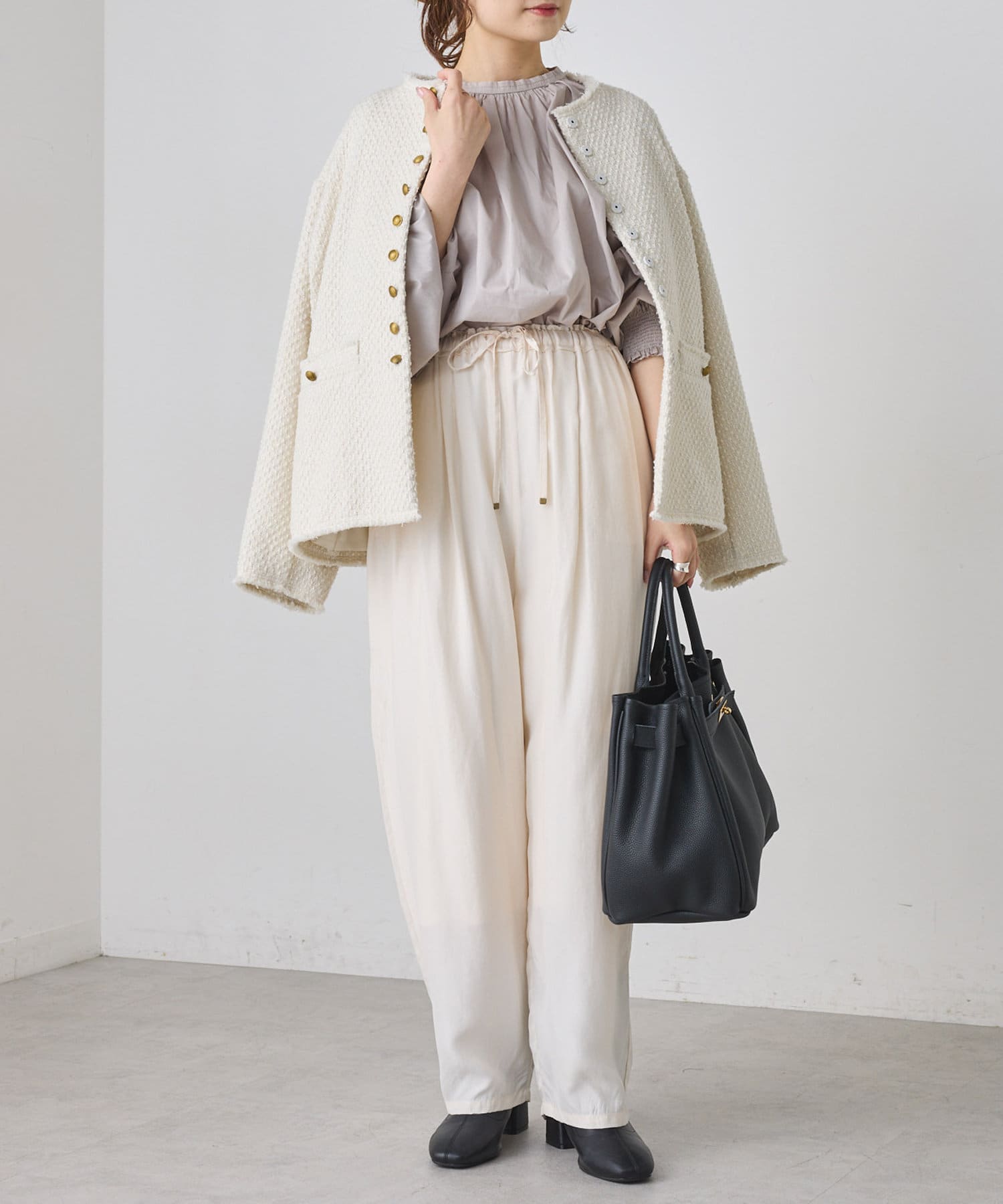 柔らかさとほのかなハリを兼ね備えたブラウス。