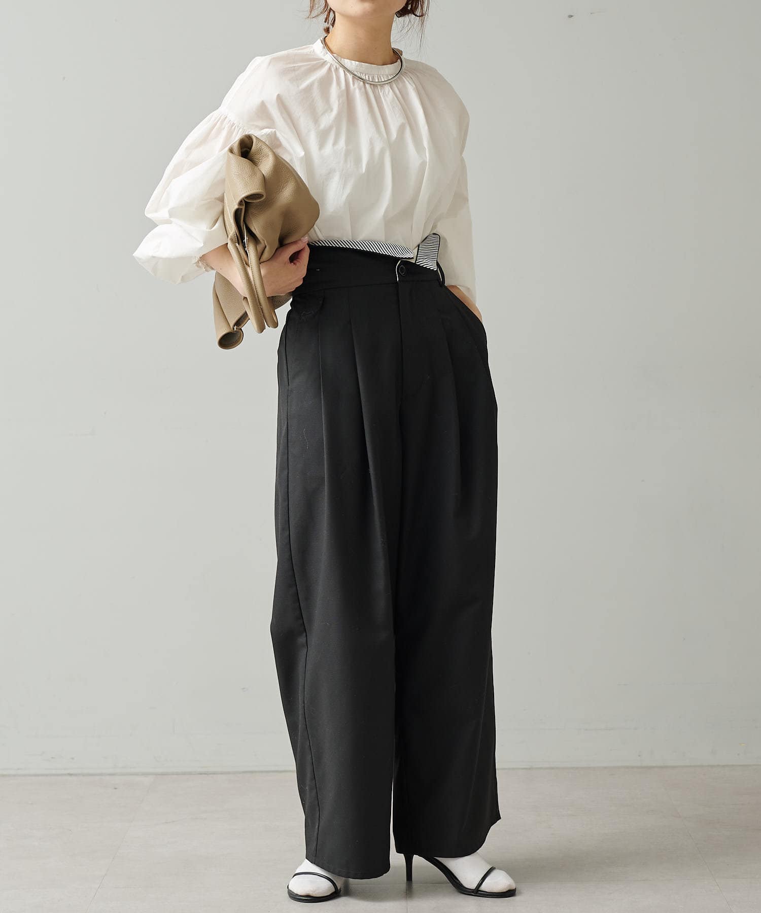袖ボリュームシャーリングブラウス