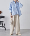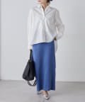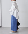 一枚で存在感のあるブラウスなので、ナロースカートやスラックスなど、シンプルなボトムスと好相性。