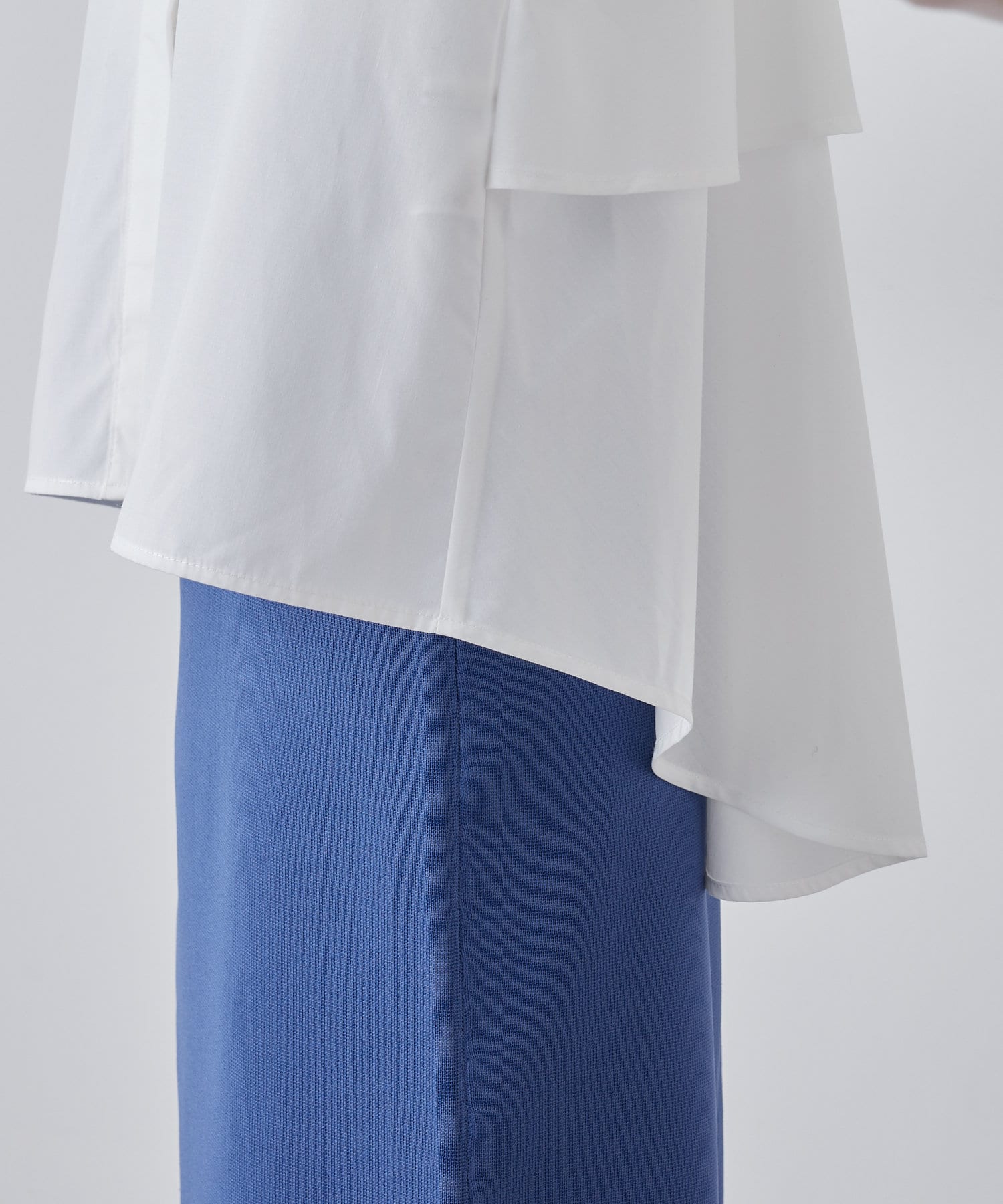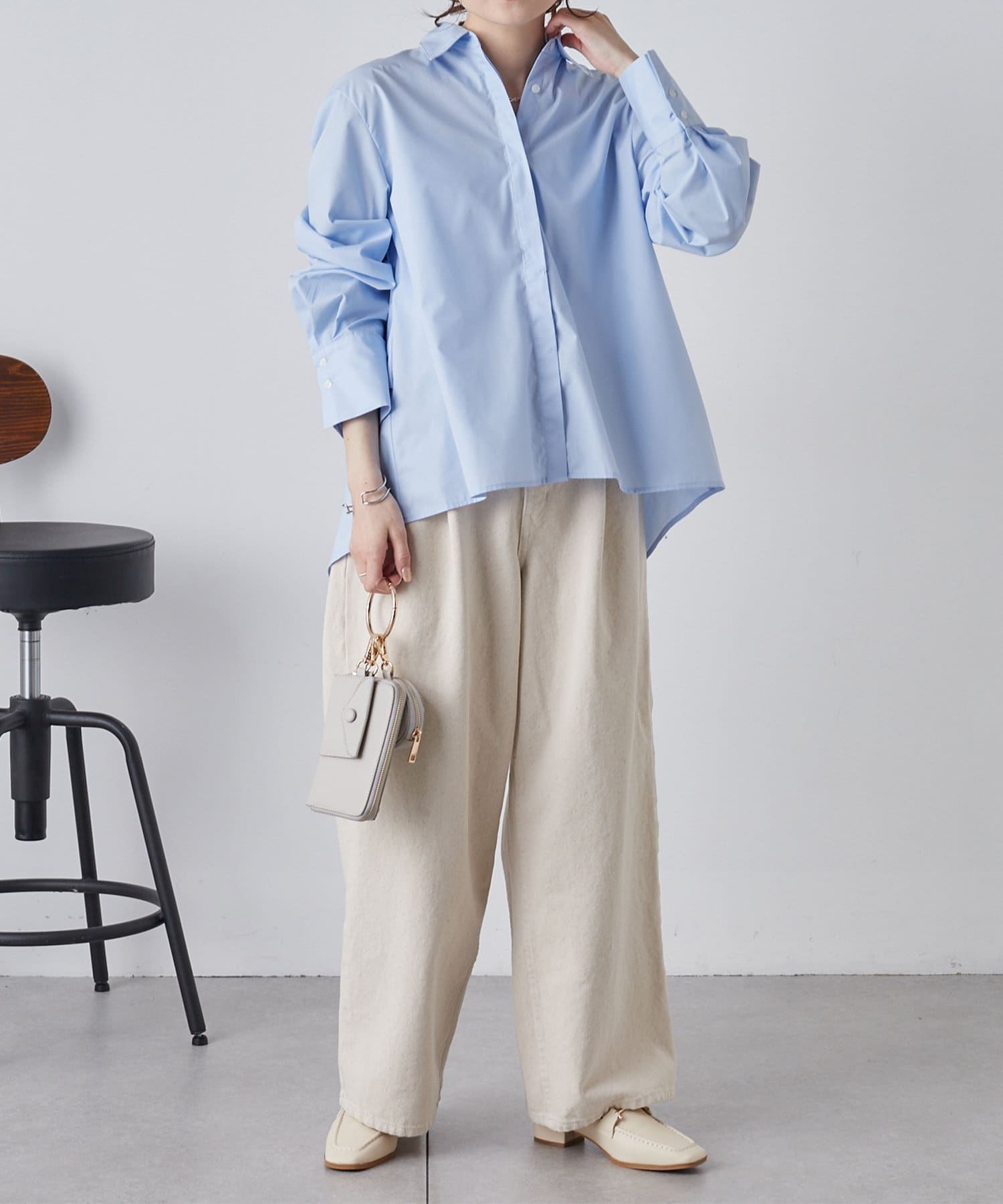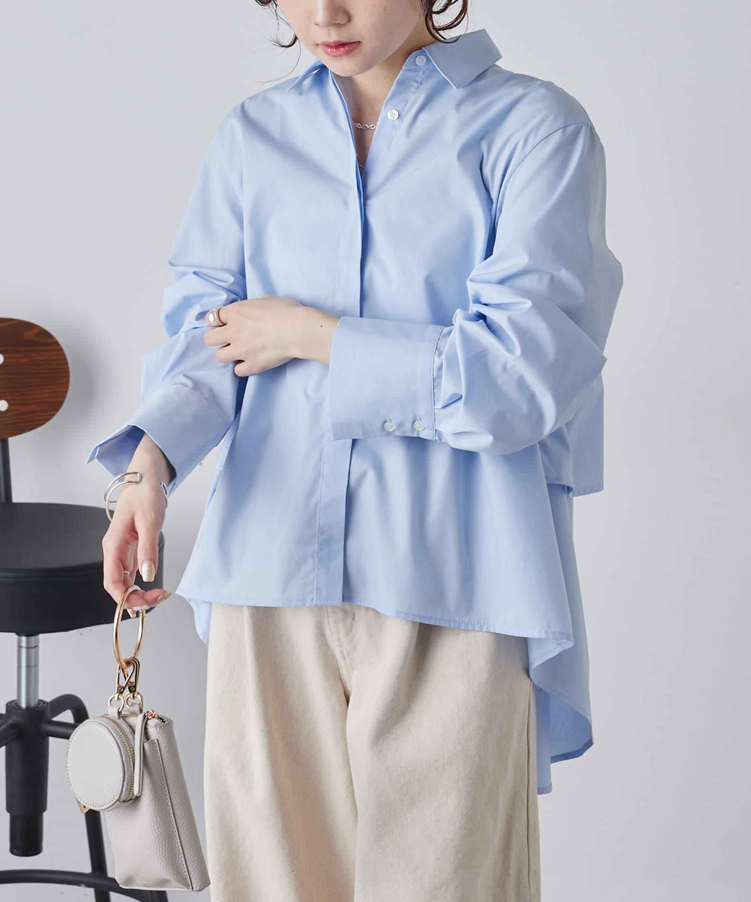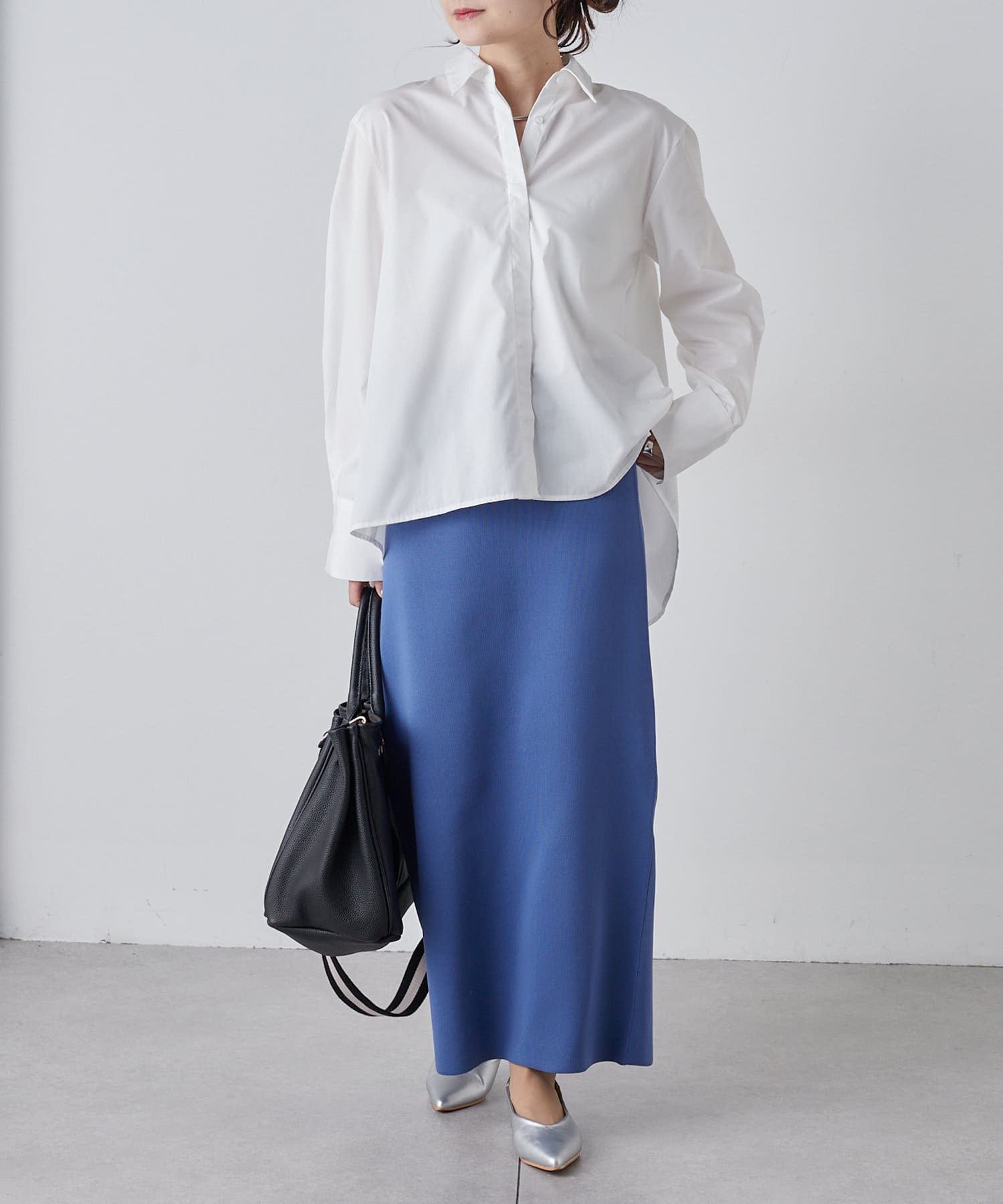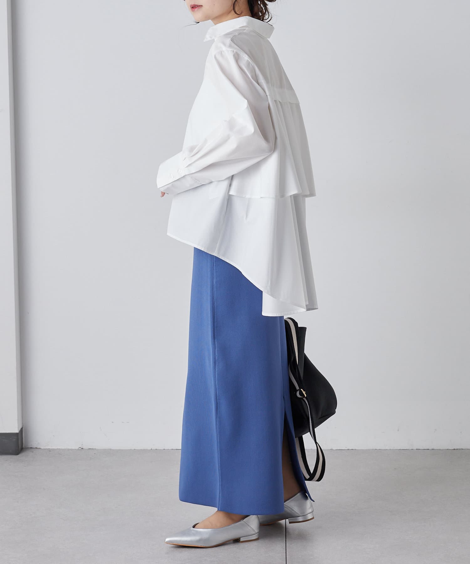 前後で異なる着丈はボトムとのバランスが良く、ヒップラインまでカバーしてくれます。