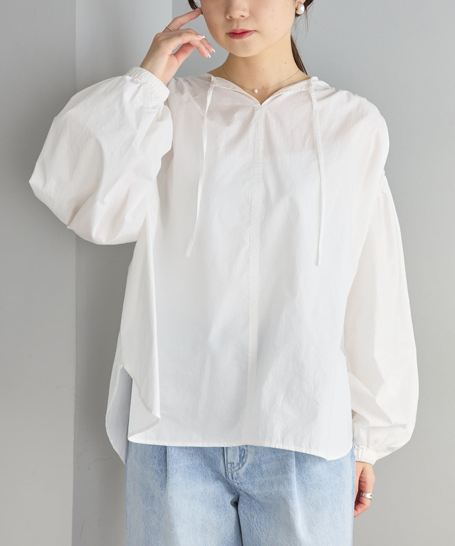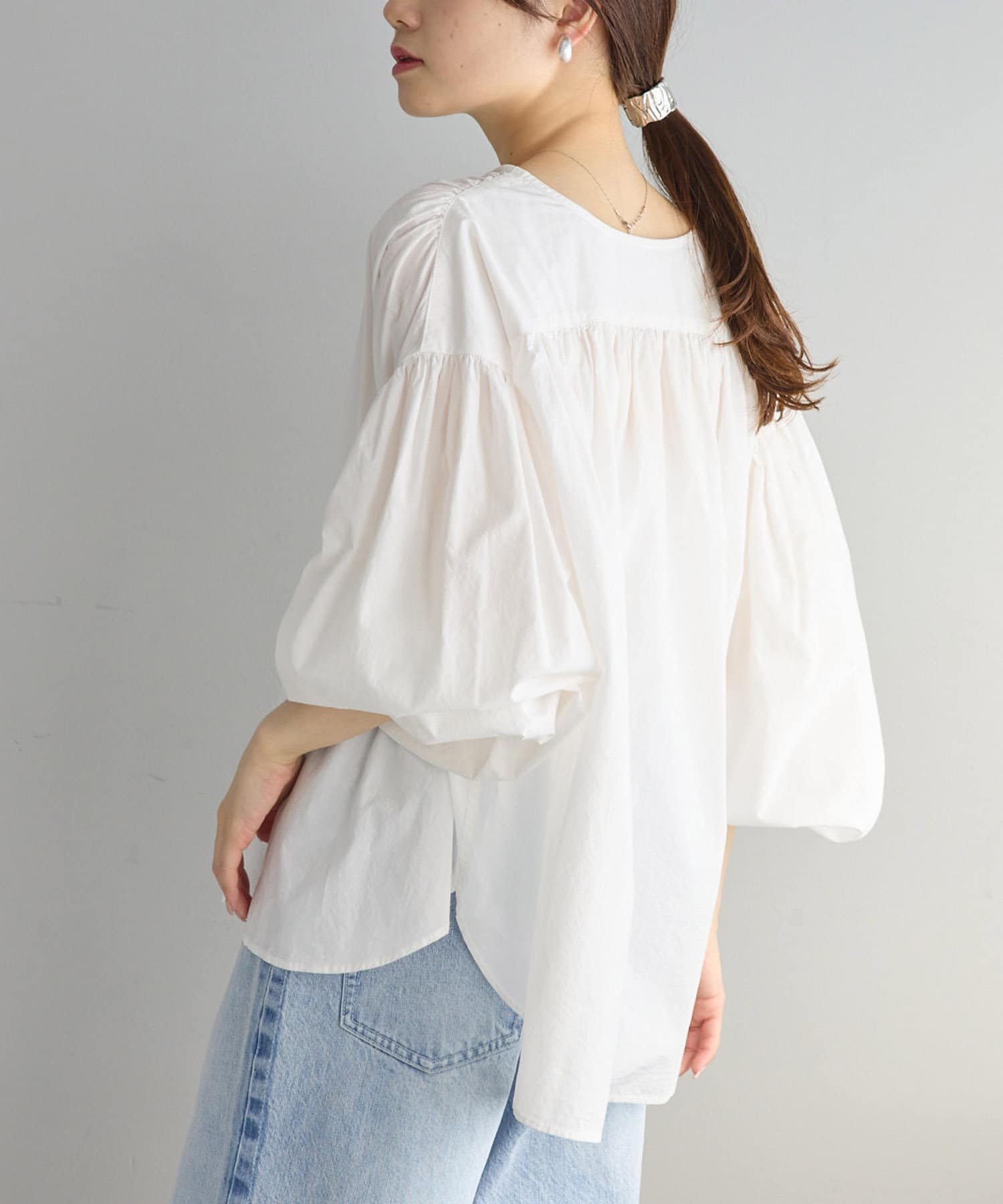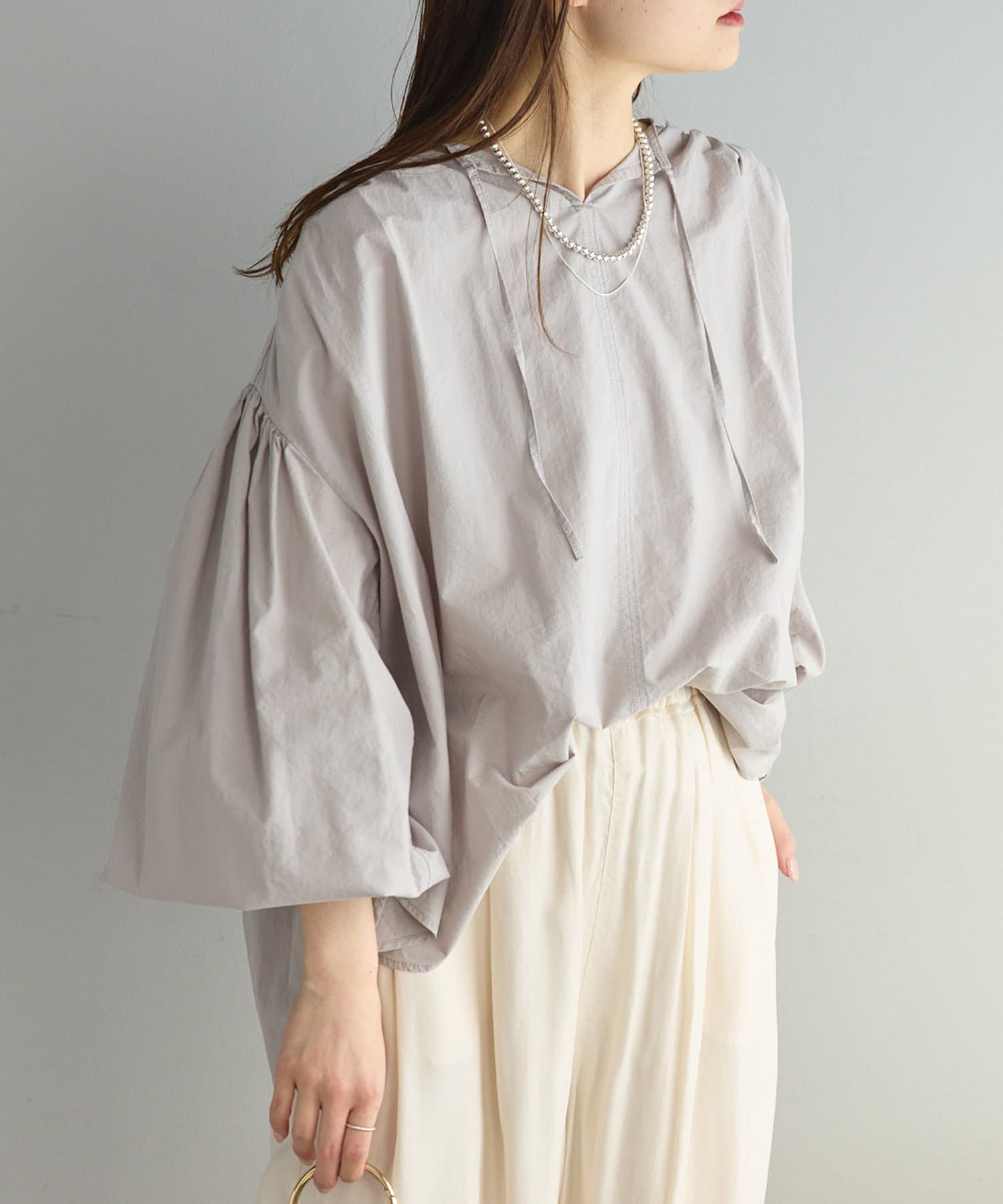 袖口はゴムの仕様。手首が見えるように少しまくると、ふんわりと女性らしいシルエットになり、より着映えします。