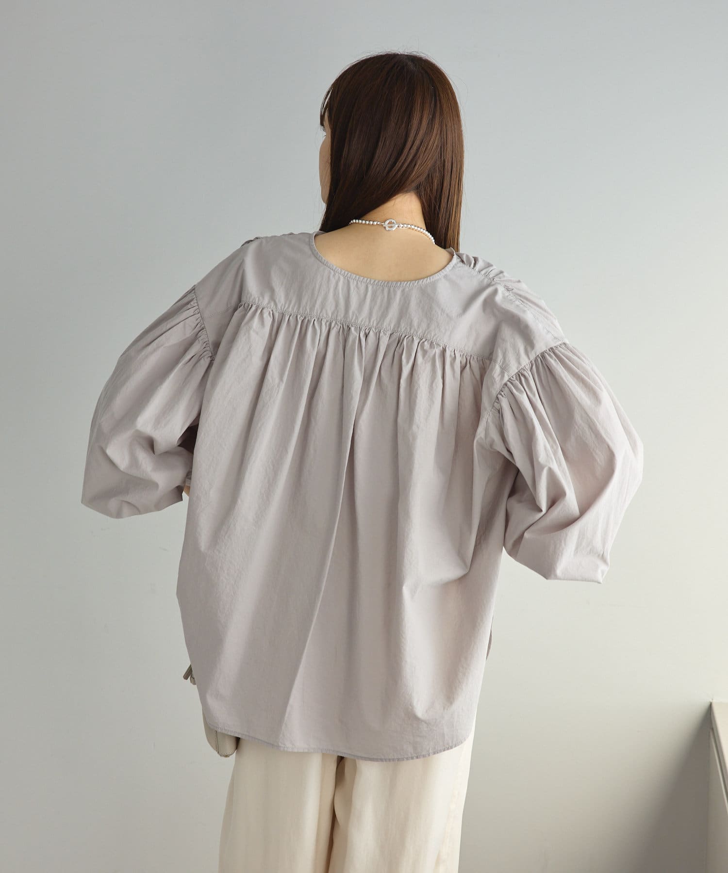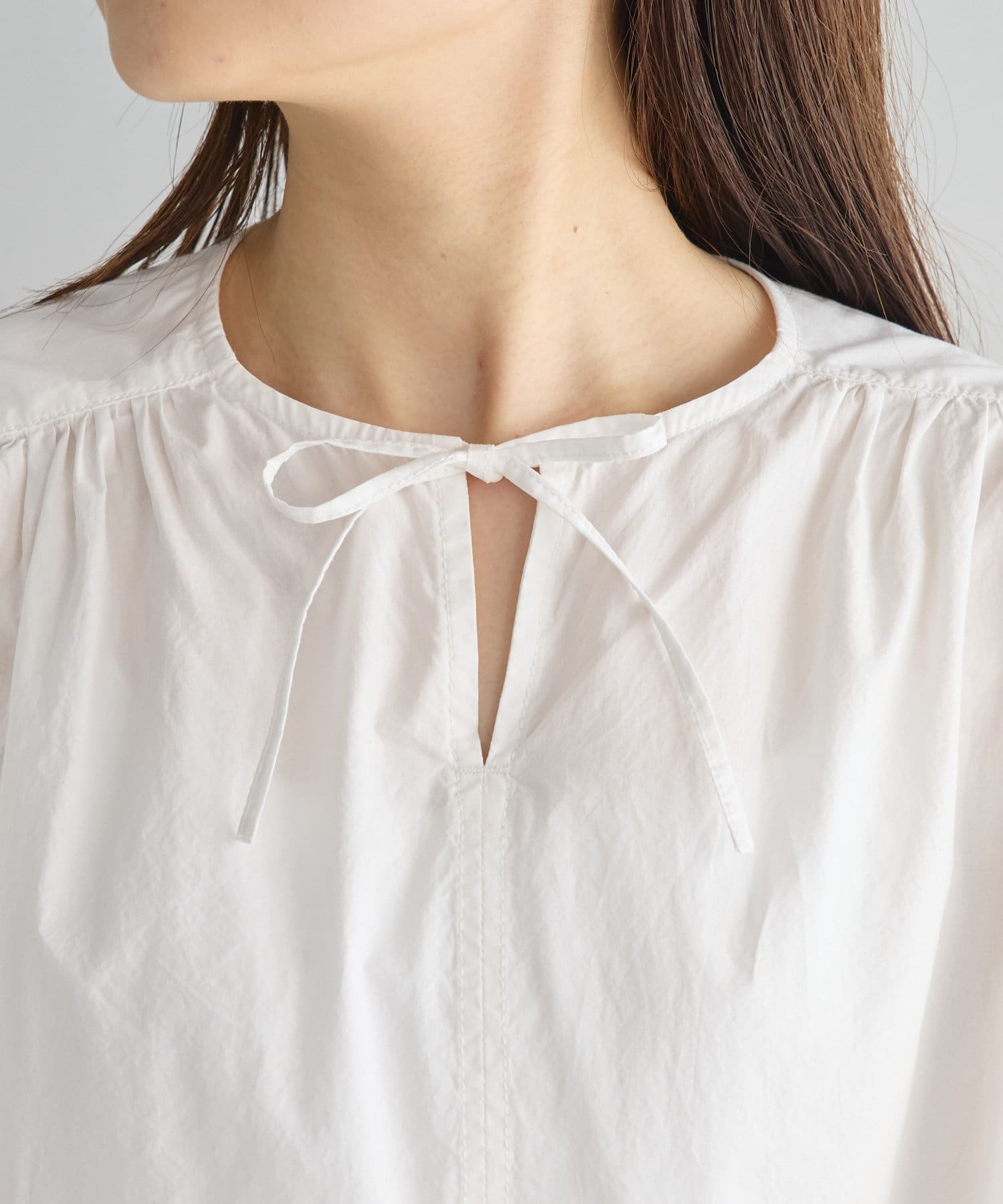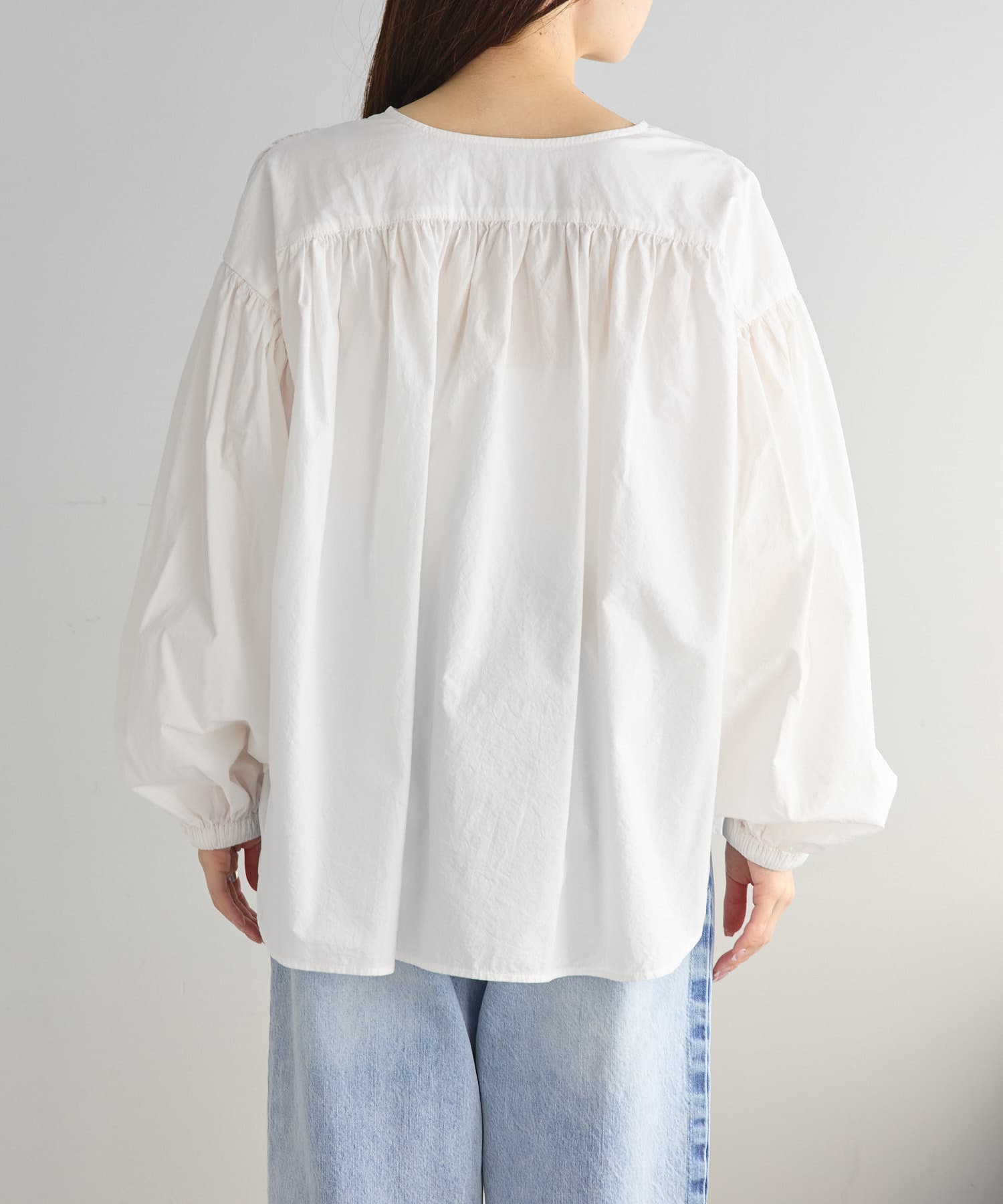 袖口はゴムの仕様。手首が見えるように少しまくると、ふんわりと女性らしいシルエットになり、より着映えします。