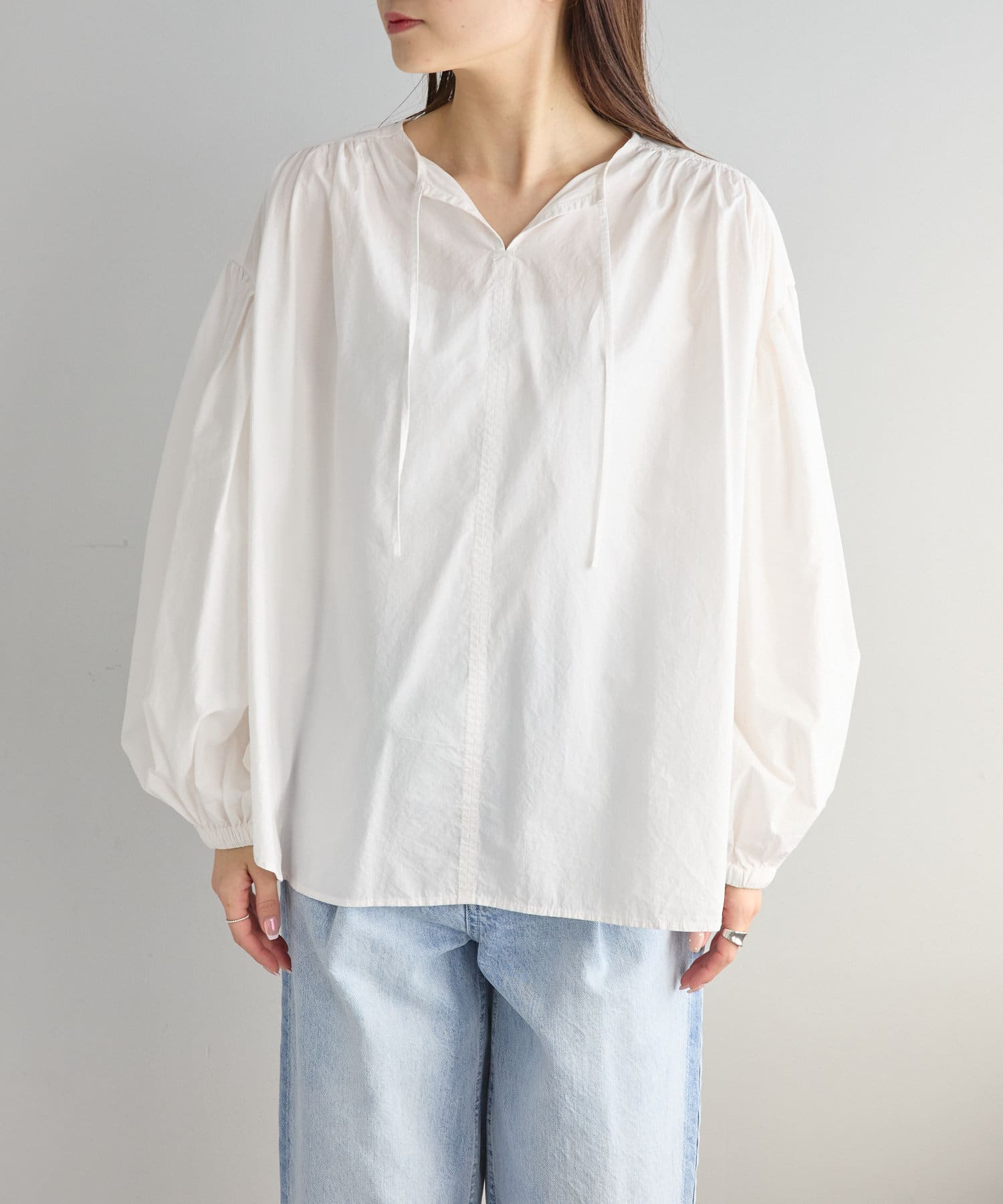 カジュアルからキレイめまで、幅広いテイストを楽しめるブラウスです。
