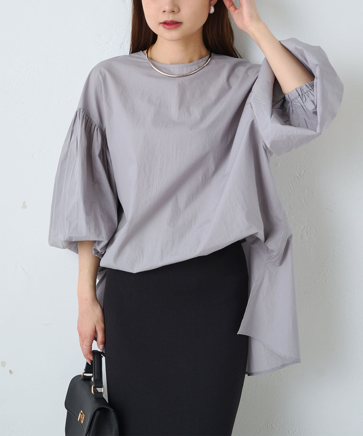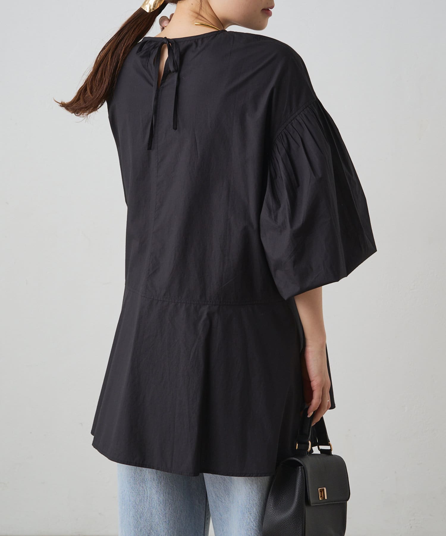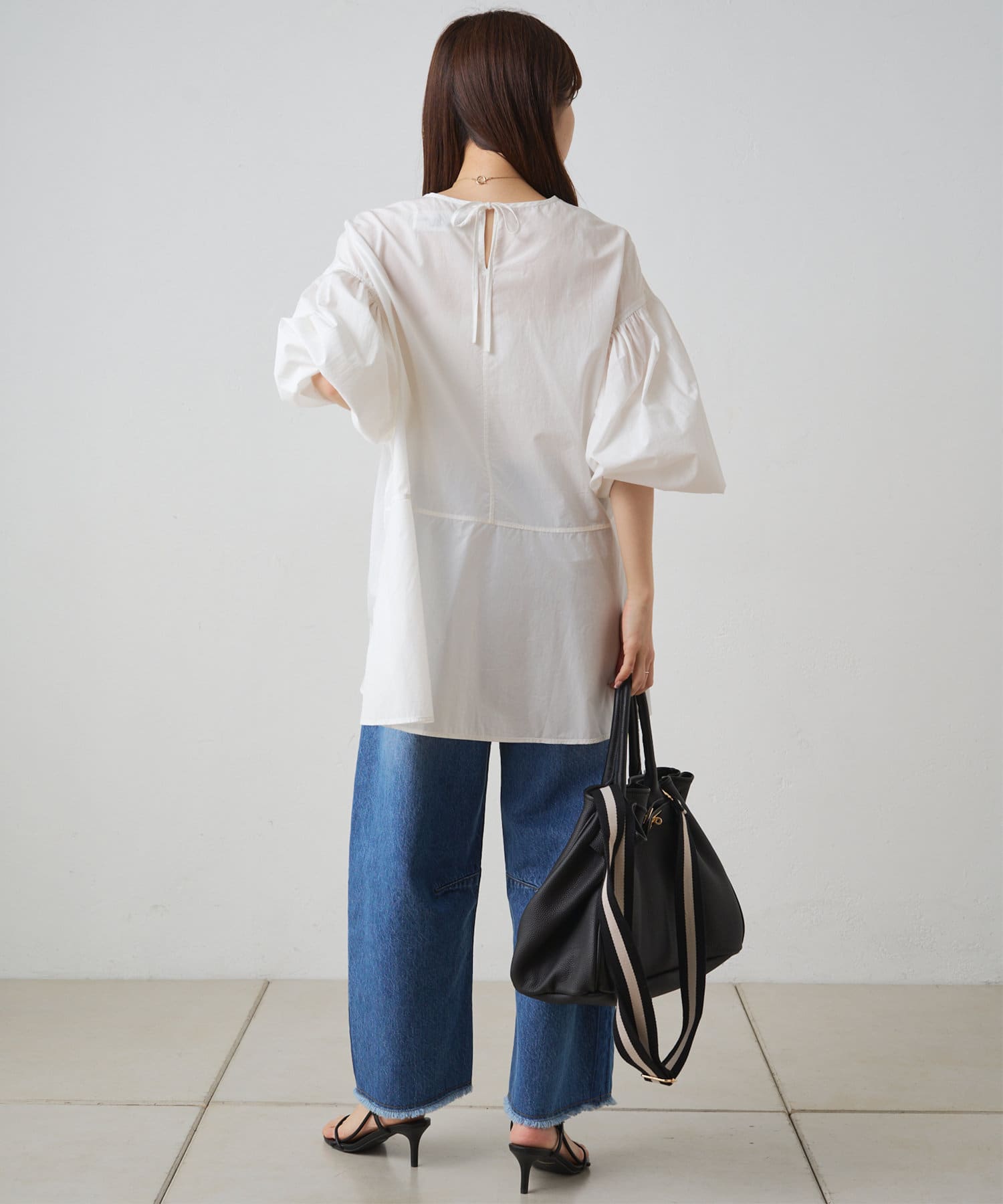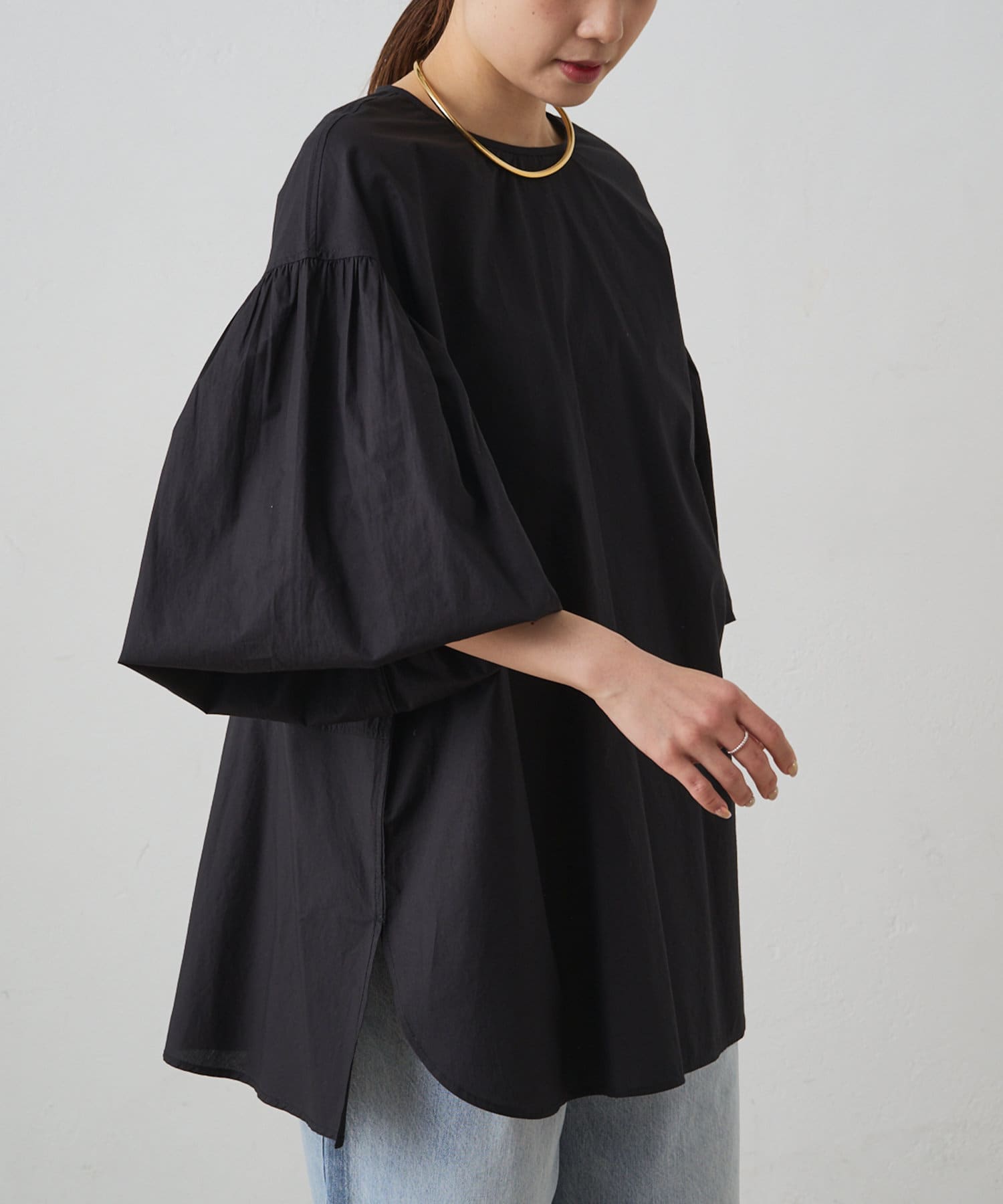 ボリュームスリーブが目を惹くチュニックブラウス。