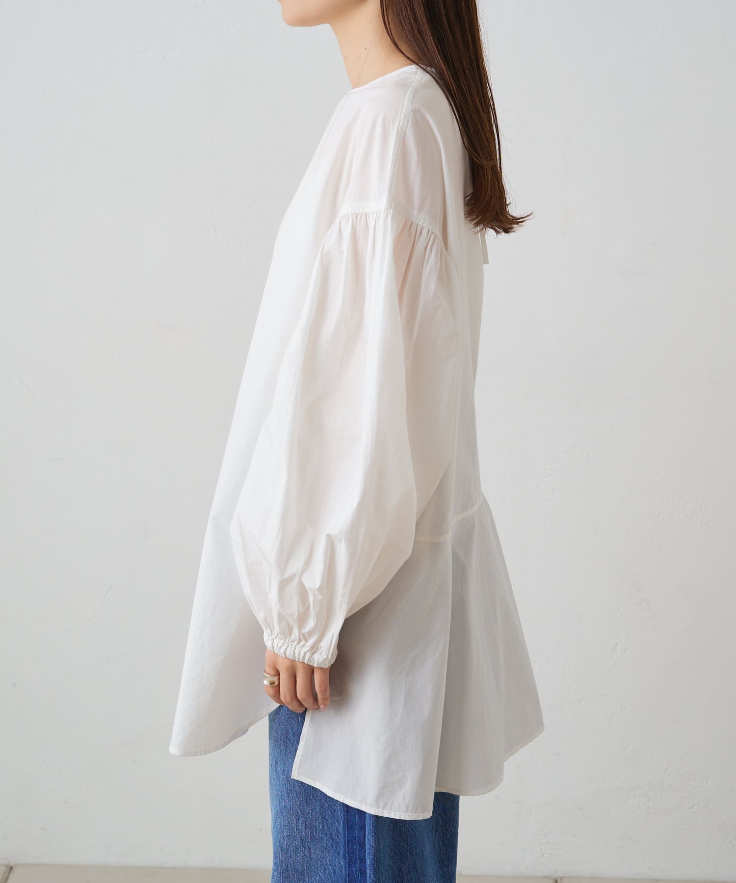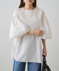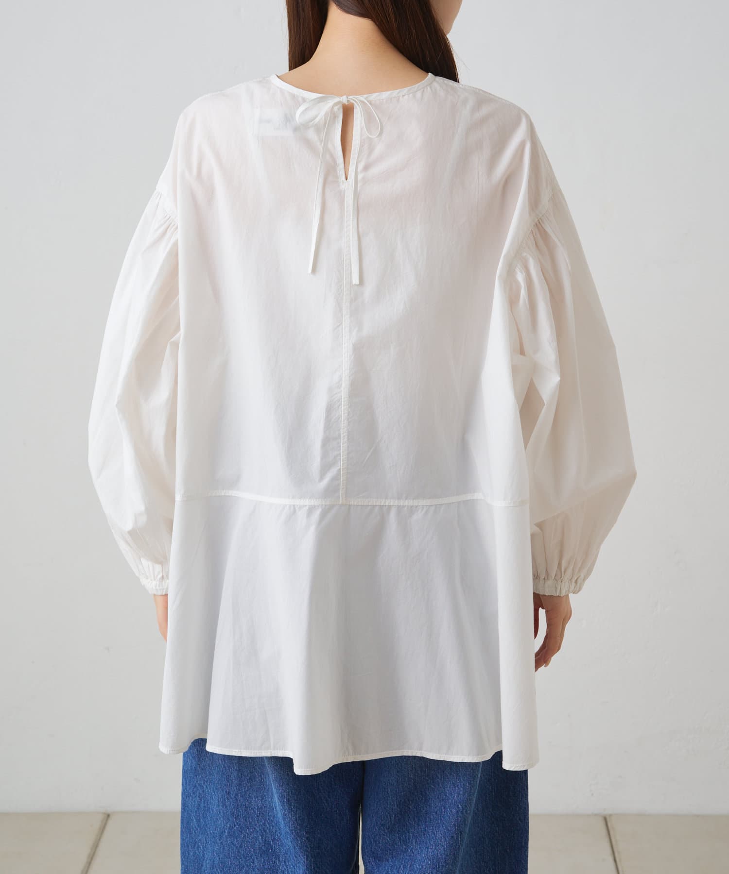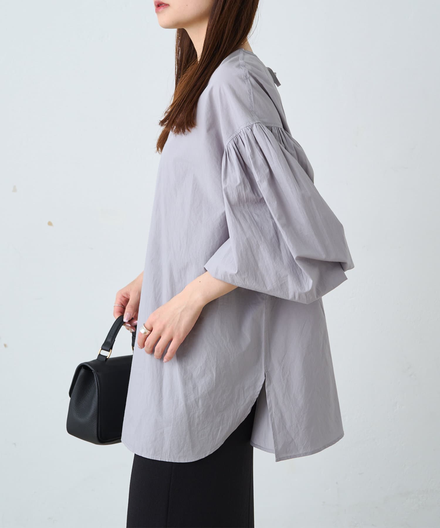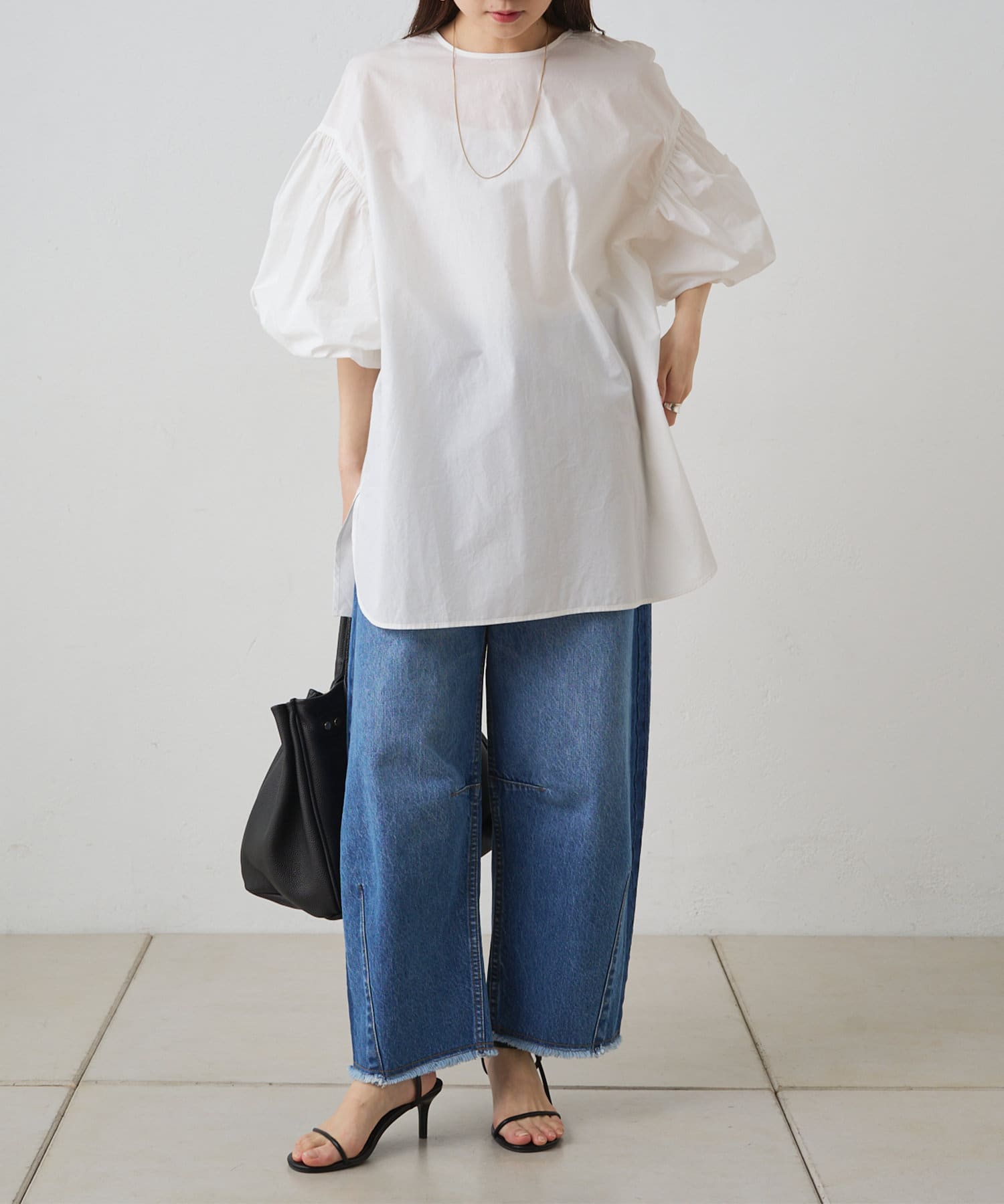 ボリュームスリーブが目を惹くチュニックブラウス。