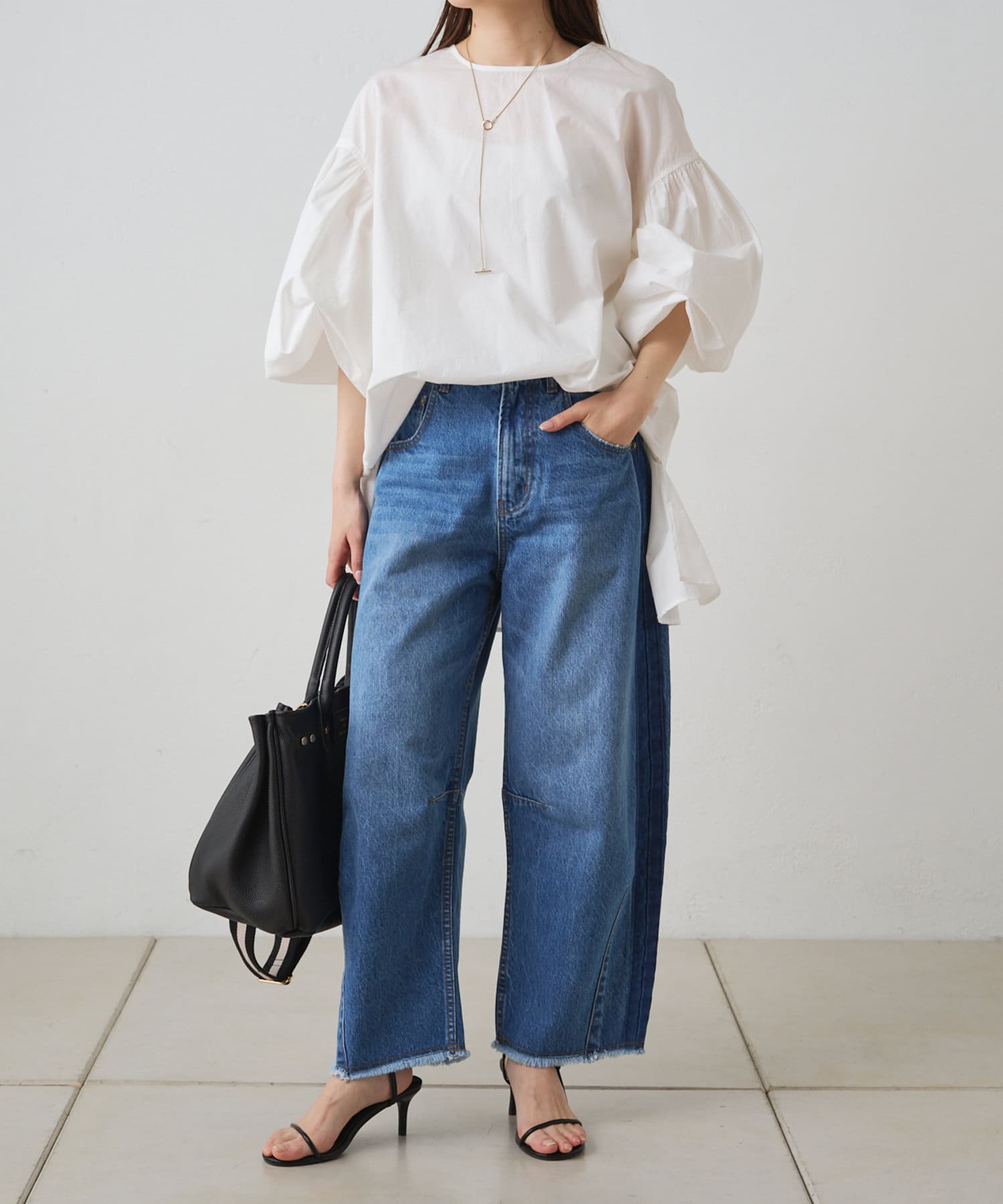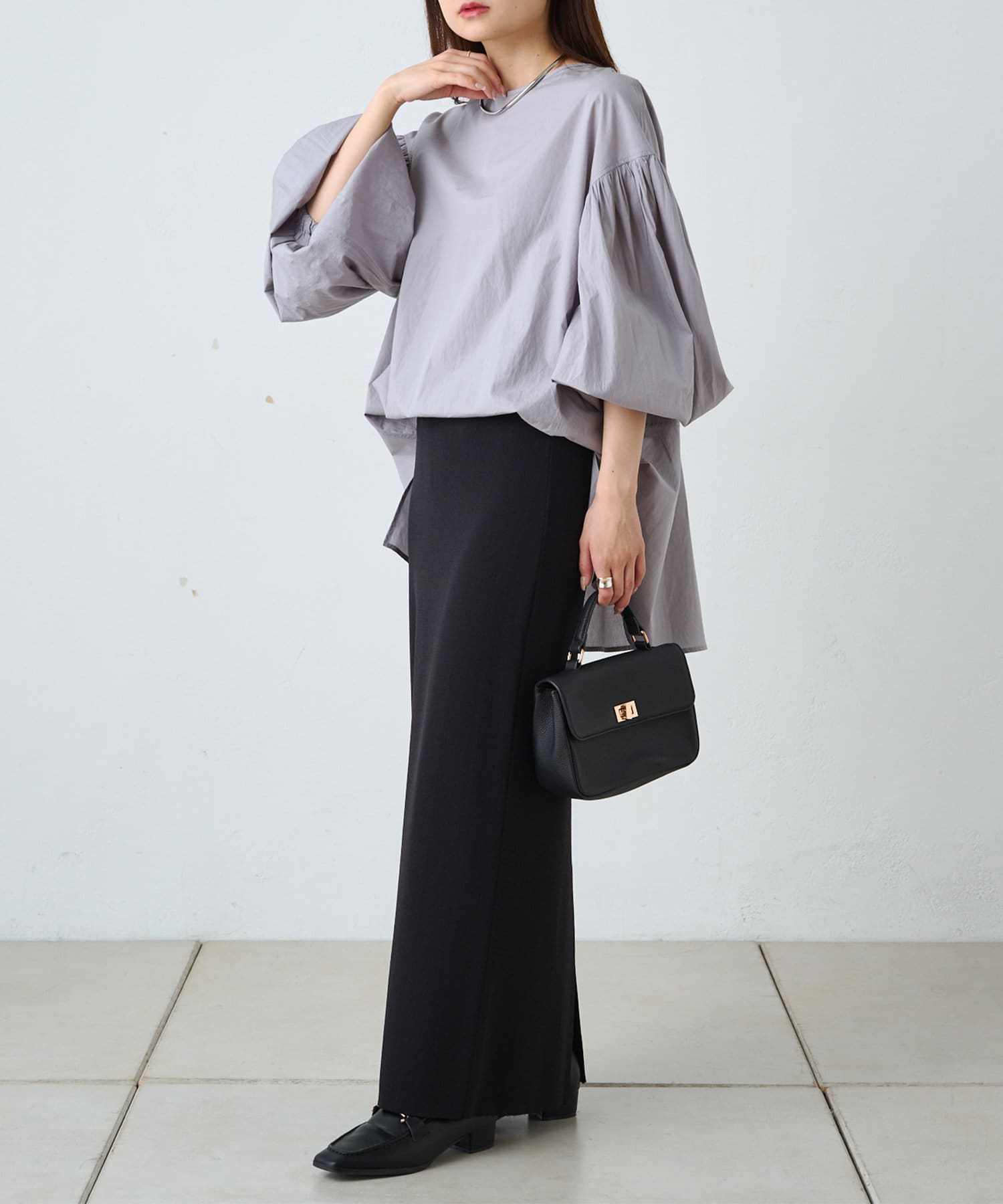 ギャザーをたっぷり施すことで、大人フェミニンなボリュームシルエットを作り出します。
