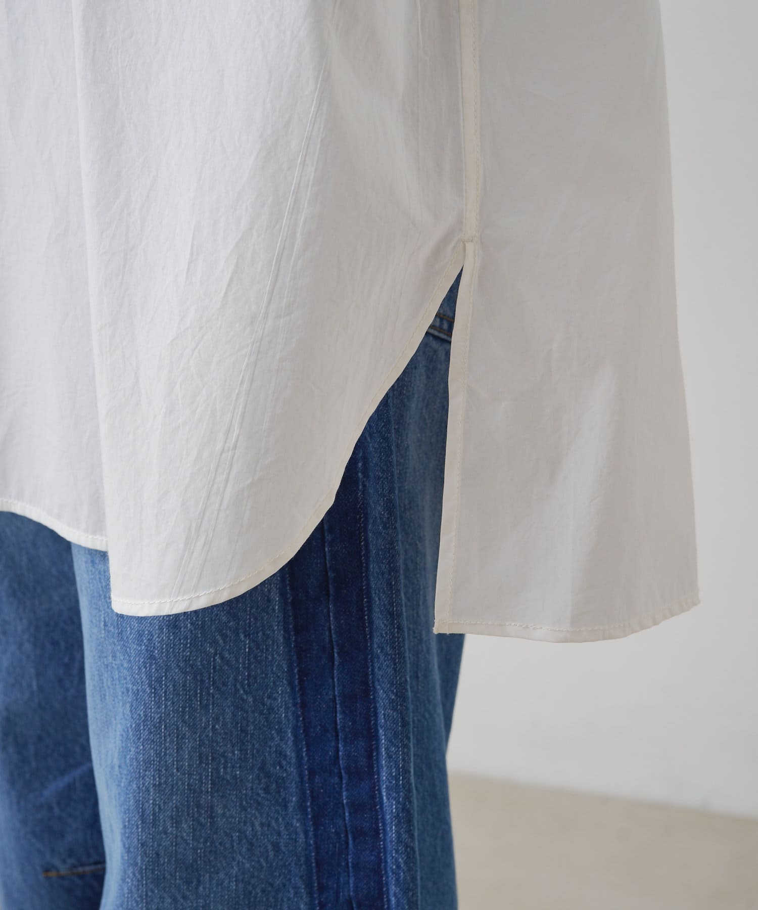 ヒップまですっぽりカバーするチュニック丈ですが、両サイドにスリットが入っていることで前だけインした着こなしも可能です。