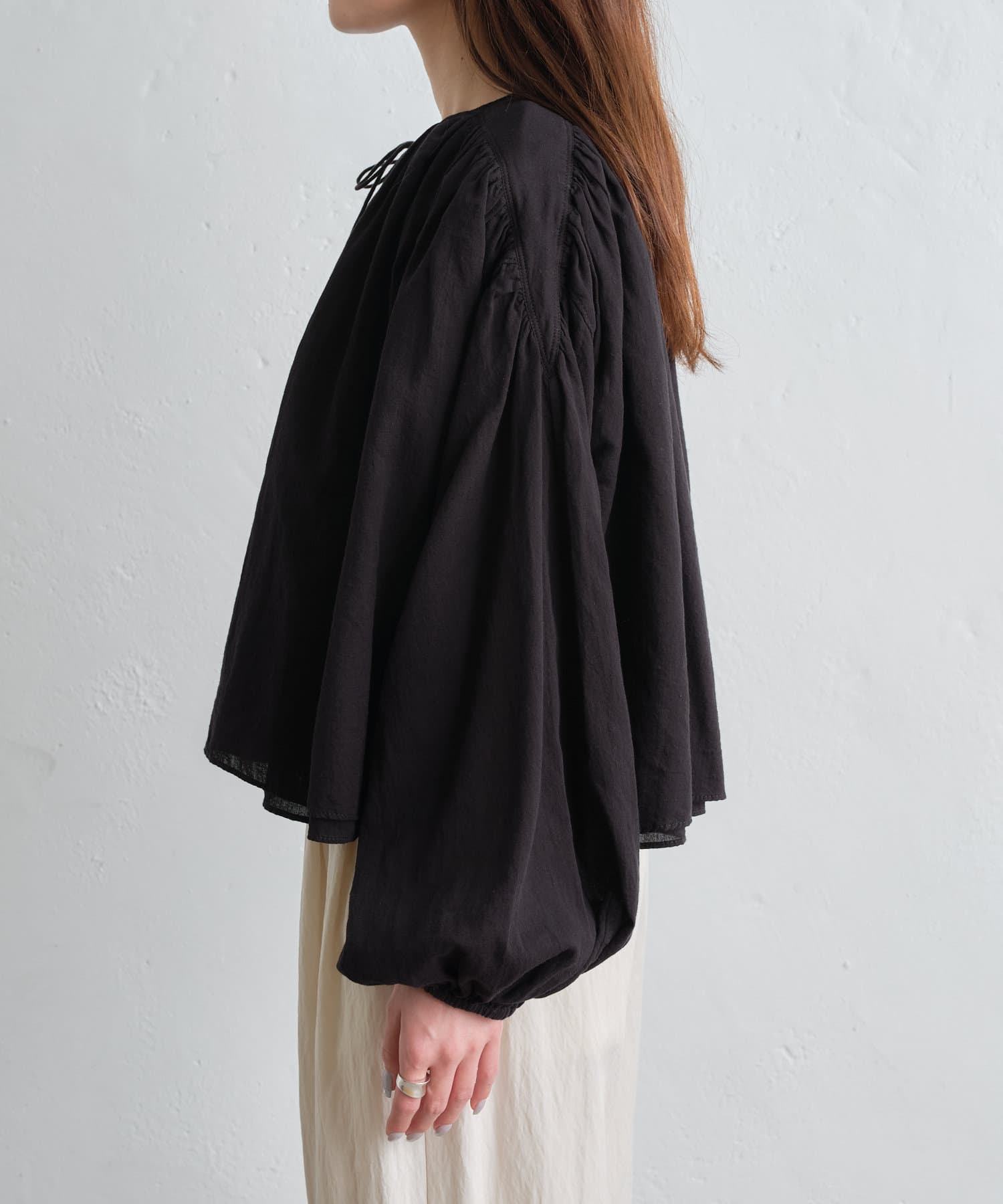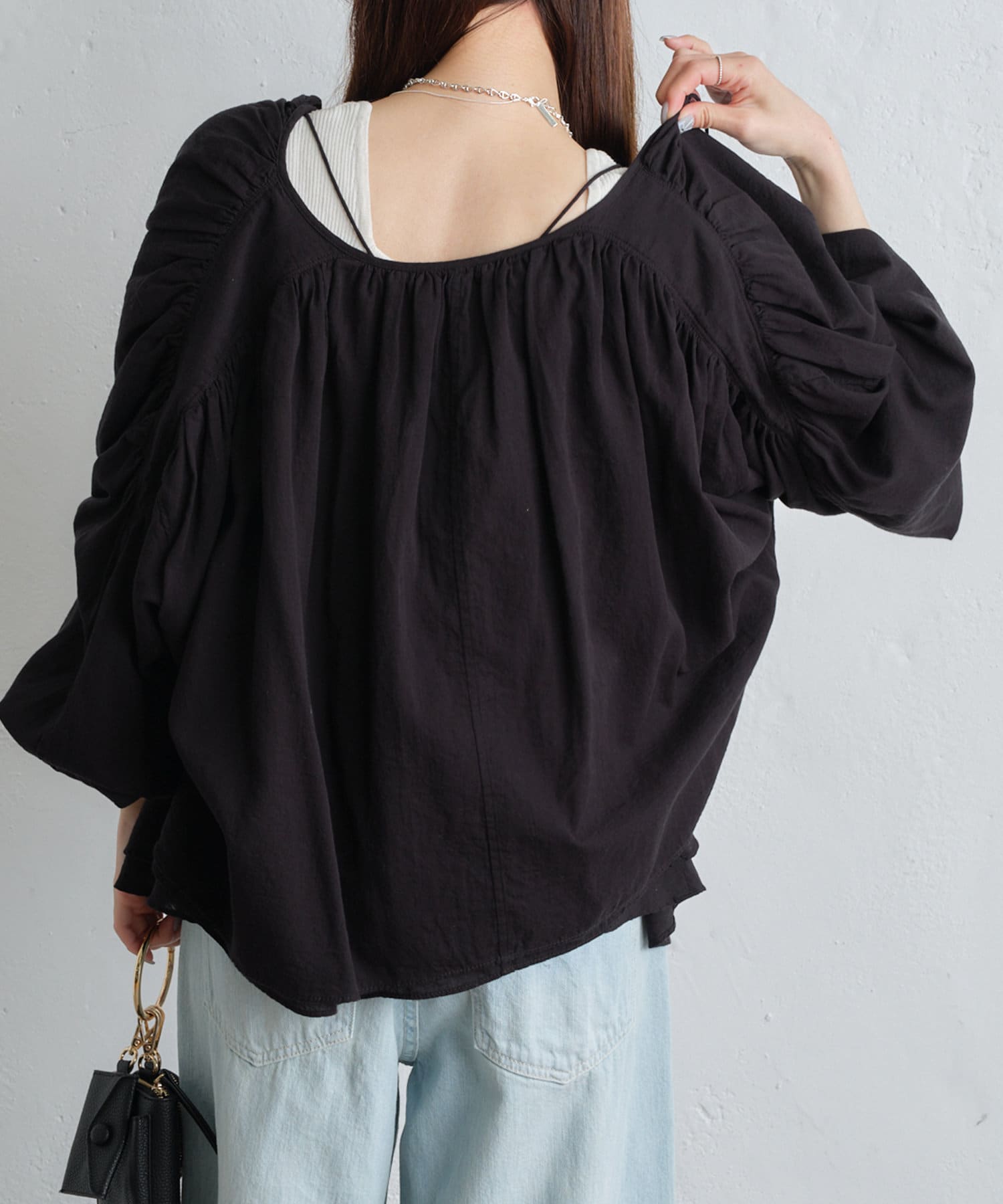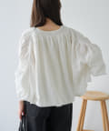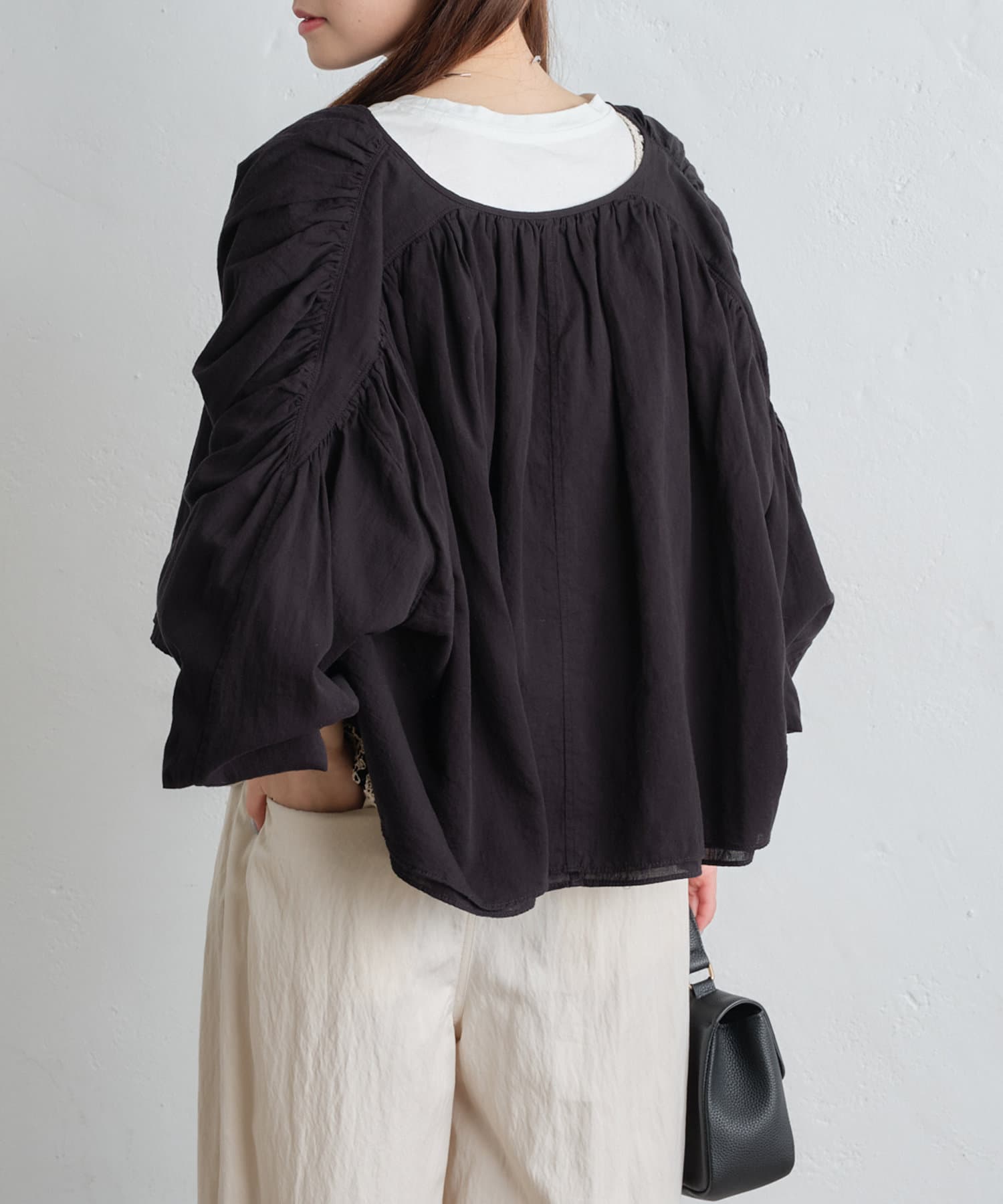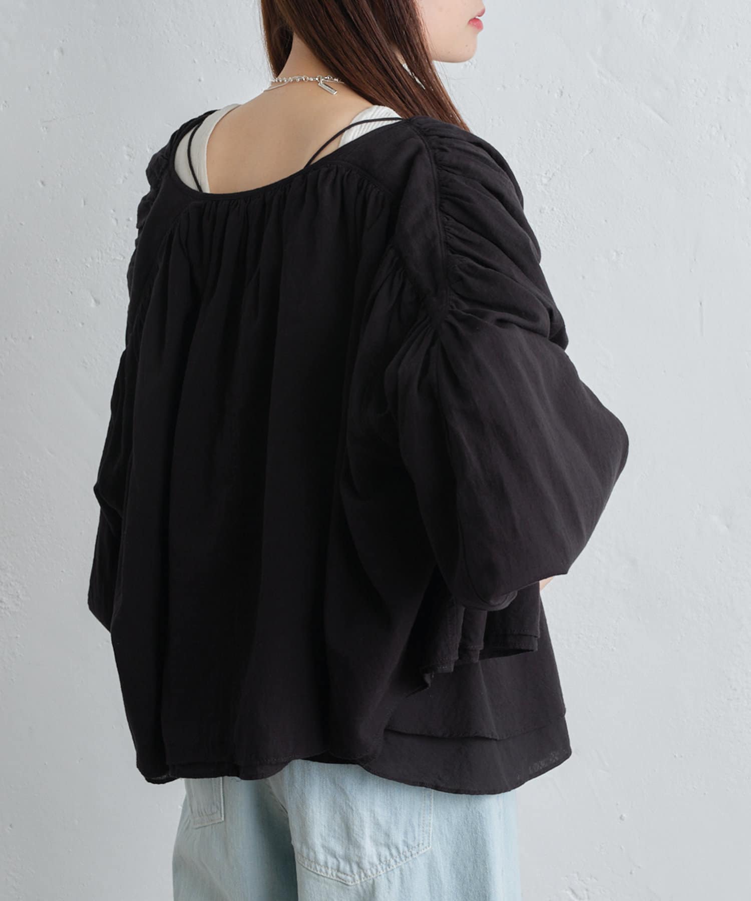 たっぷりのギャザーと二枚仕立てのふんわり感が軽やかなブラウス。