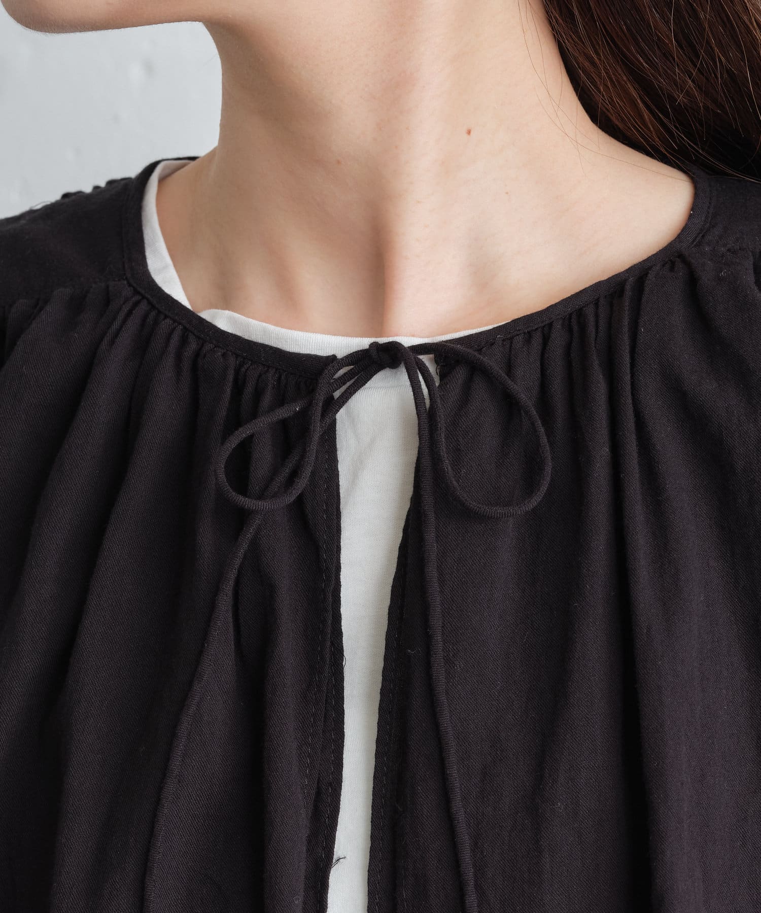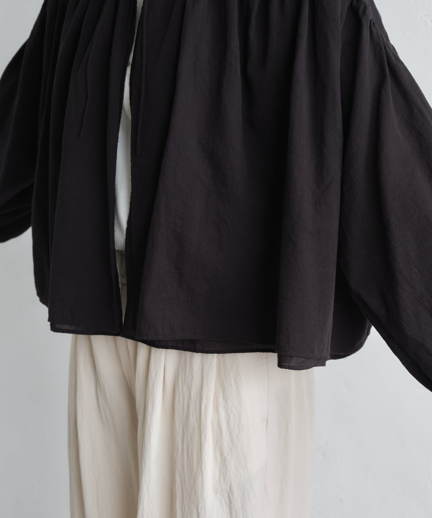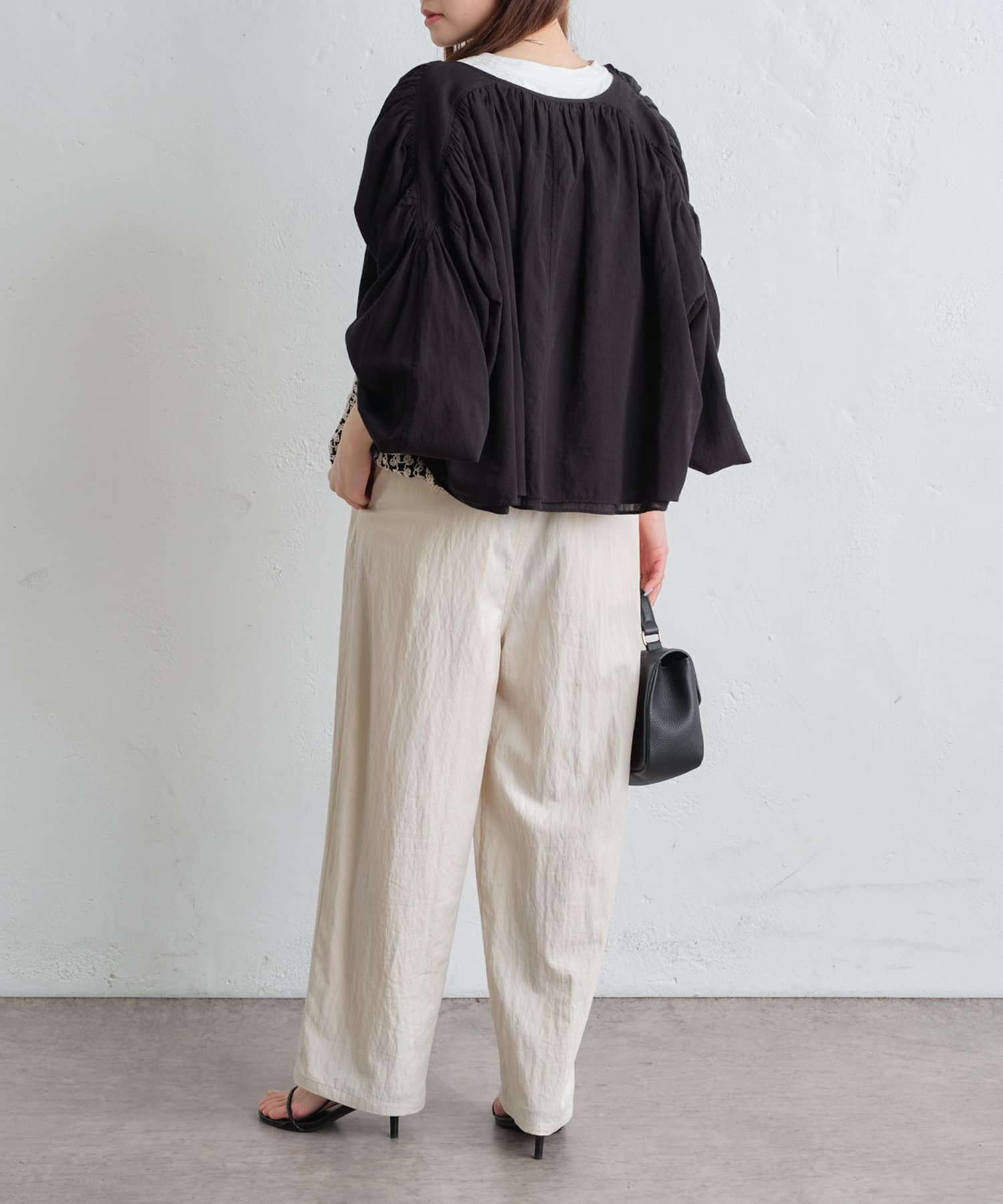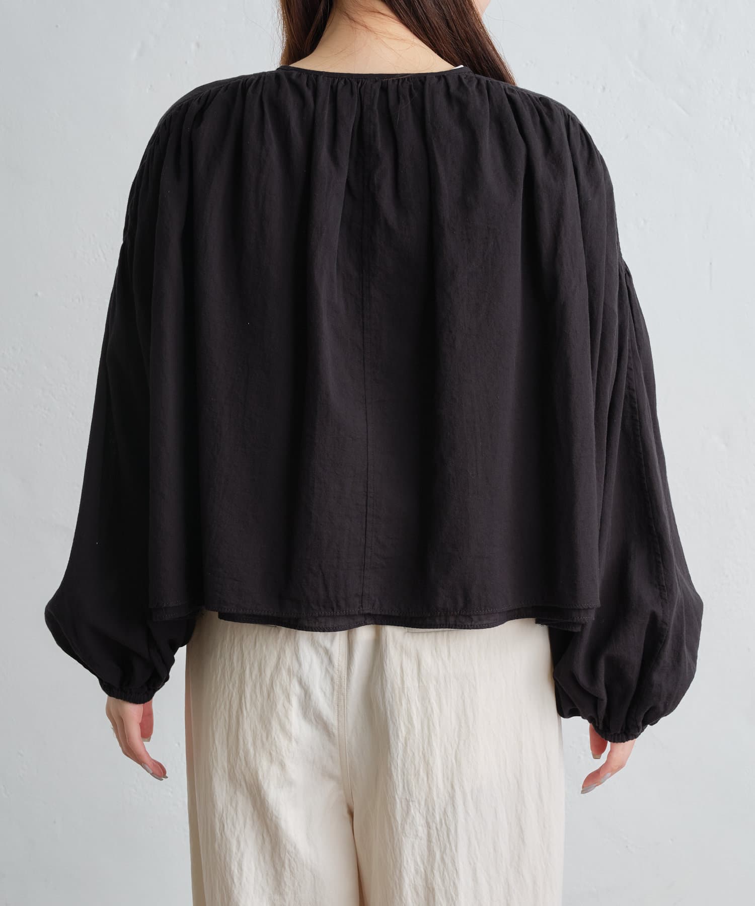 たっぷりのギャザーと二枚仕立てのふんわり感が軽やかなブラウス。