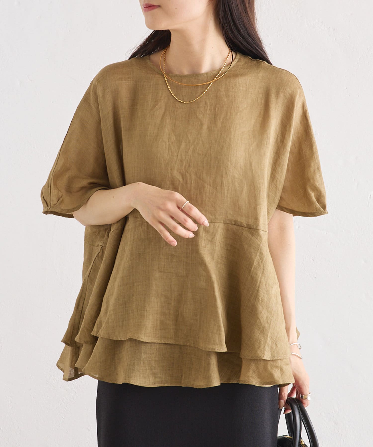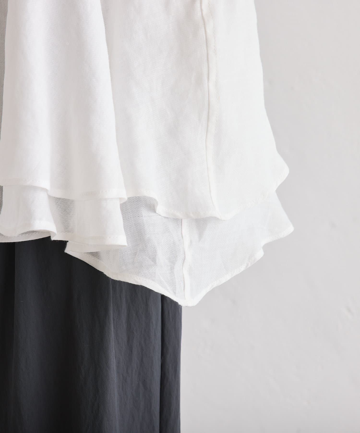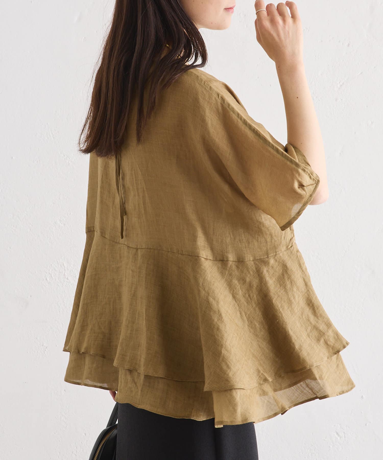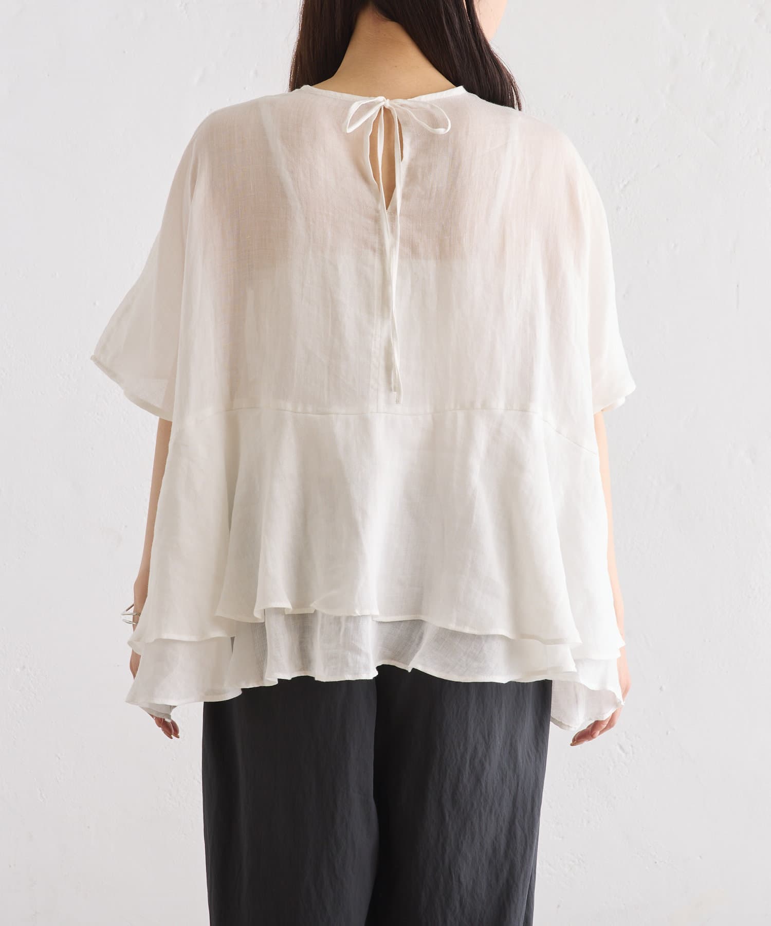 軽やかなリネンの素材に、切り替えから2段のフリルを付けることで