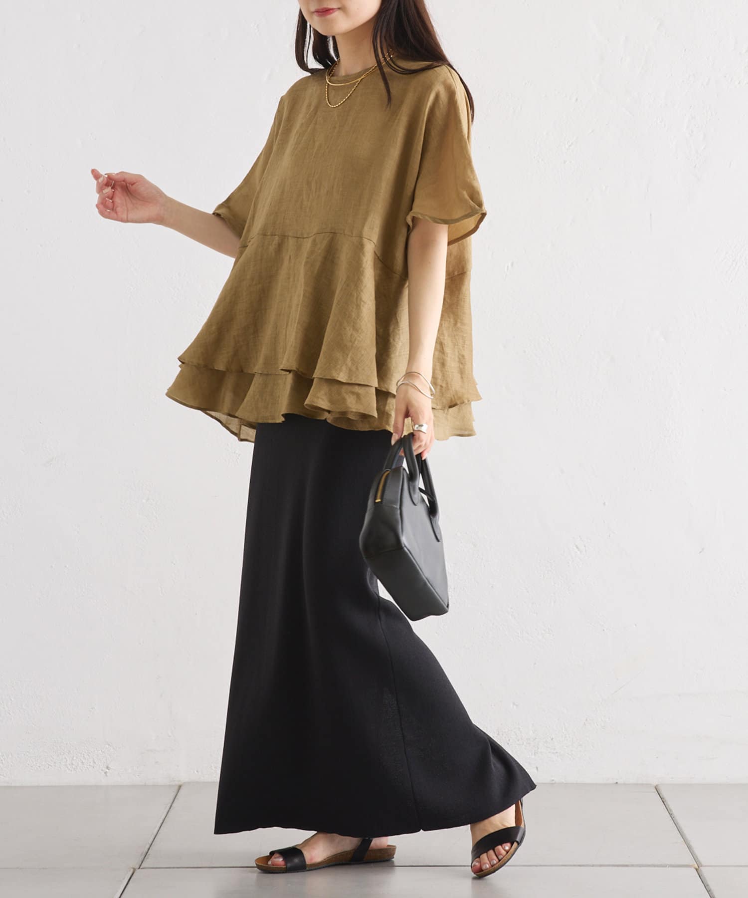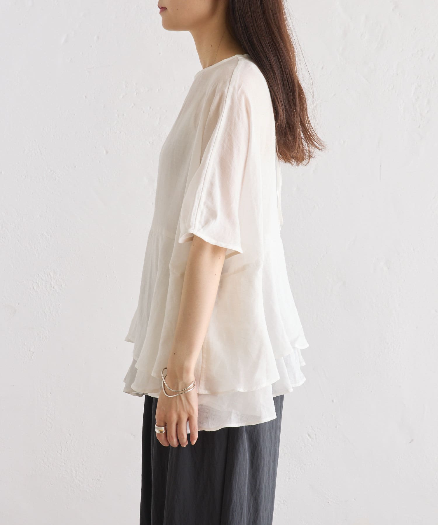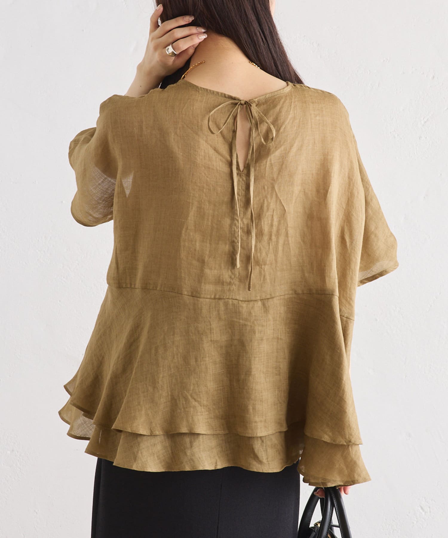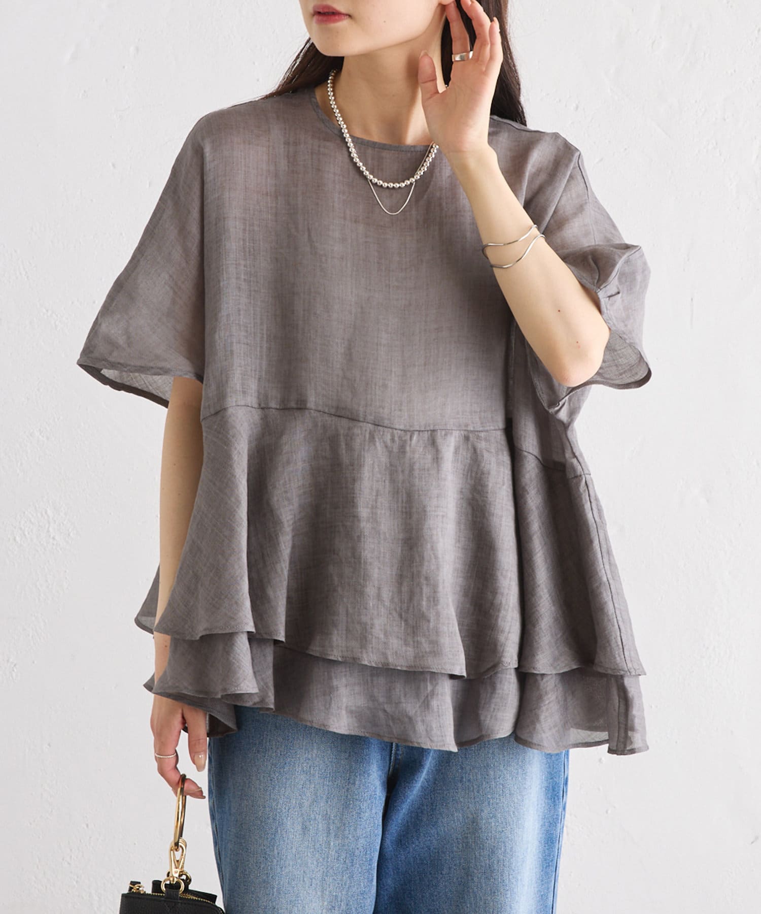 軽やかなリネンの素材に、切り替えから2段のフリルを付けることで